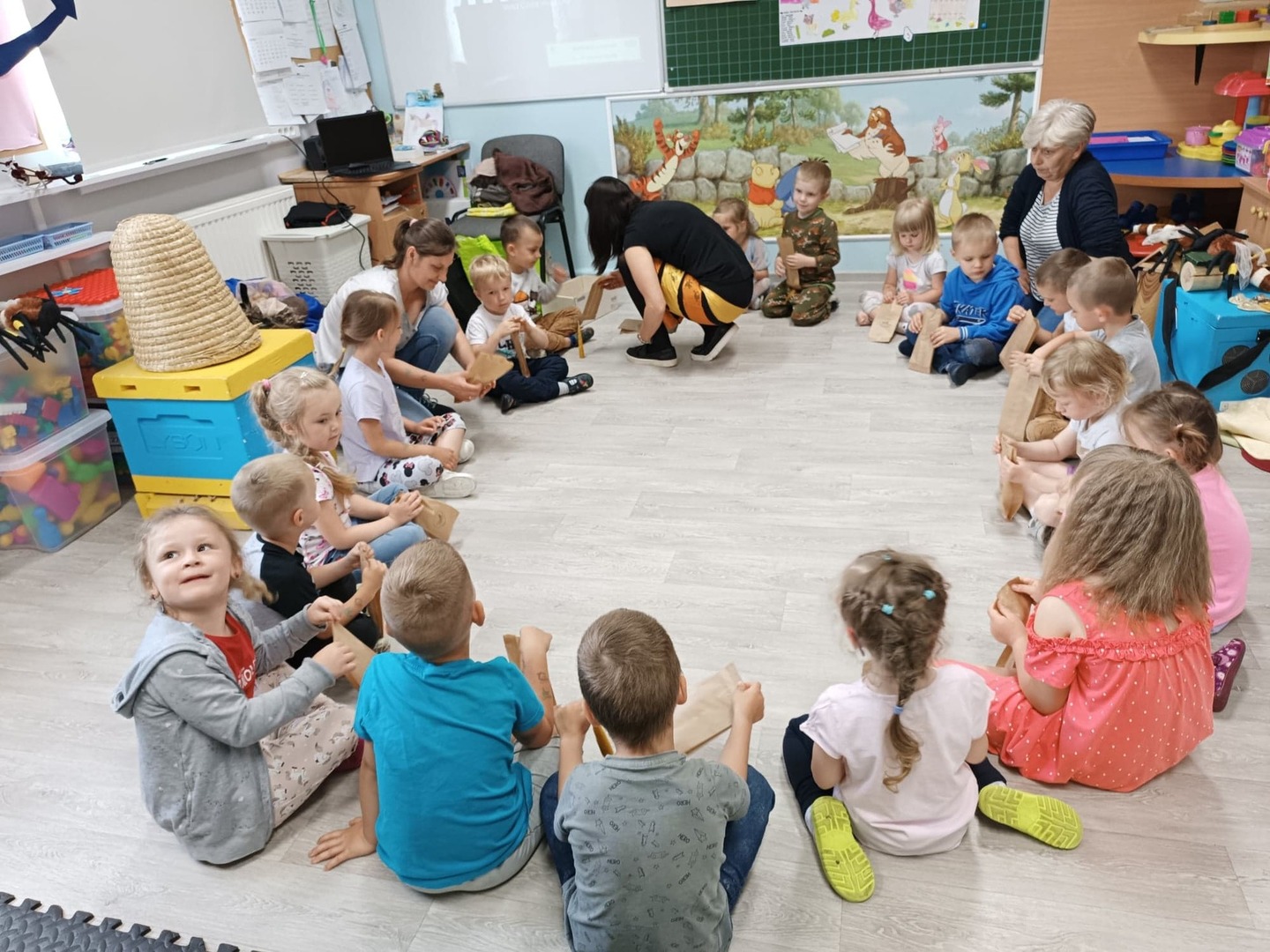 Dnia 13 czerwca w naszym przedszkolu odbyły się warsztaty o pszczołach. Nasze dzieci dowiedziały się jak wyglądają pszczoły i jak przebiegała ewolucja tych owadów. Poznały historię pszczelarstwa i różne typy uli, dowiedziały się jak wygląda pszczelarstwo. Celem warsztatów było uświadomienie dzieciom jak pożytecznym owadem jest pszczoła i czy należy się jej bać. Każdy z przedszkolaków miał możliwość zajrzenia do wnętrza ula i zapoznania się z narzędziami związanymi z hodowlą pszczół. Dzieci dowiedziały się jakie środowisko jest pszczołom przyjazne, a co stanowi dla nich zagrożenie. Poznały rośliny miododajne oraz zdobyły wiedzę i umiejętności na temat czasu i sposobu ich sadzenia. Na koniec każdy z przedszkolaków zrobił świeczkę z płatu wosku pszczelego.