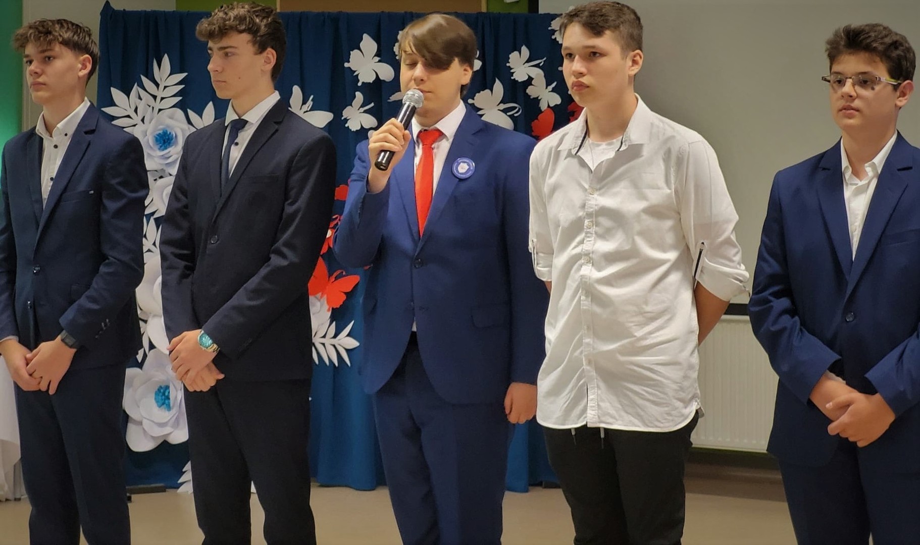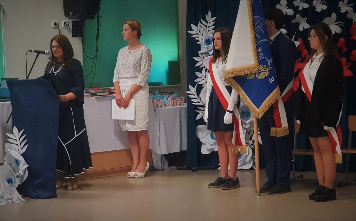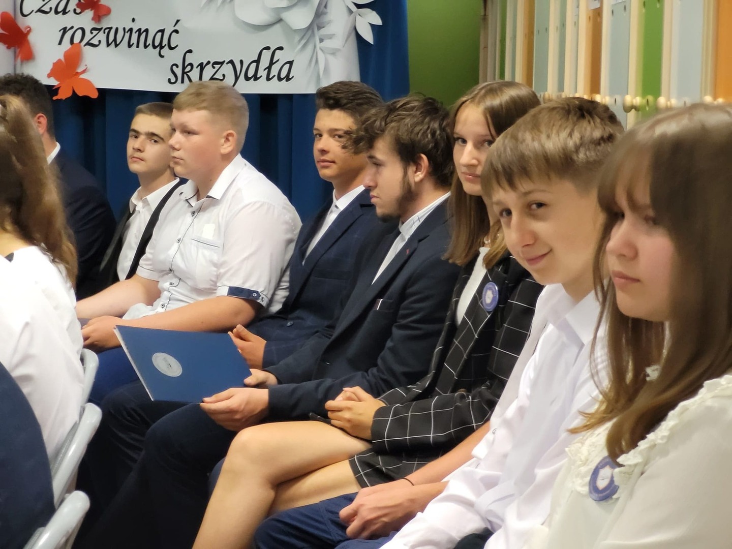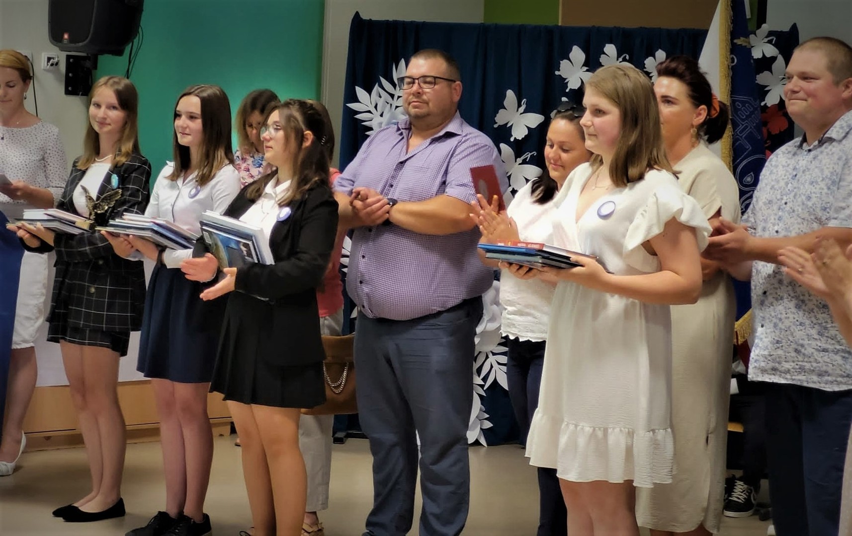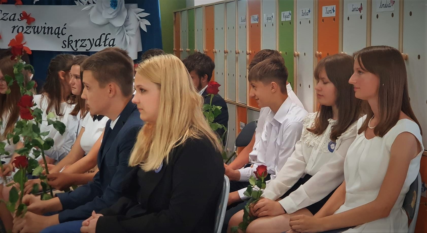 To było bardzo wzruszające pożegnanie ósmej klasy. Ostatni raz w uroczystych strojach, ostatni raz odśpiewany przez nich hymn w naszej szkole, ostatni raz wręczane nagrody, świadectwa, podziękowania dla najstarszych uczniów i ich rodziców. Mamy nadzieję, że z chęcią odwiedzicie nas nie raz :).