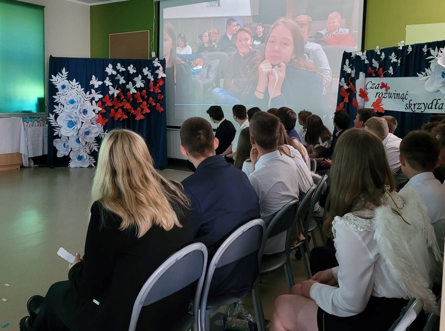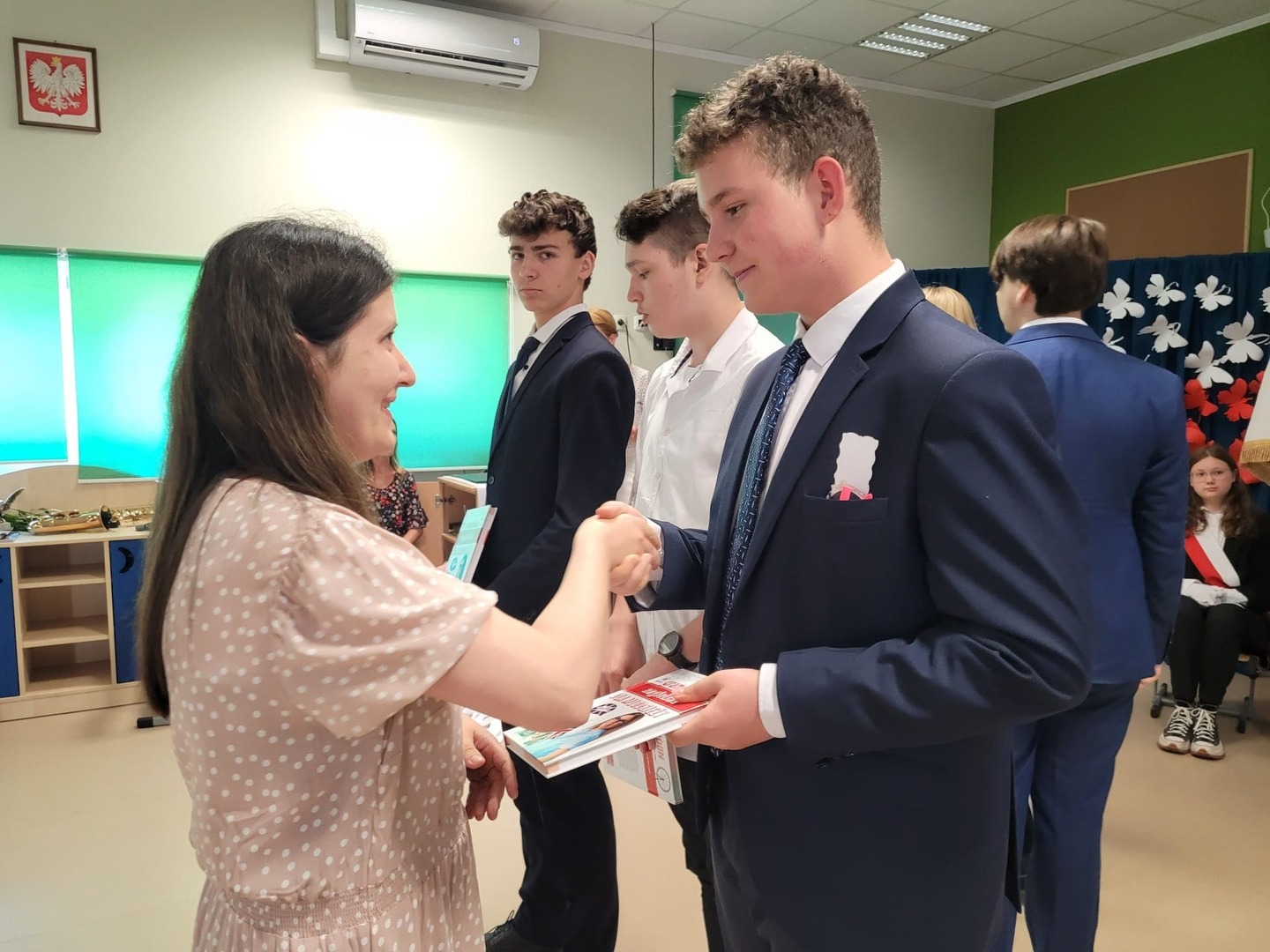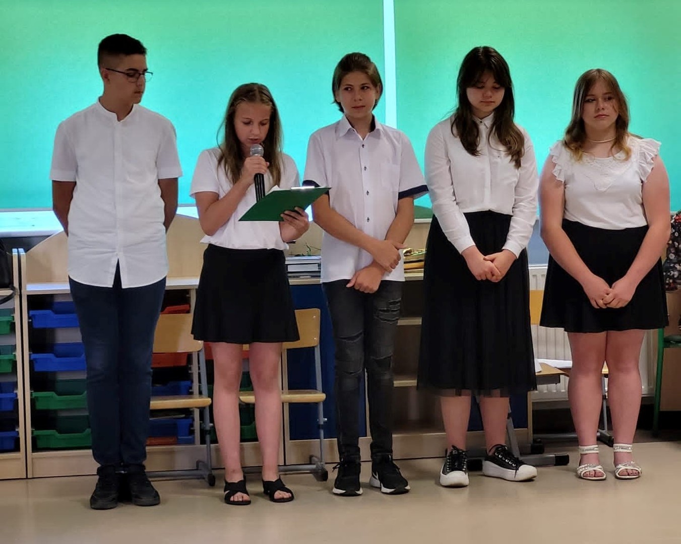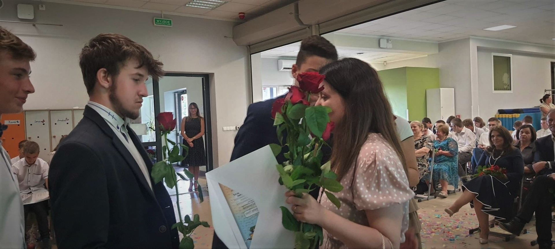 To było bardzo wzruszające pożegnanie ósmej klasy. Ostatni raz w uroczystych strojach, ostatni raz odśpiewany przez nich hymn w naszej szkole, ostatni raz wręczane nagrody, świadectwa, podziękowania dla najstarszych uczniów i ich rodziców. Mamy nadzieję, że z chęcią odwiedzicie nas nie raz :).