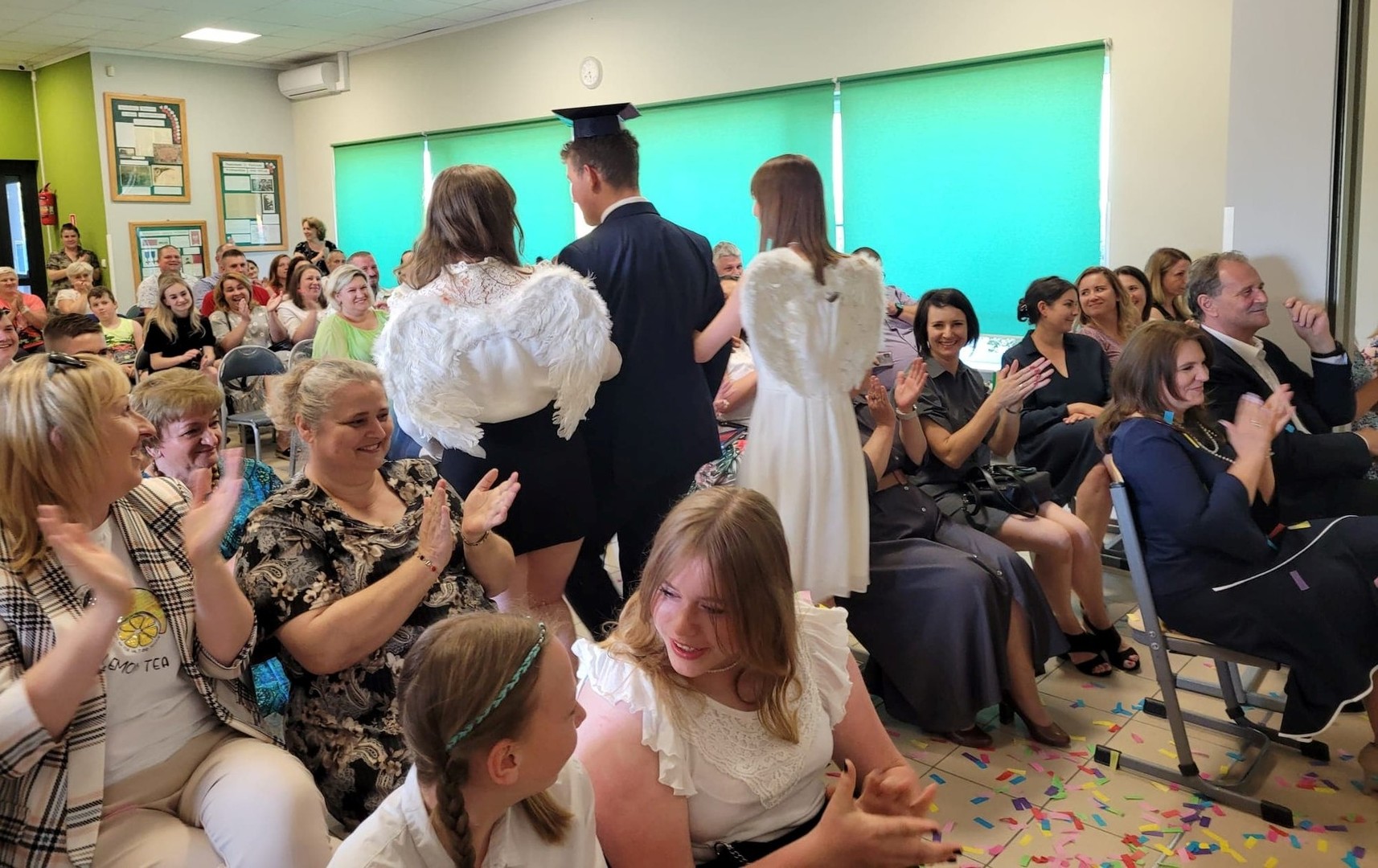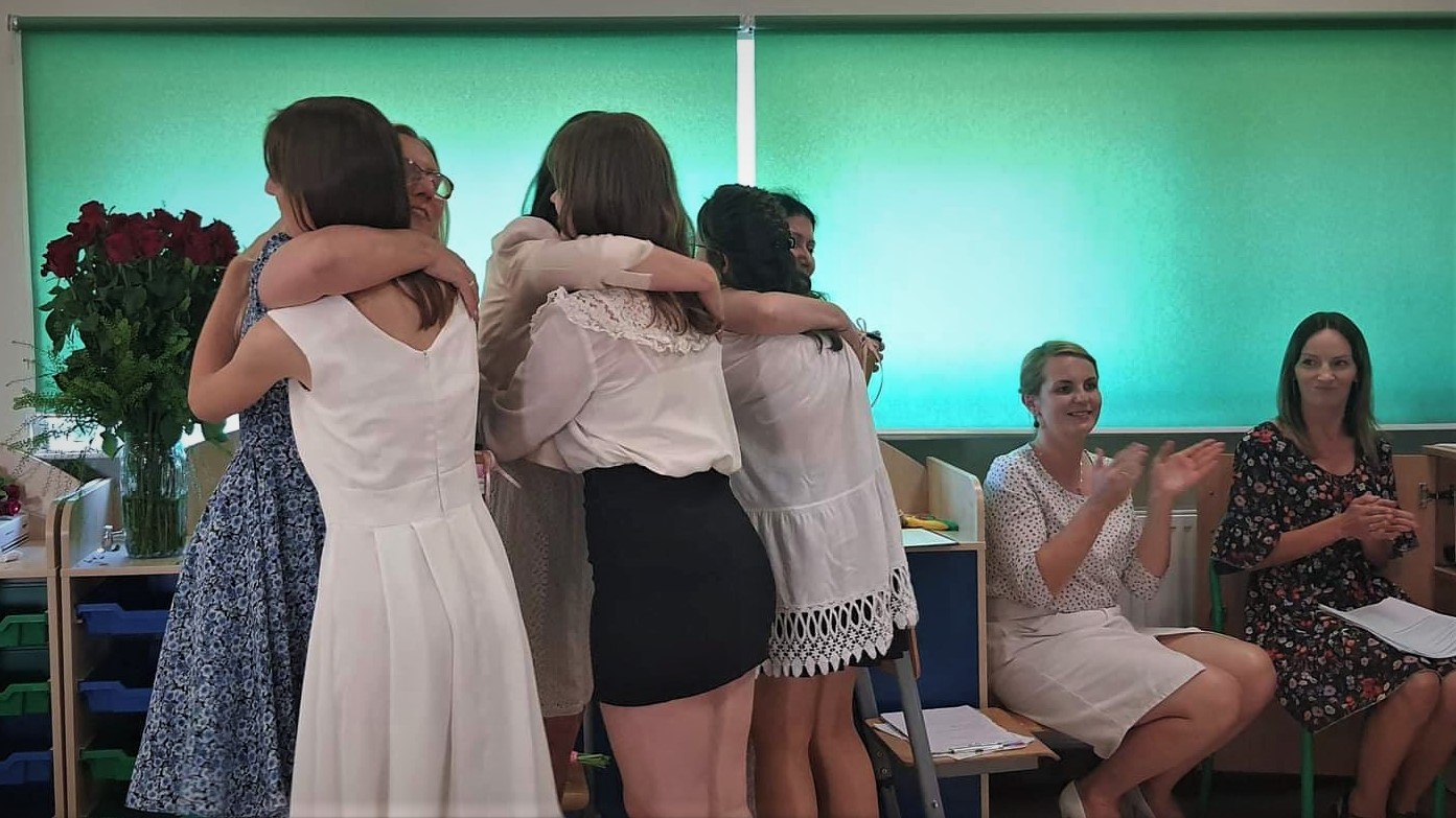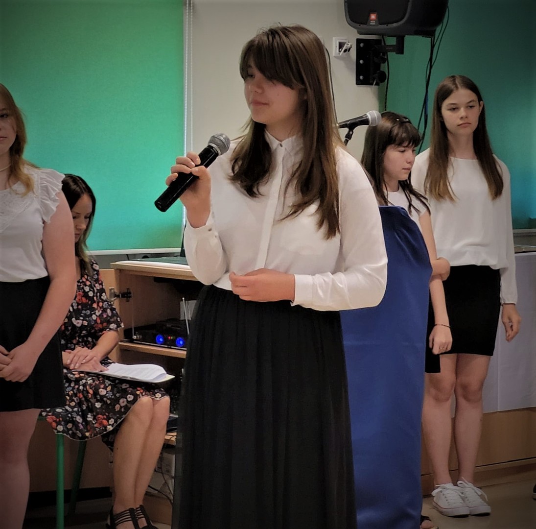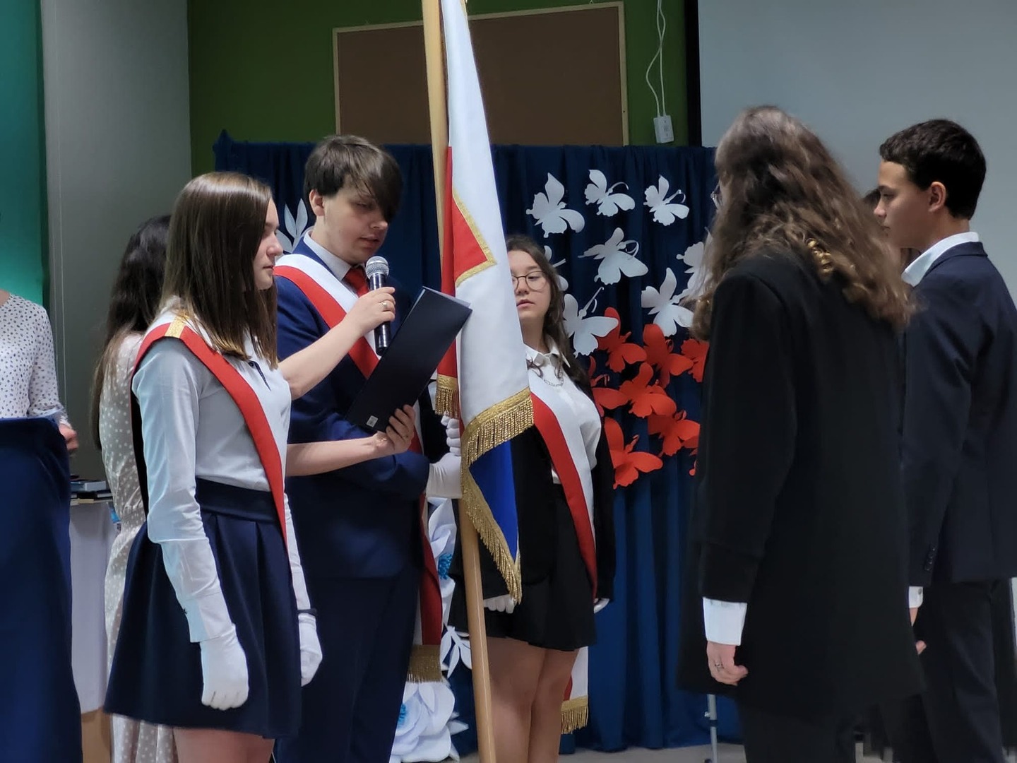 To było bardzo wzruszające pożegnanie ósmej klasy. Ostatni raz w uroczystych strojach, ostatni raz odśpiewany przez nich hymn w naszej szkole, ostatni raz wręczane nagrody, świadectwa, podziękowania dla najstarszych uczniów i ich rodziców. Mamy nadzieję, że z chęcią odwiedzicie nas nie raz :).