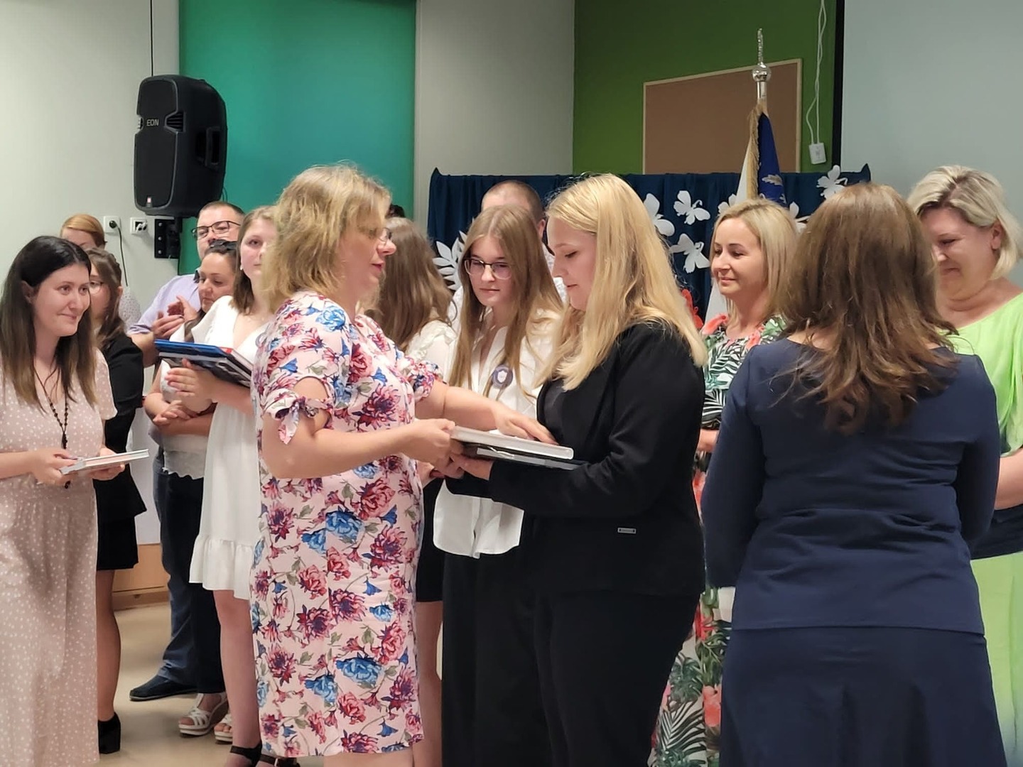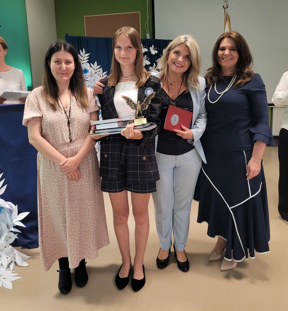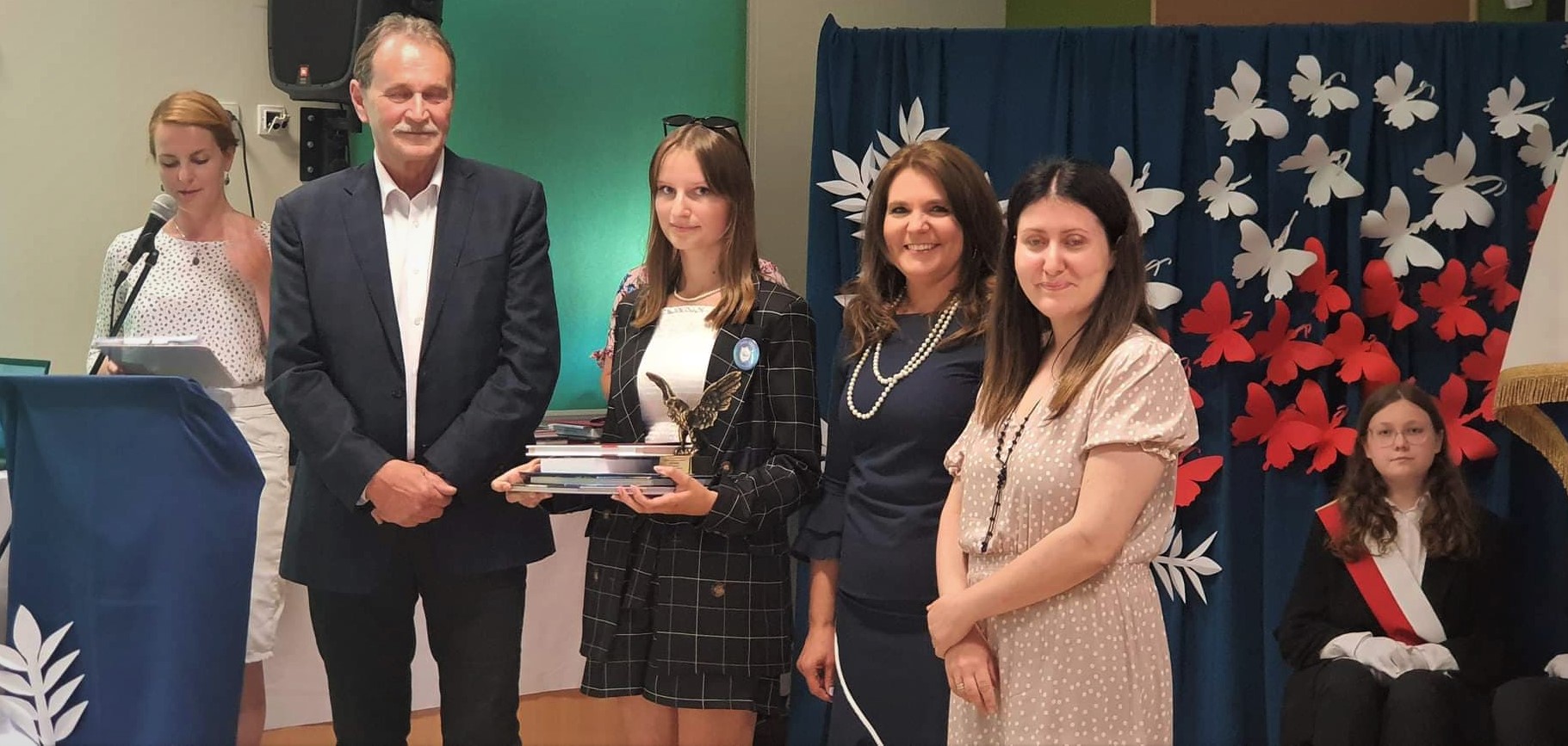 Miło nam również pochwalić się najlepszą uczennicą, która opuszcza naszą szkołę - Julia Salitra - uczennica przesympatyczna, pomocna i pracowita - która w tym roku otrzymała statuetkę najlepszego absolwenta szkoły.