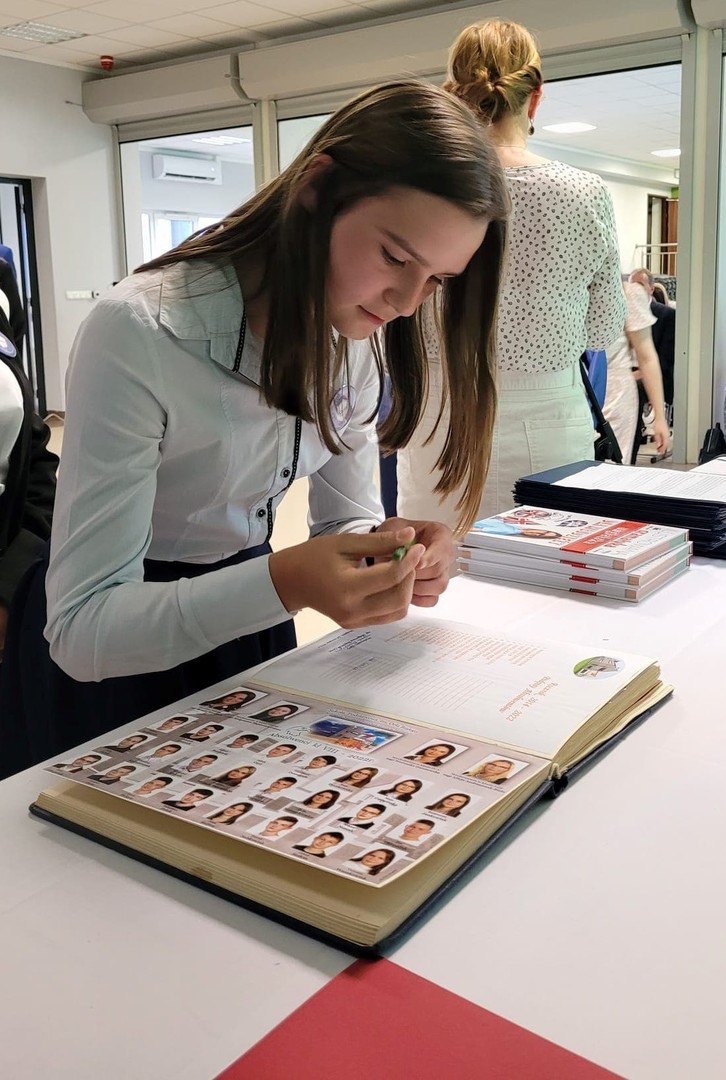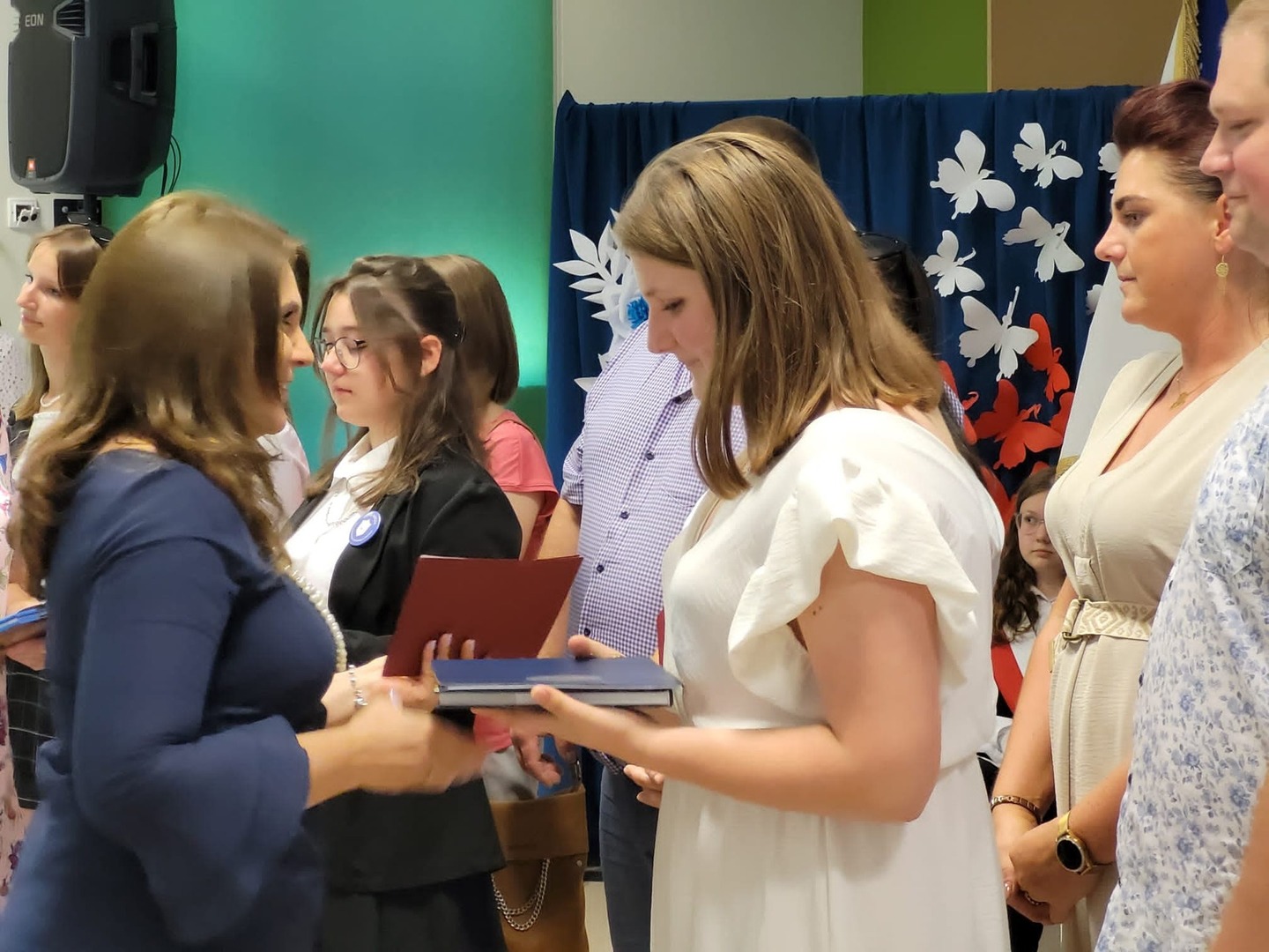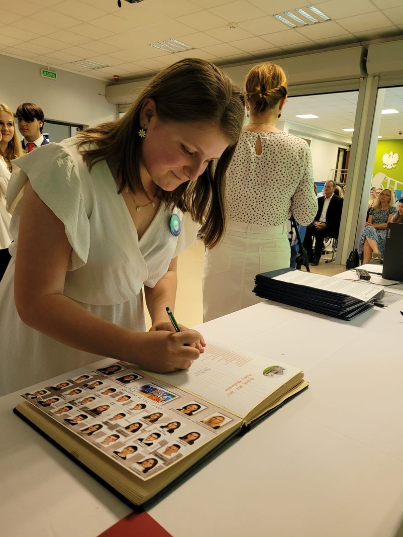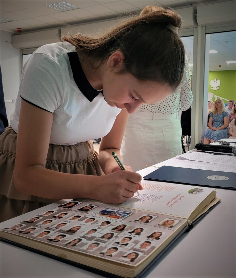 Miło nam również pochwalić się najlepszą uczennicą, która opuszcza naszą szkołę - Julia Salitra - uczennica przesympatyczna, pomocna i pracowita - która w tym roku otrzymała statuetkę najlepszego absolwenta szkoły.