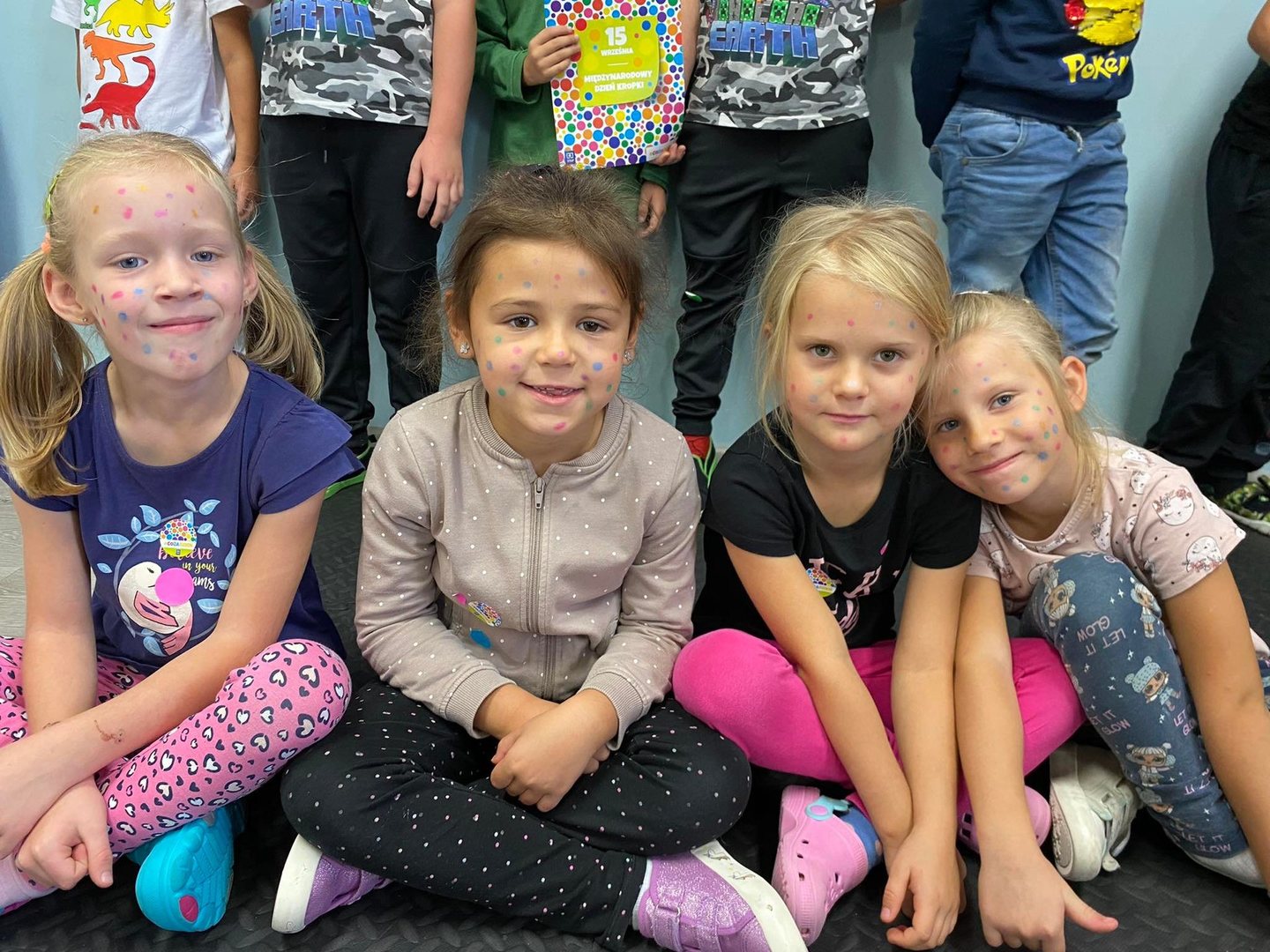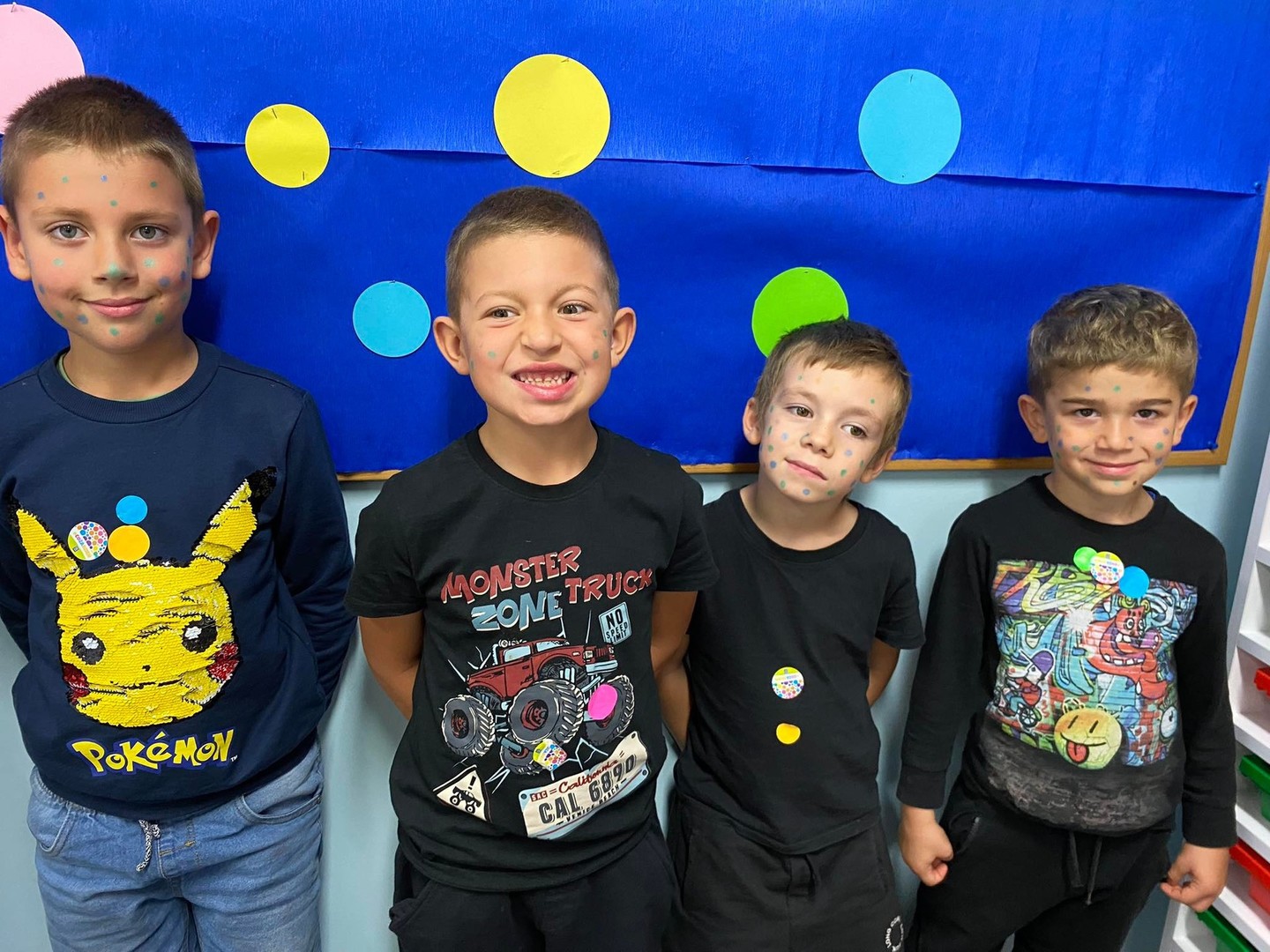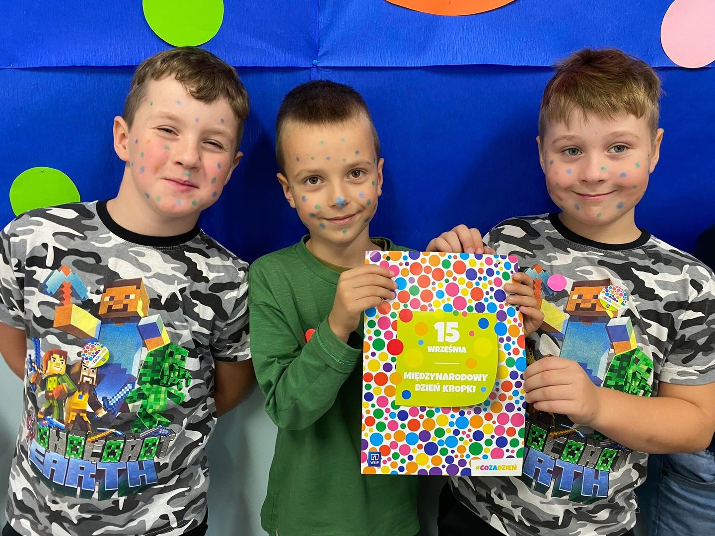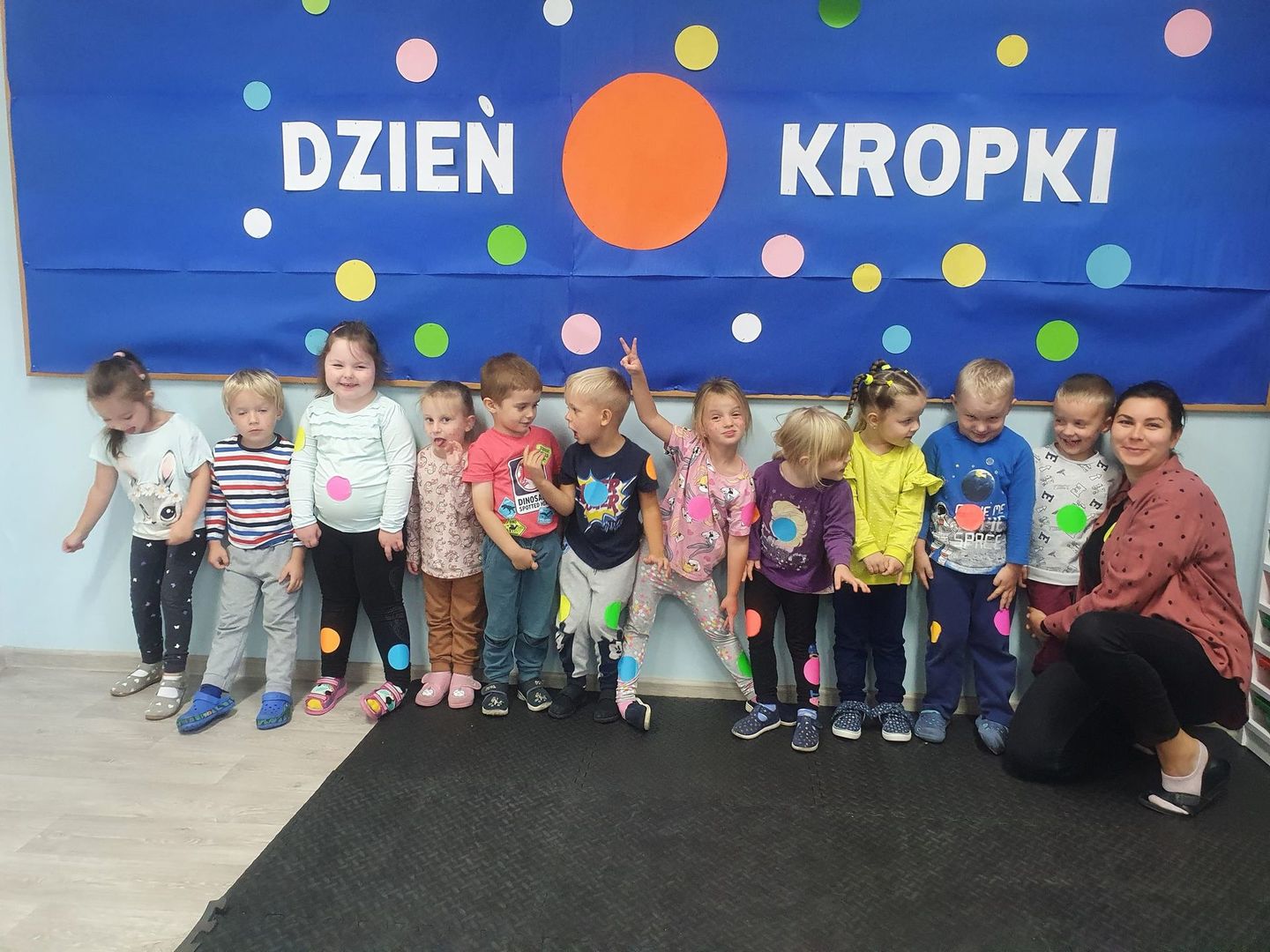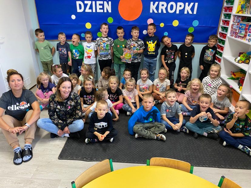 "Międzynarodowy Dzień Kropki" obchodzony jest na całym świecie 15 września. Jest to święto, które ma na celu pobudzanie kreatywności, pomysłowości, talentu i odwagi w pokonywaniu trudności. Świętowanie rozpoczęliśmy od zapoznania się z Vashti. Dzieci wysłuchały jej historii, a także obejrzały krótki filmik o tytułowej "Kropce". Kolejnym punktem tego dnia było uczestnictwo w wielu zabawach z kropką. Przedszkolaki tworzyły piękne prace plastyczne, tańczyły, rysowały oraz układały „kropkowe” wzory. Było kolorowo i kropkowo….:)