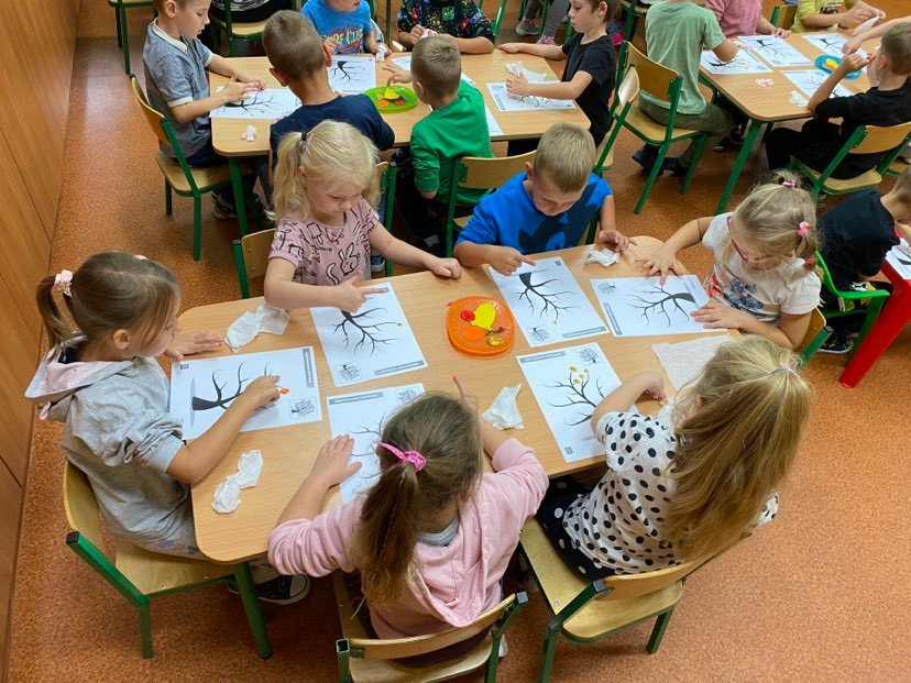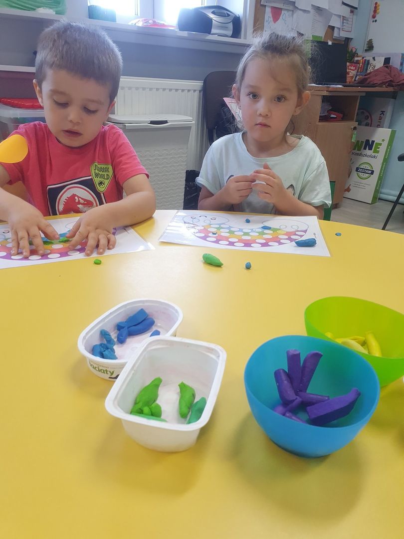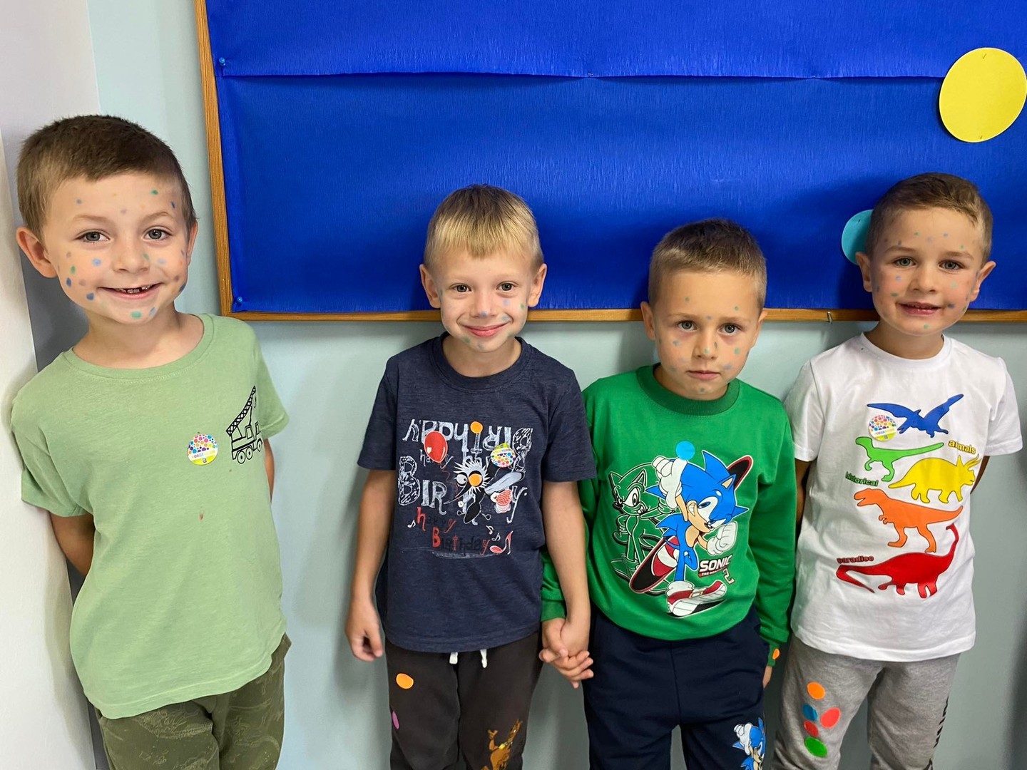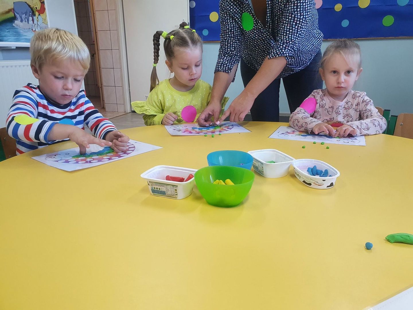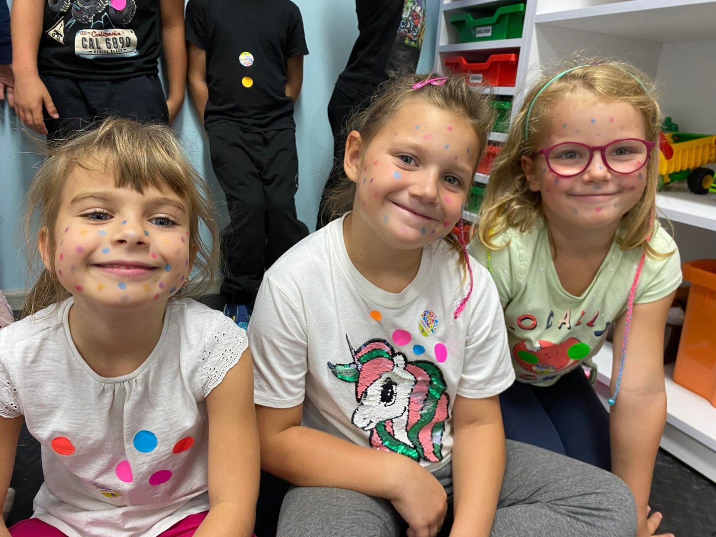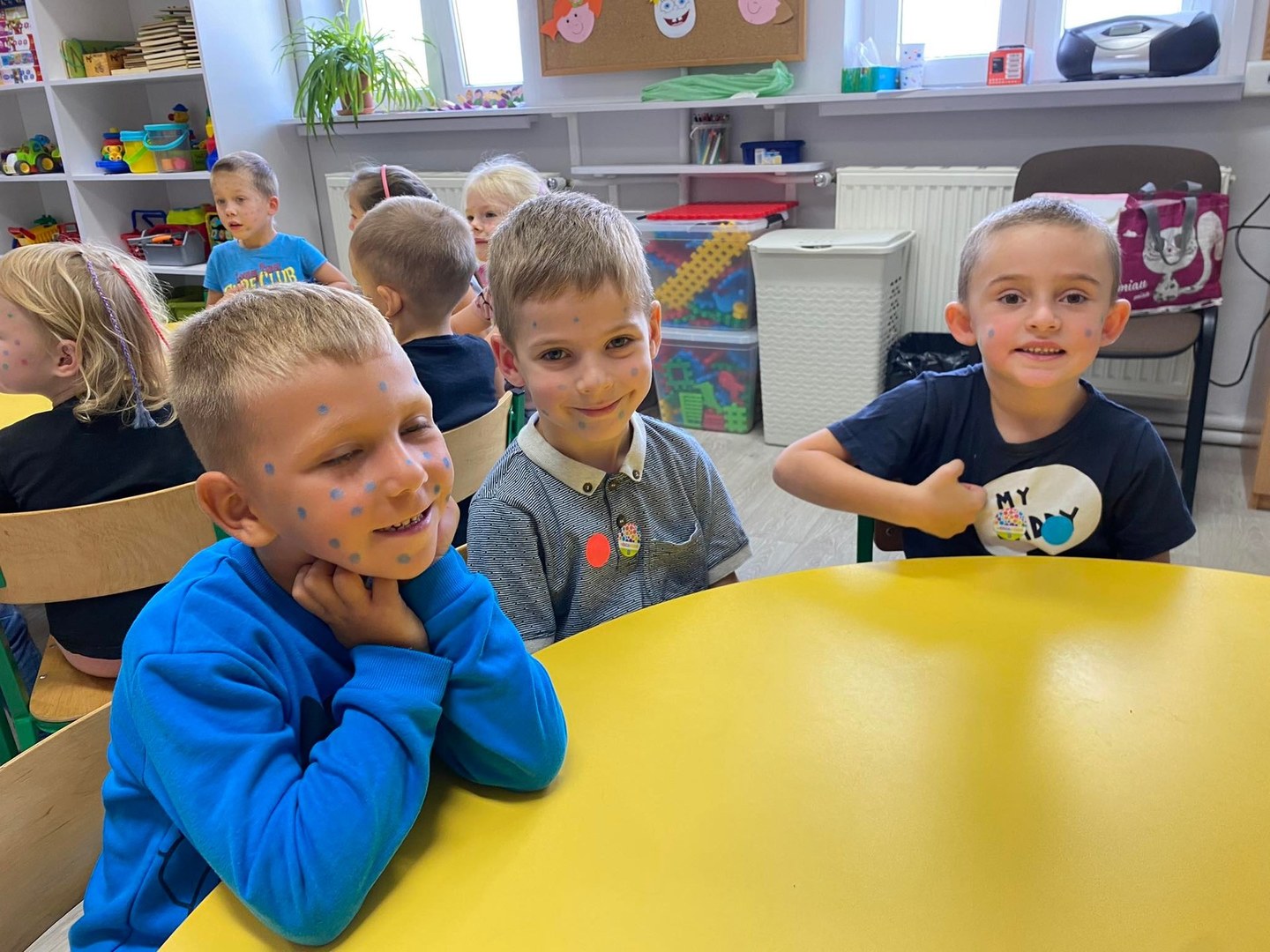 "Międzynarodowy Dzień Kropki" obchodzony jest na całym świecie 15 września. Jest to święto, które ma na celu pobudzanie kreatywności, pomysłowości, talentu i odwagi w pokonywaniu trudności. Świętowanie rozpoczęliśmy od zapoznania się z Vashti. Dzieci wysłuchały jej historii, a także obejrzały krótki filmik o tytułowej "Kropce". Kolejnym punktem tego dnia było uczestnictwo w wielu zabawach z kropką. Przedszkolaki tworzyły piękne prace plastyczne, tańczyły, rysowały oraz układały „kropkowe” wzory. Było kolorowo i kropkowo….:)