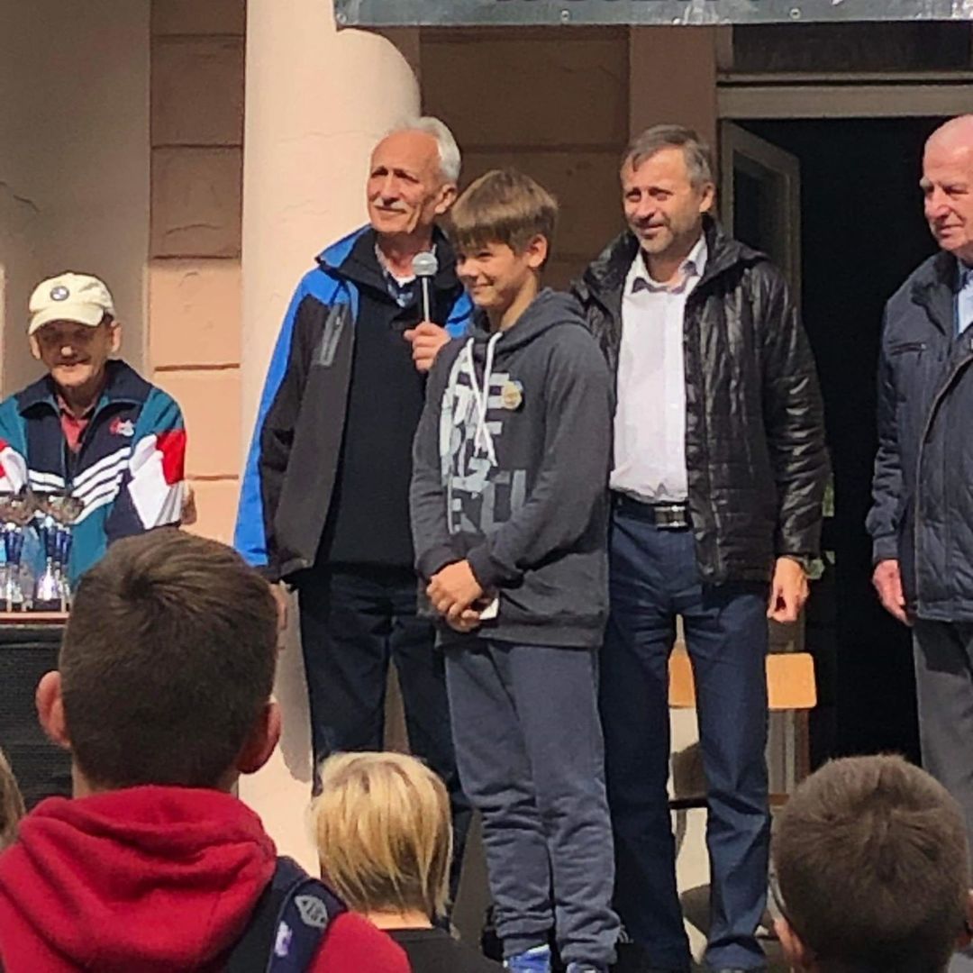 Zadowoleni dotarliśmy do mety, na której czekał na nas poczęstunek. Po krótkim odpoczynku przystąpiliśmy do konkursów: przejazdu na rowerze żółwim tempem – Szymon Kaźmierski, rzutów lotką do celu – Julia Hoffmann, żonglerki piłką – Antoni Garczewski oraz konkursu wiedzy dotyczącej udzielania pierwszej pomocy – Maksymilian Skrzypczak.