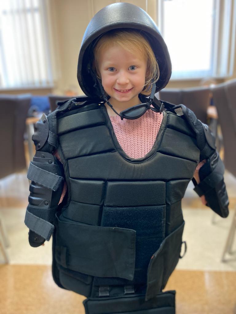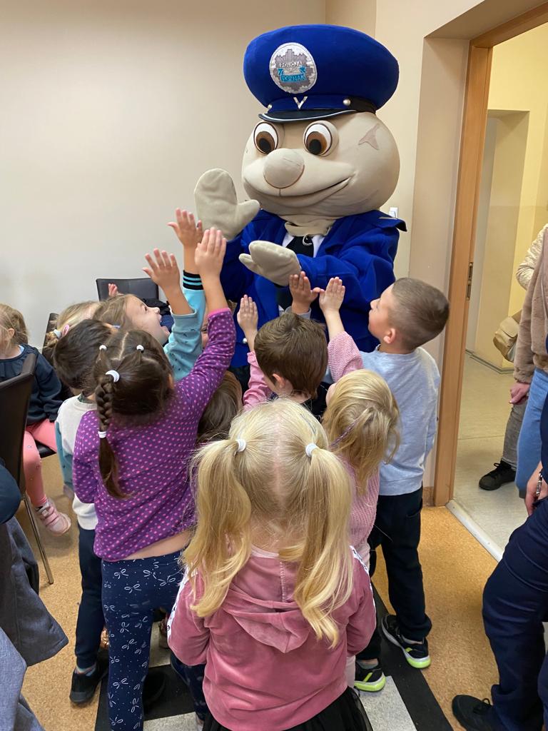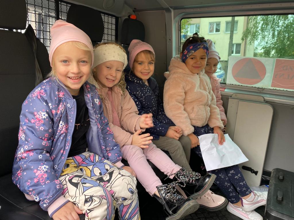 Dnia 5 października grupa 5 i 6 –latków odwiedziła Komendę Powiatową Policji w Obornikach. Podczas wizyty mieliśmy okazję zobaczyć miejsca codziennej służby policjantów oraz przypomnieć sobie podstawowe zasady bezpieczeństwa. Dzieci mogły przymierzyć policyjną czapkę, kamizelkę oraz obejrzeć kajdanki. Ponadto przedszkolaki mogły usiąść za kierownicą radiowozu. Na koniec pożegnał nas sierżant Pyrek, który zawsze wywołuje uśmiech na twarzach dzieci.