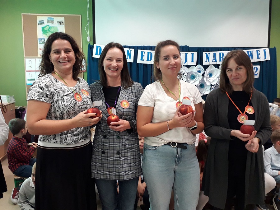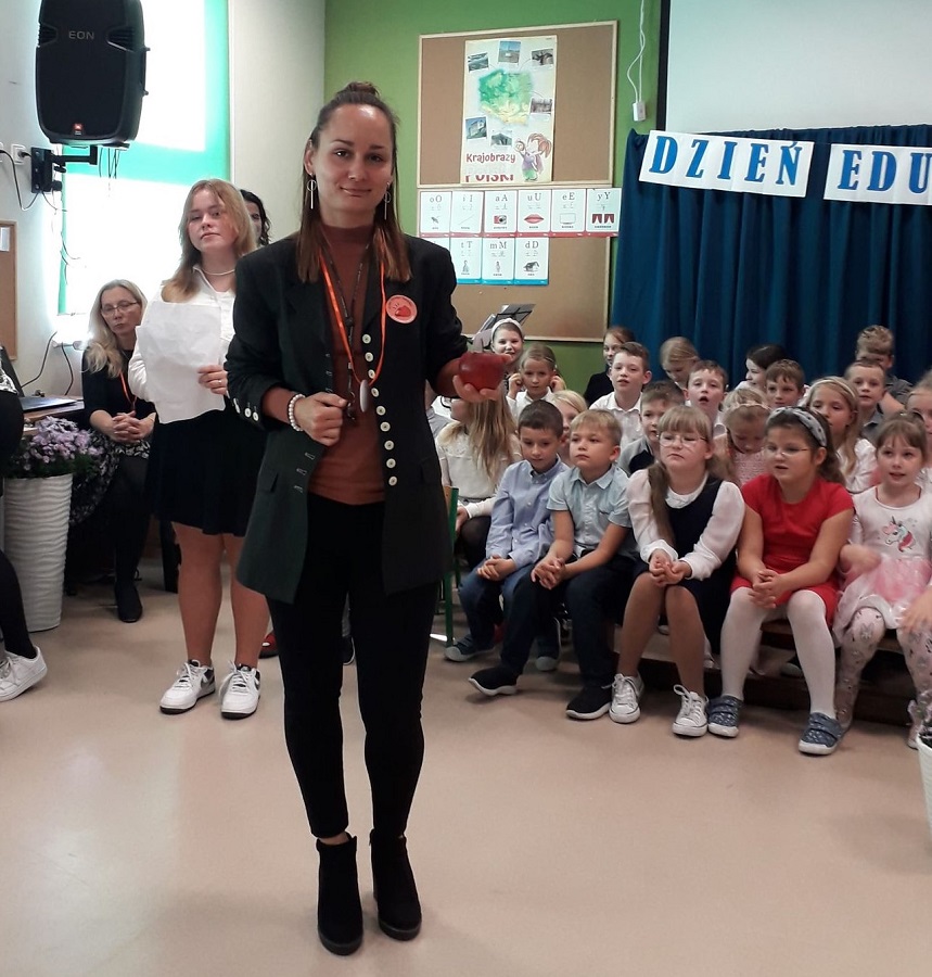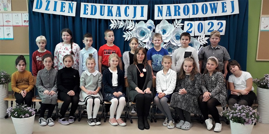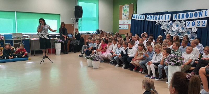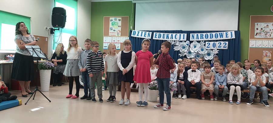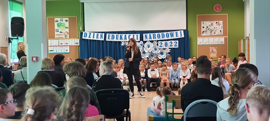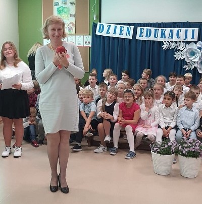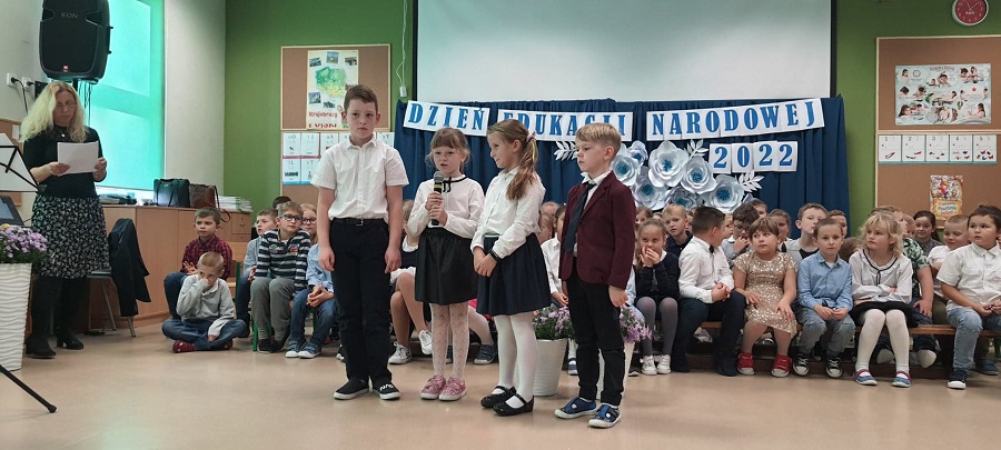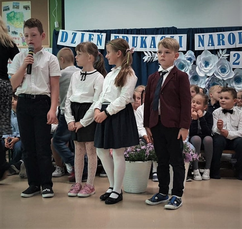 Z okazji Dnia Edukacji Narodowej klasy 1-3 przygotowały krótki występ artystyczny. Spotkanie rozpoczął mini koncert flażoletowy - przepiękne wykonanie Gaudeamus igitur. Głos zajęli przedstawiciele najmłodszych klas, którzy w krótkich wierszykach przypomnieli o znaczeniu pracy nauczycieli. W wydarzeniu uczestniczyli także byli pracownicy naszej placówki, którzy przeszli na zasłużony odpoczynek. Samorząd Uczniowski wręczył wszystkim "ordery zasługi" doceniając w ten sposób trud włożony w stworzenie przyjaznej atmosfery do zdobywania wiedzy. Całość spotkania zwieńczona została podziękowaniami dla pracowników szkoły od Rady Rodziców.