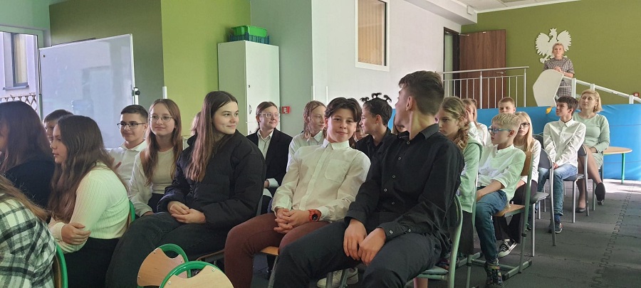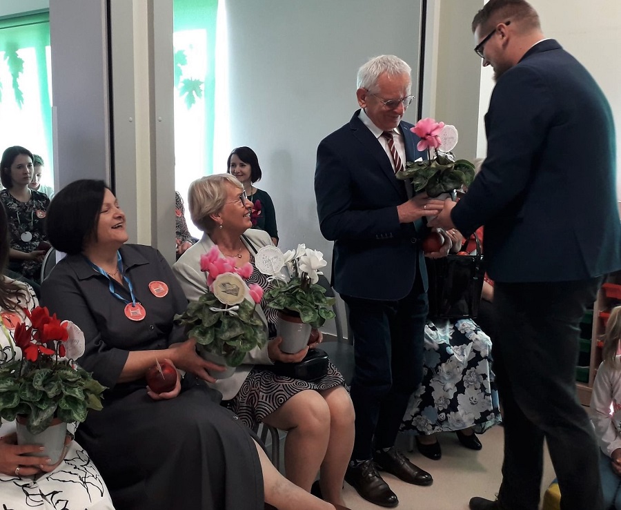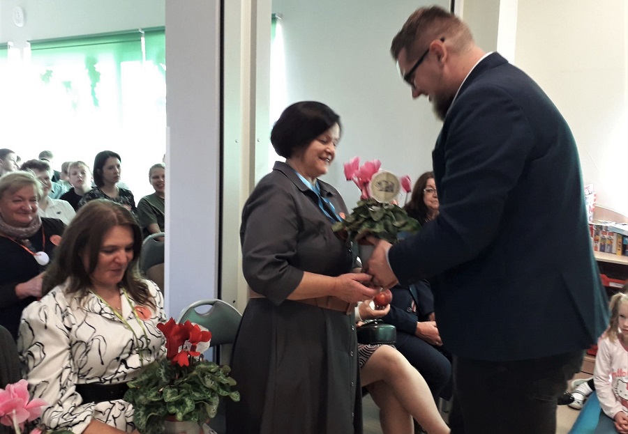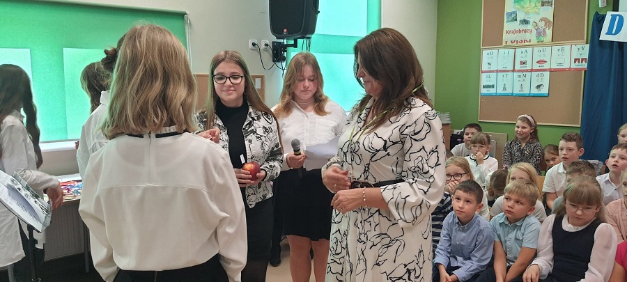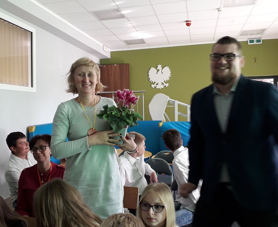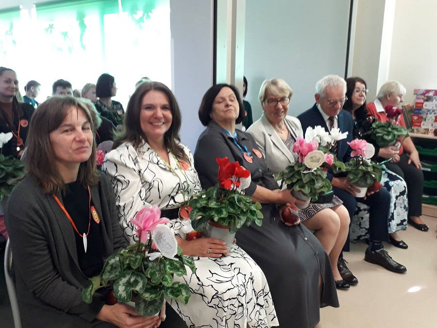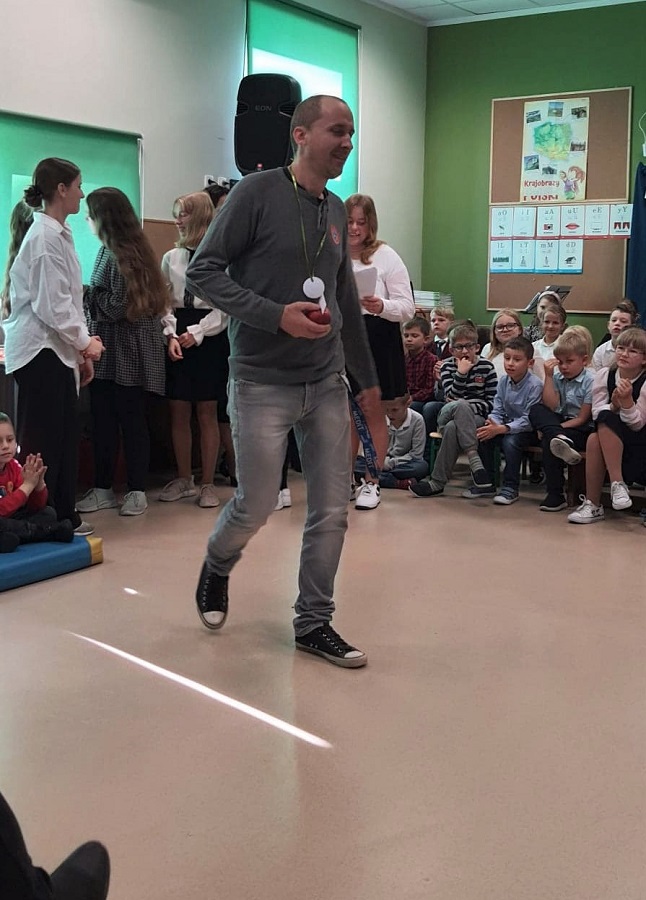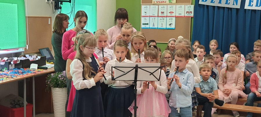 Z okazji Dnia Edukacji Narodowej klasy 1-3 przygotowały krótki występ artystyczny. Spotkanie rozpoczął mini koncert flażoletowy - przepiękne wykonanie Gaudeamus igitur. Głos zajęli przedstawiciele najmłodszych klas, którzy w krótkich wierszykach przypomnieli o znaczeniu pracy nauczycieli. W wydarzeniu uczestniczyli także byli pracownicy naszej placówki, którzy przeszli na zasłużony odpoczynek. Samorząd Uczniowski wręczył wszystkim "ordery zasługi" doceniając w ten sposób trud włożony w stworzenie przyjaznej atmosfery do zdobywania wiedzy. Całość spotkania zwieńczona została podziękowaniami dla pracowników szkoły od Rady Rodziców.