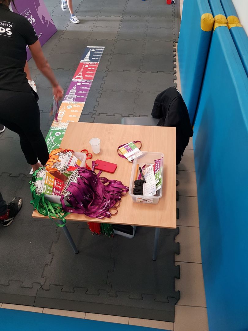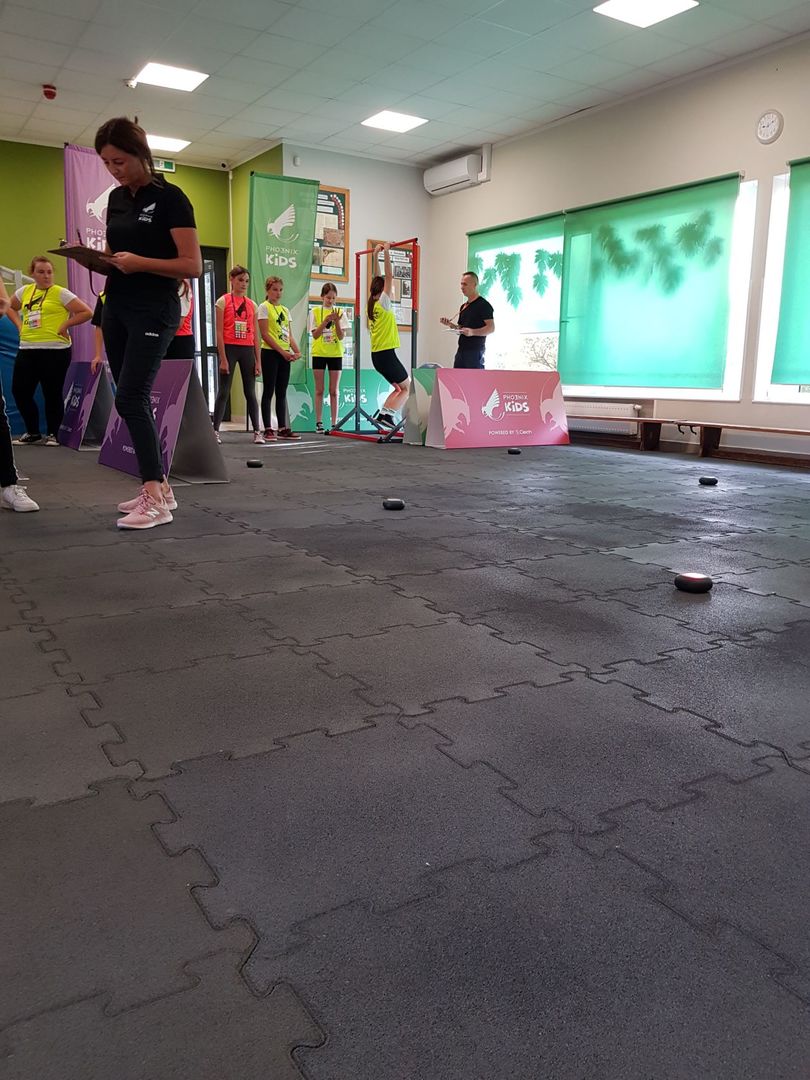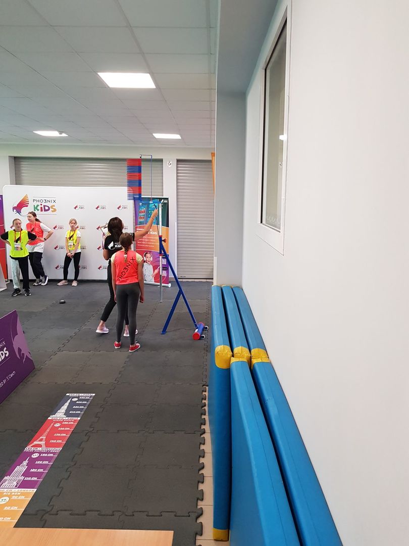 II - część praktyczna, w której nasi uczniowie mogli sprawdzić swoje predyspozycje sportowe na specjalnie przygotowanych stacjach skoku w dal z miejsca, wyskoku dosiężnego, zwisu na drążku oraz biegu po kopercie i zapisać wyniki na otrzymanej wcześniej akredytacji.