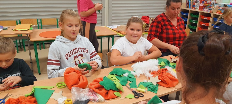 Na początek klasa II spotkała się na warsztatach szycia - powstały przytulne myszki i dynie poduchy. Nie było łatwo, igły, nici, wykroje, zszywanie, zaszywanie, doszywanie...ale się udało! Co widac na zdjęciach. Już niedługo kolejne spotkania, zaprosimy również mamy z klas I-III.