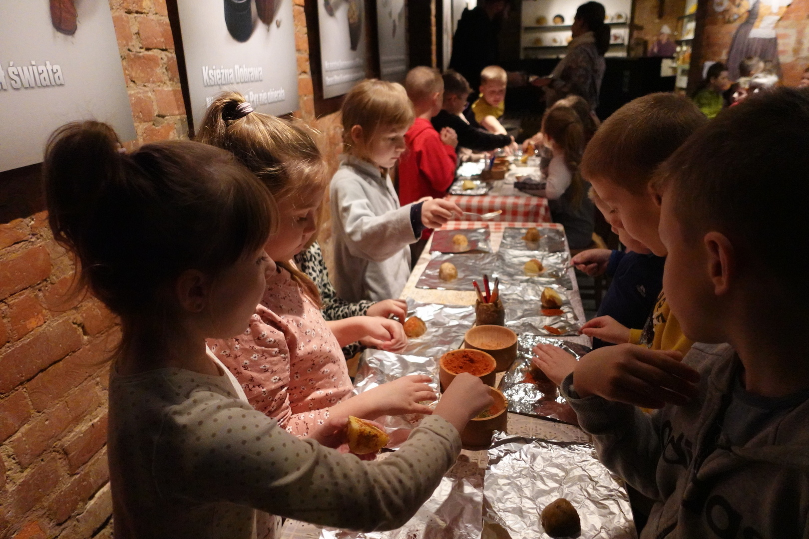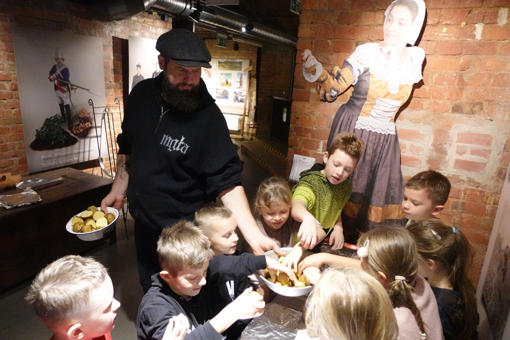 Miejsce pierwsze - prowadzone z pasją, gdzie słucha się z ogromną przyjemnością opowiadało o historii ziemniaka - w naszej wielkopolskiej okolicy zwane pyrą, które przybyły do Europy z Ameryki Południowejw XVI w. Na ziemiach polskich przyjęły się najszybciej w Wielkopolsce. Dlatego Poznań, określany jest Pyrlandią. W miejscu tym wzięliśmy udział w warsztatach pieczenia pyry - ich przepyszny zapach roznosił się po całym muzeum.