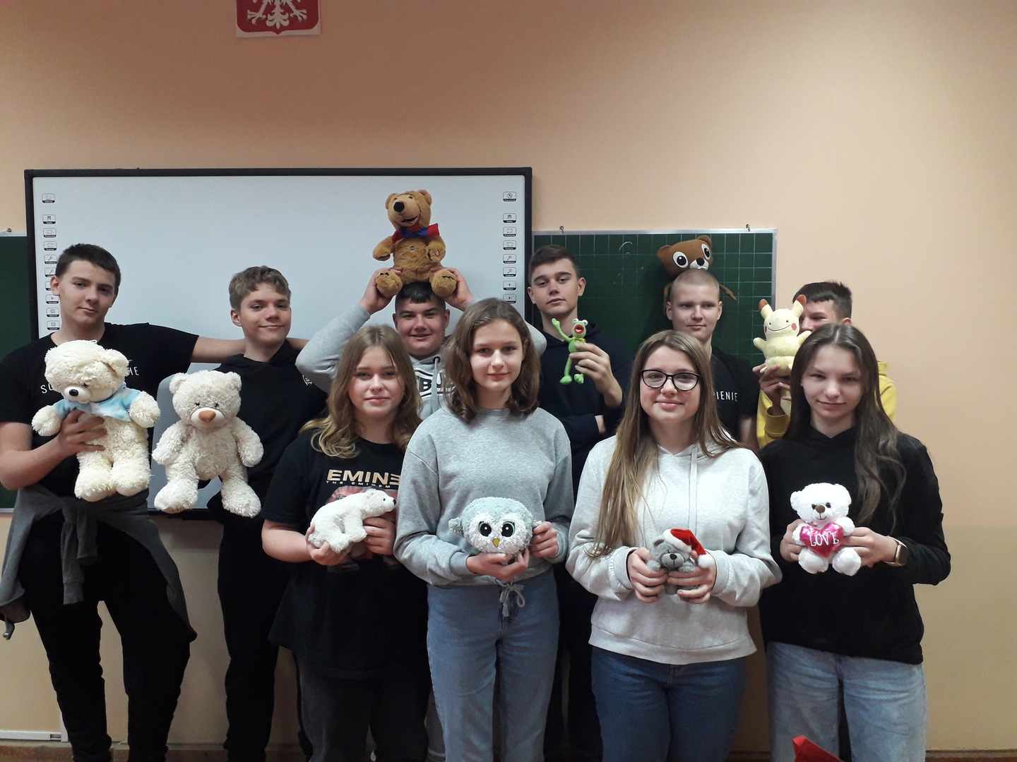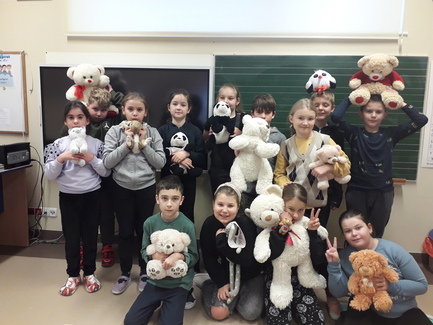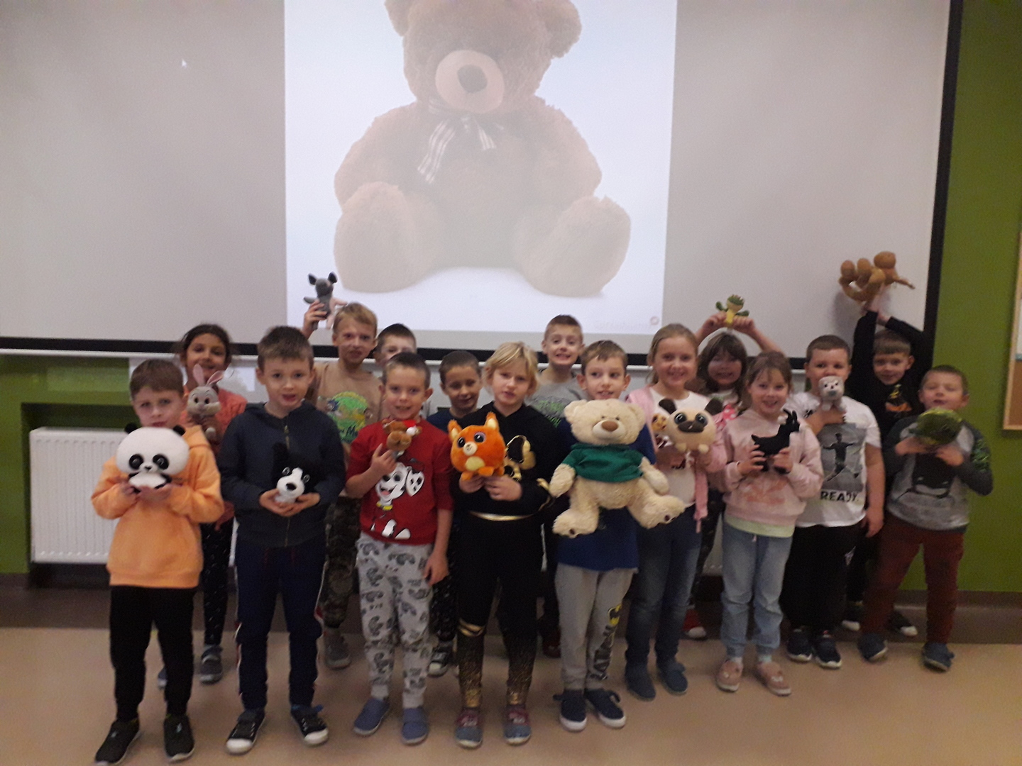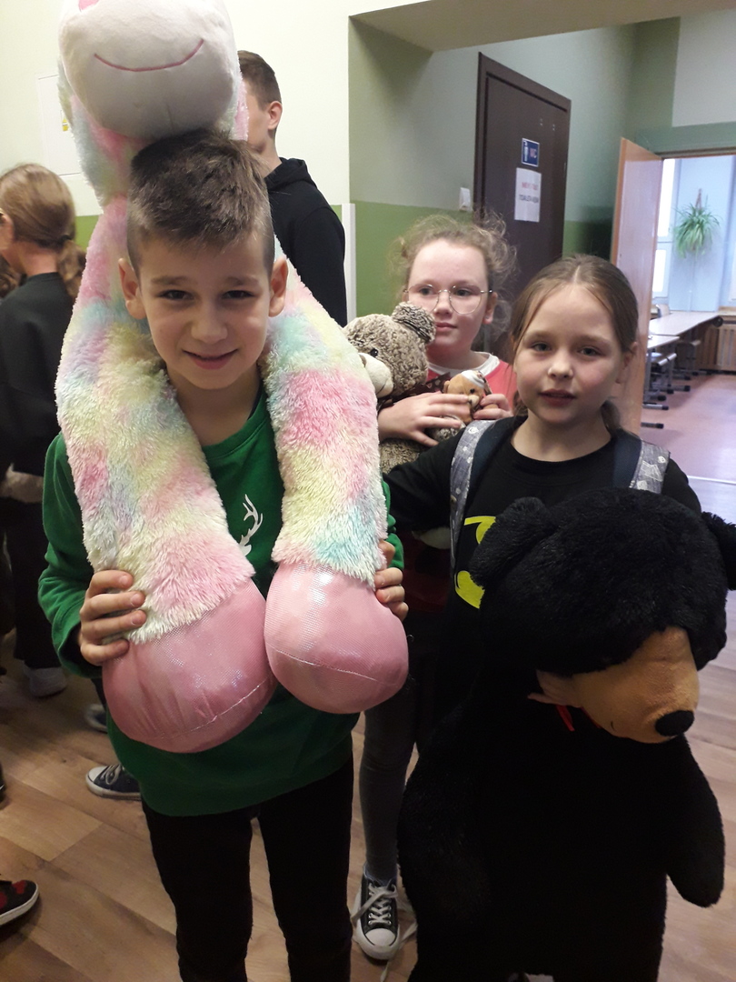 Dzień Pluszowego Misia obchodzony jest już od kilku lat w naszej szkole wśród młodszych klas. W tym roku SU zorganizował akcję także w klasach starszych. Młodzież i dzieci z dużym zaangażowaniem wsparły działania SU i przyniosły do szkoły misie małe, duże oraz inne pluszaki. W tym dniu każdy uczeń, który przyłączył się do akcji zwolniony był z odpowiedzi ustnej i niezapowiedzianych kartkówek. Wszystkim zaangażowanym serdecznie dziękujemy i zapraszamy już w grudniu na Dzień Świątecznego Sweterka. Poniżej fotorelacja z naszej zabawy...