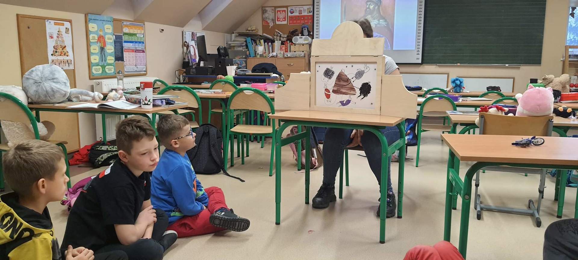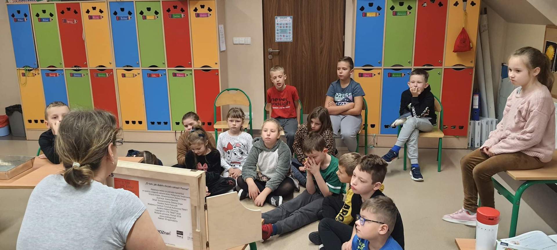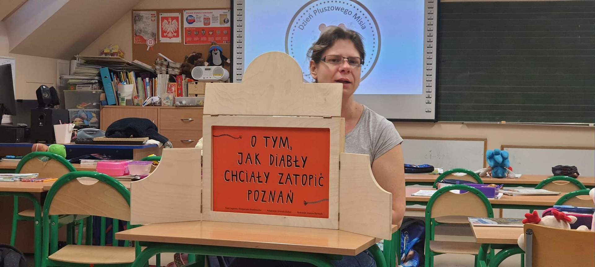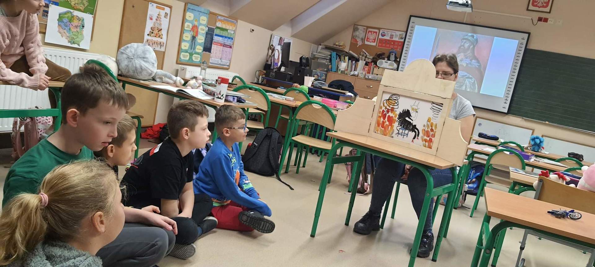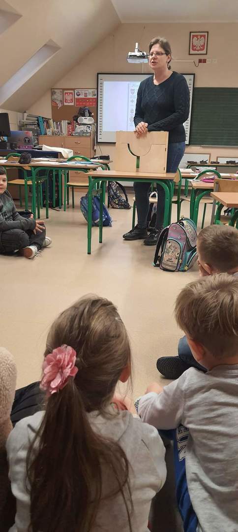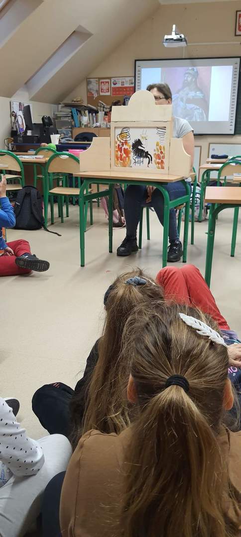 W ramach tegorocznych przygotowań do obchodów Dnia Patrona uczniowie z klas 1-4 oraz dzieci z oddziałów przedszkolnych spotykały się z naszą Panią historyk, która starała się im przybliżyć postać Orła Białego. Zajęcia odbywały się przy wykorzystaniu japońskiej sztuki opowiadania bajek, legend, podań tzw. teatrzyku kamishibai. Dzieci poznały legendę związaną z założeniem państwa polskiego "O Lechu, Czechu i Rusie", którą opowiadała Pani Ania. Natomiast przy wykorzystaniu teatrzyku poznały legendy "O założeniu Poznania" i "O tym, jak diabły chciały Poznań zatopić". Uczestnicy w dużym skupieniu wzięli udział w przedstawieniach i z dużym zaangażowaniem odpowiadali na zadawane im pytania dotyczące symboli narodowych.