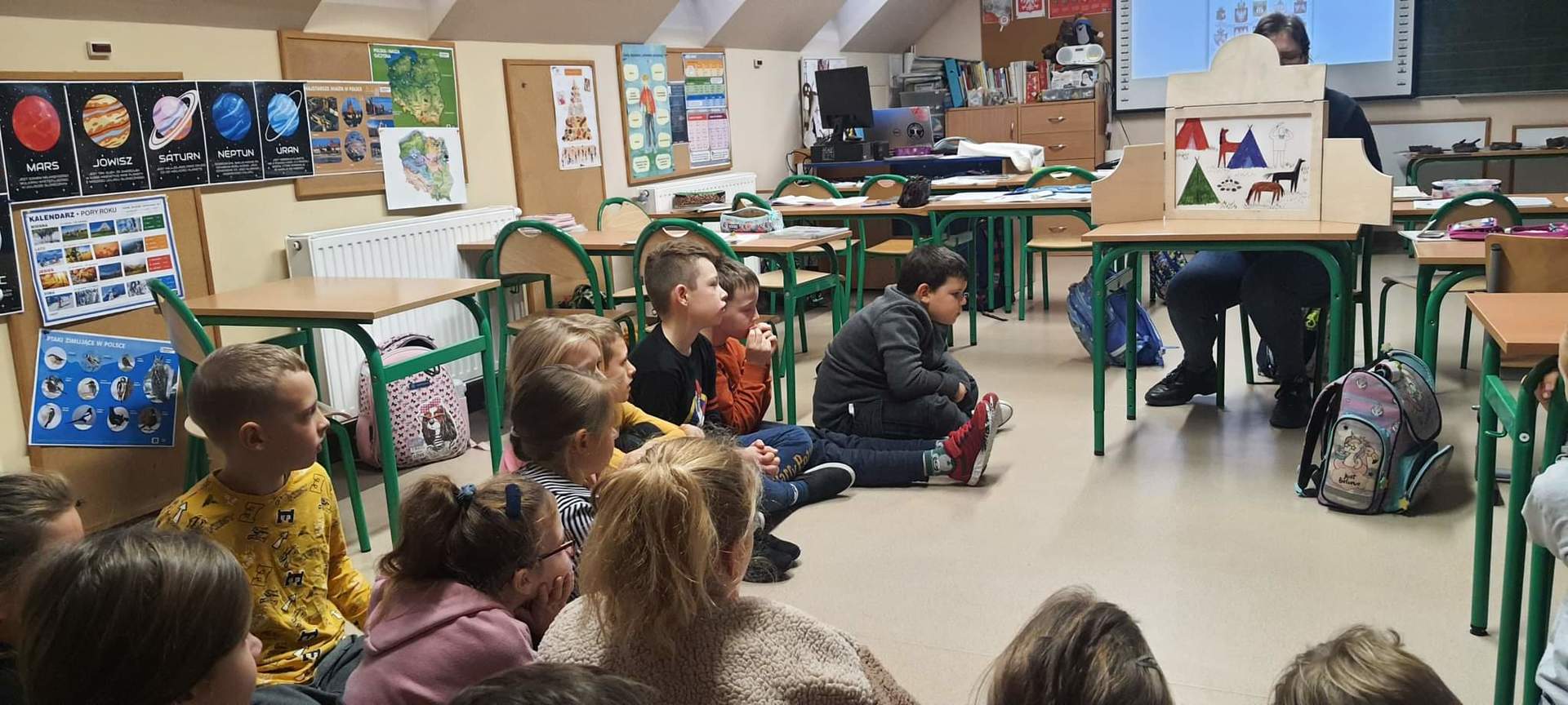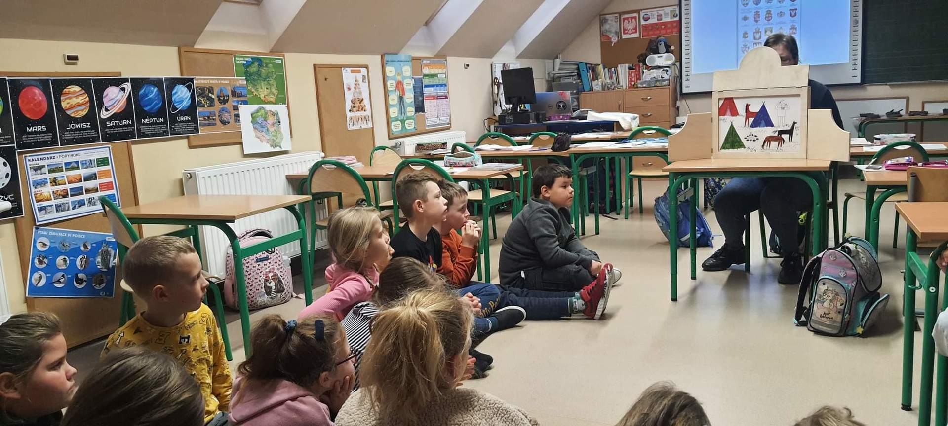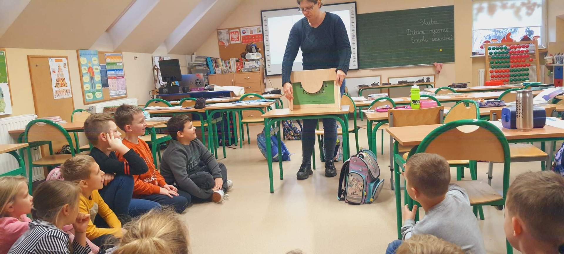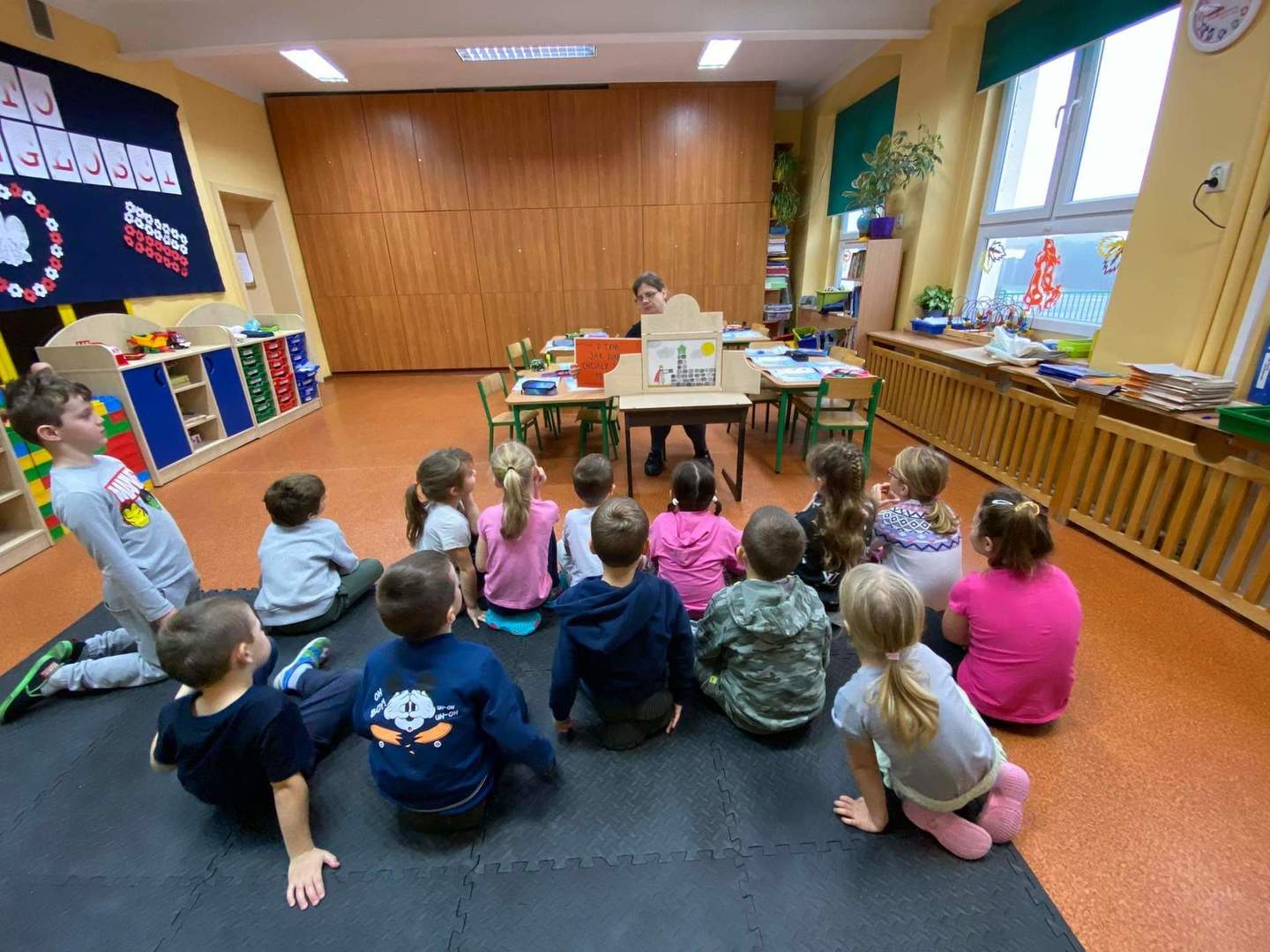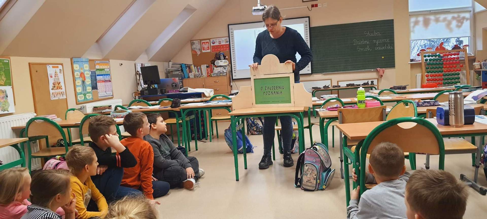 W ramach tegorocznych przygotowań do obchodów Dnia Patrona uczniowie z klas 1-4 oraz dzieci z oddziałów przedszkolnych spotykały się z naszą Panią historyk, która starała się im przybliżyć postać Orła Białego. Zajęcia odbywały się przy wykorzystaniu japońskiej sztuki opowiadania bajek, legend, podań tzw. teatrzyku kamishibai. Dzieci poznały legendę związaną z założeniem państwa polskiego "O Lechu, Czechu i Rusie", którą opowiadała Pani Ania. Natomiast przy wykorzystaniu teatrzyku poznały legendy "O założeniu Poznania" i "O tym, jak diabły chciały Poznań zatopić". Uczestnicy w dużym skupieniu wzięli udział w przedstawieniach i z dużym zaangażowaniem odpowiadali na zadawane im pytania dotyczące symboli narodowych.