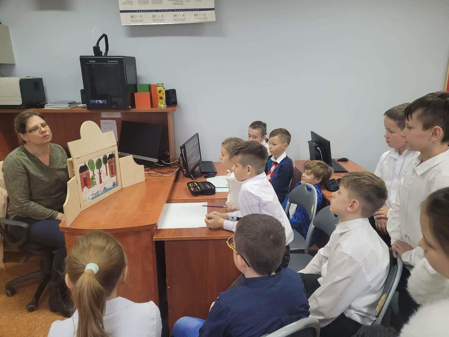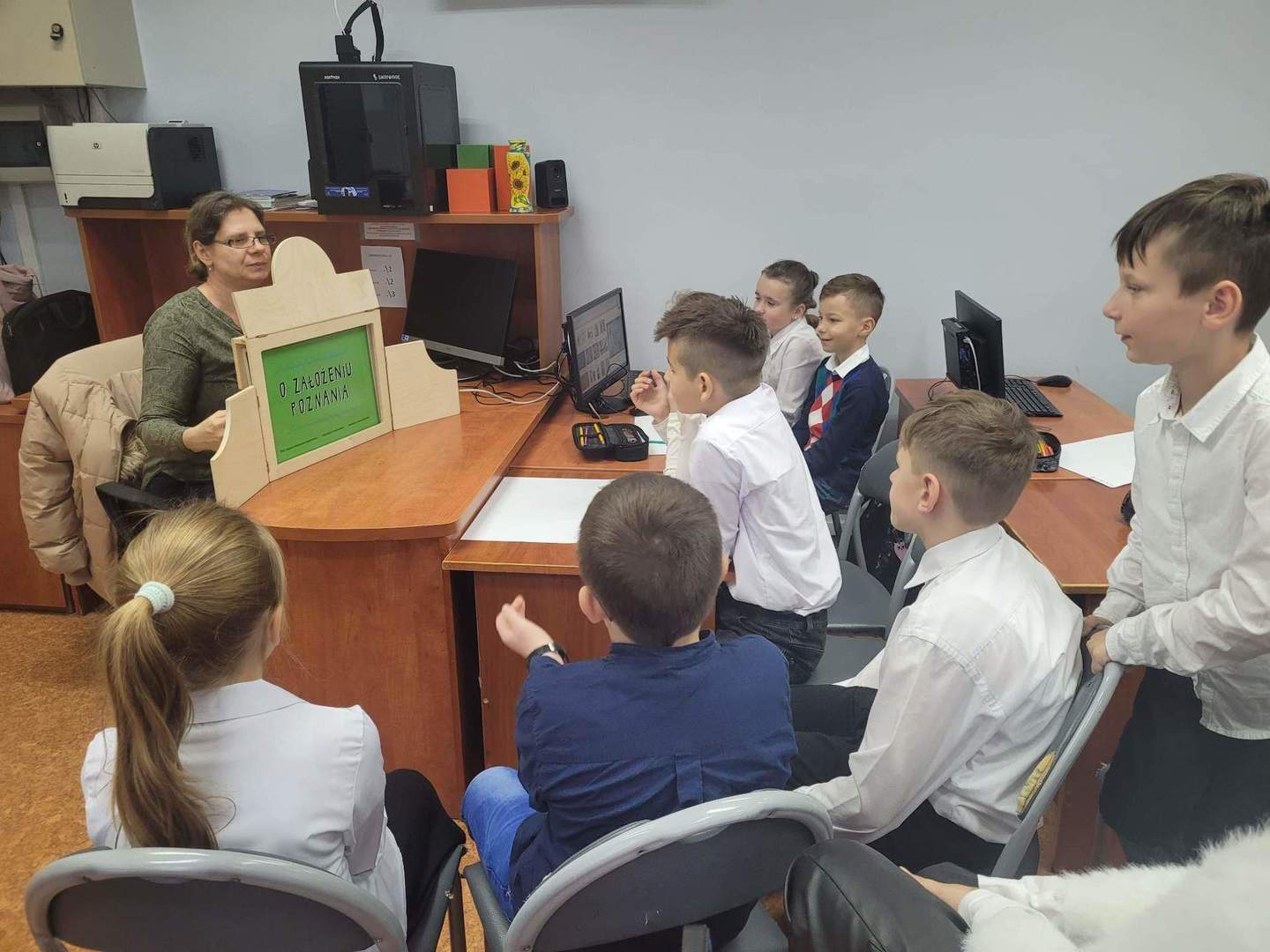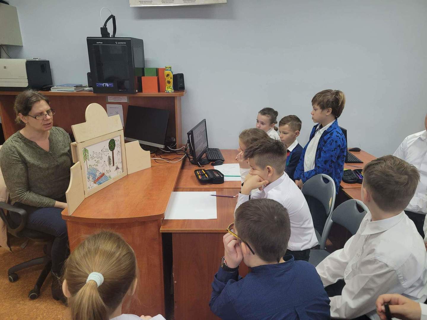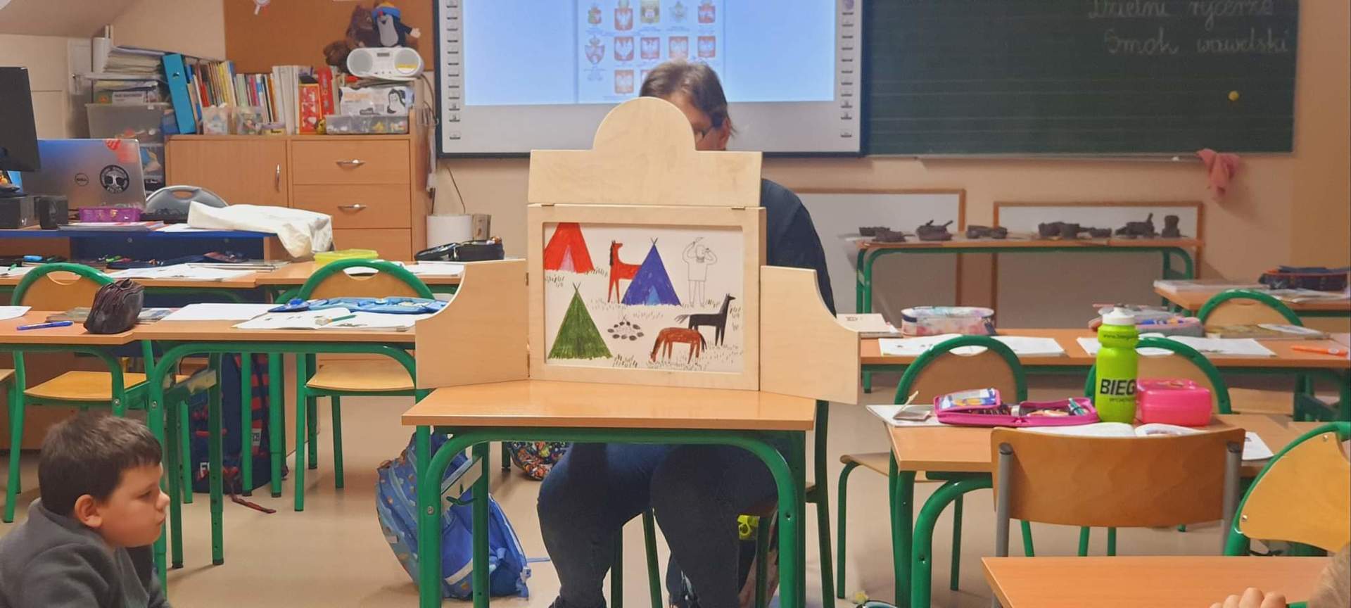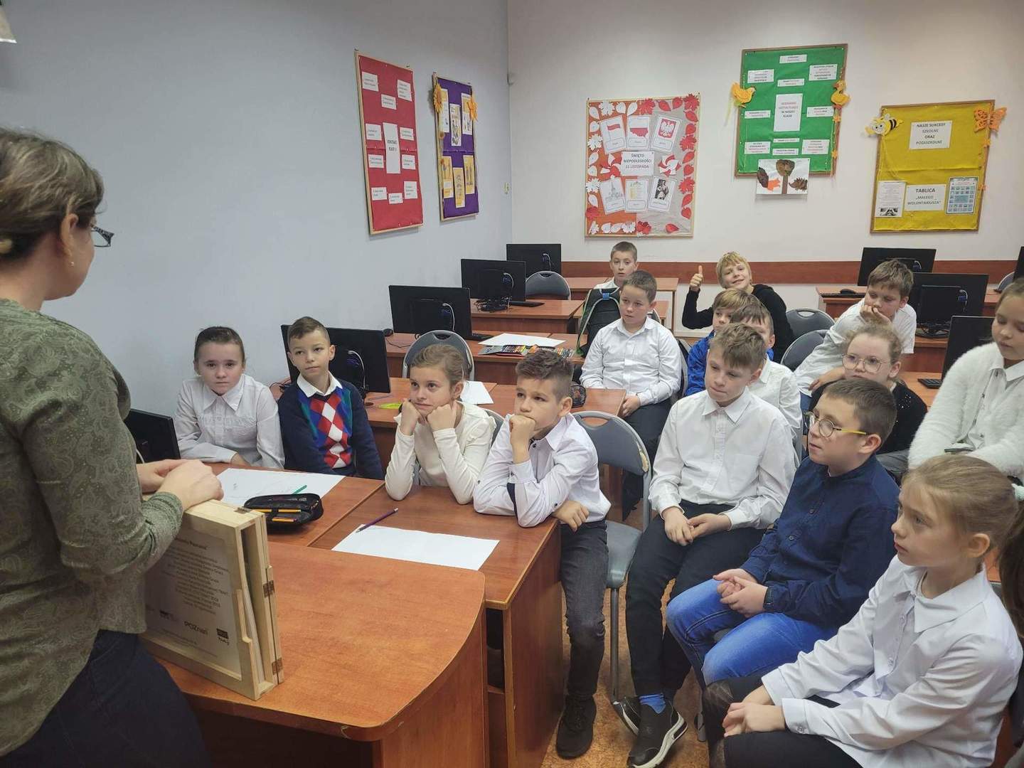 W ramach tegorocznych przygotowań do obchodów Dnia Patrona uczniowie z klas 1-4 oraz dzieci z oddziałów przedszkolnych spotykały się z naszą Panią historyk, która starała się im przybliżyć postać Orła Białego. Zajęcia odbywały się przy wykorzystaniu japońskiej sztuki opowiadania bajek, legend, podań tzw. teatrzyku kamishibai. Dzieci poznały legendę związaną z założeniem państwa polskiego "O Lechu, Czechu i Rusie", którą opowiadała Pani Ania. Natomiast przy wykorzystaniu teatrzyku poznały legendy "O założeniu Poznania" i "O tym, jak diabły chciały Poznań zatopić". Uczestnicy w dużym skupieniu wzięli udział w przedstawieniach i z dużym zaangażowaniem odpowiadali na zadawane im pytania dotyczące symboli narodowych.