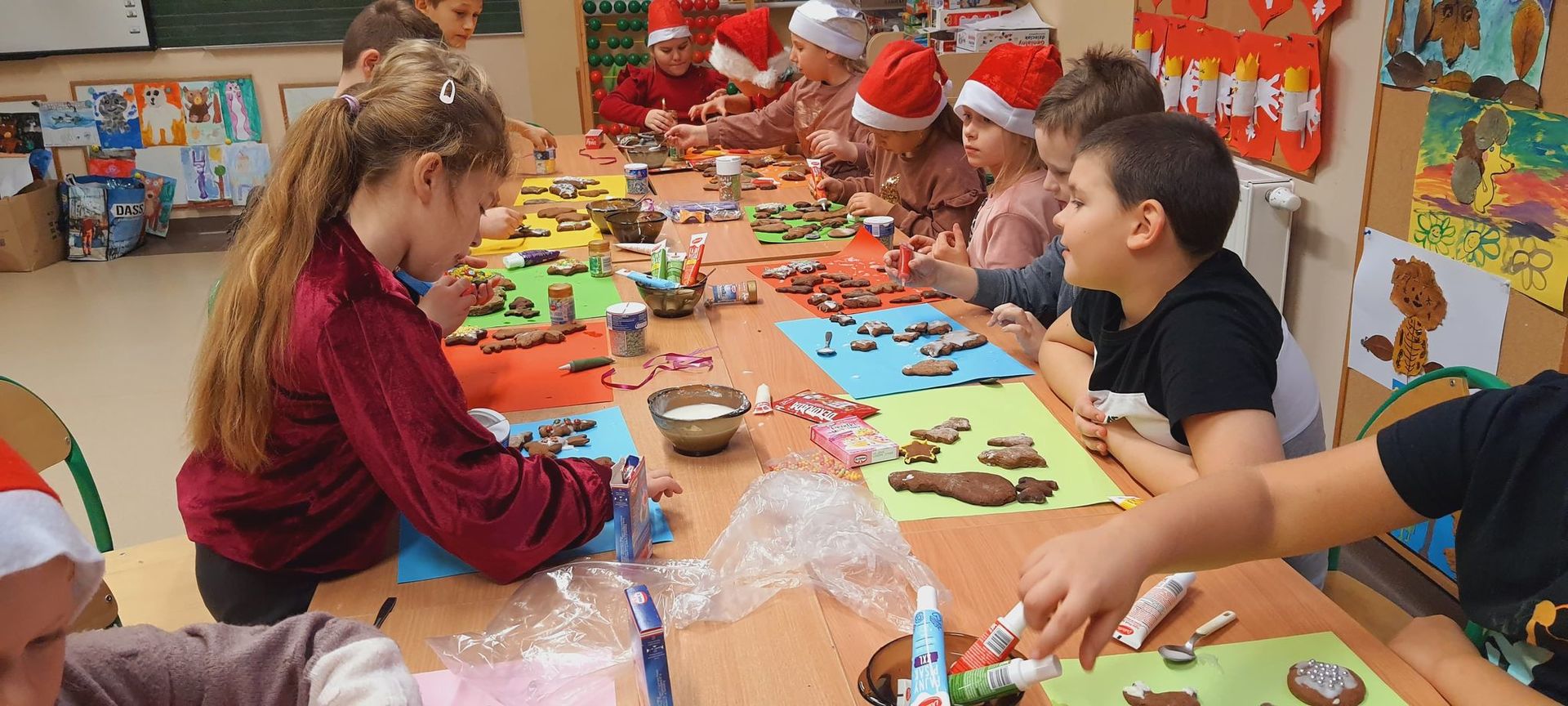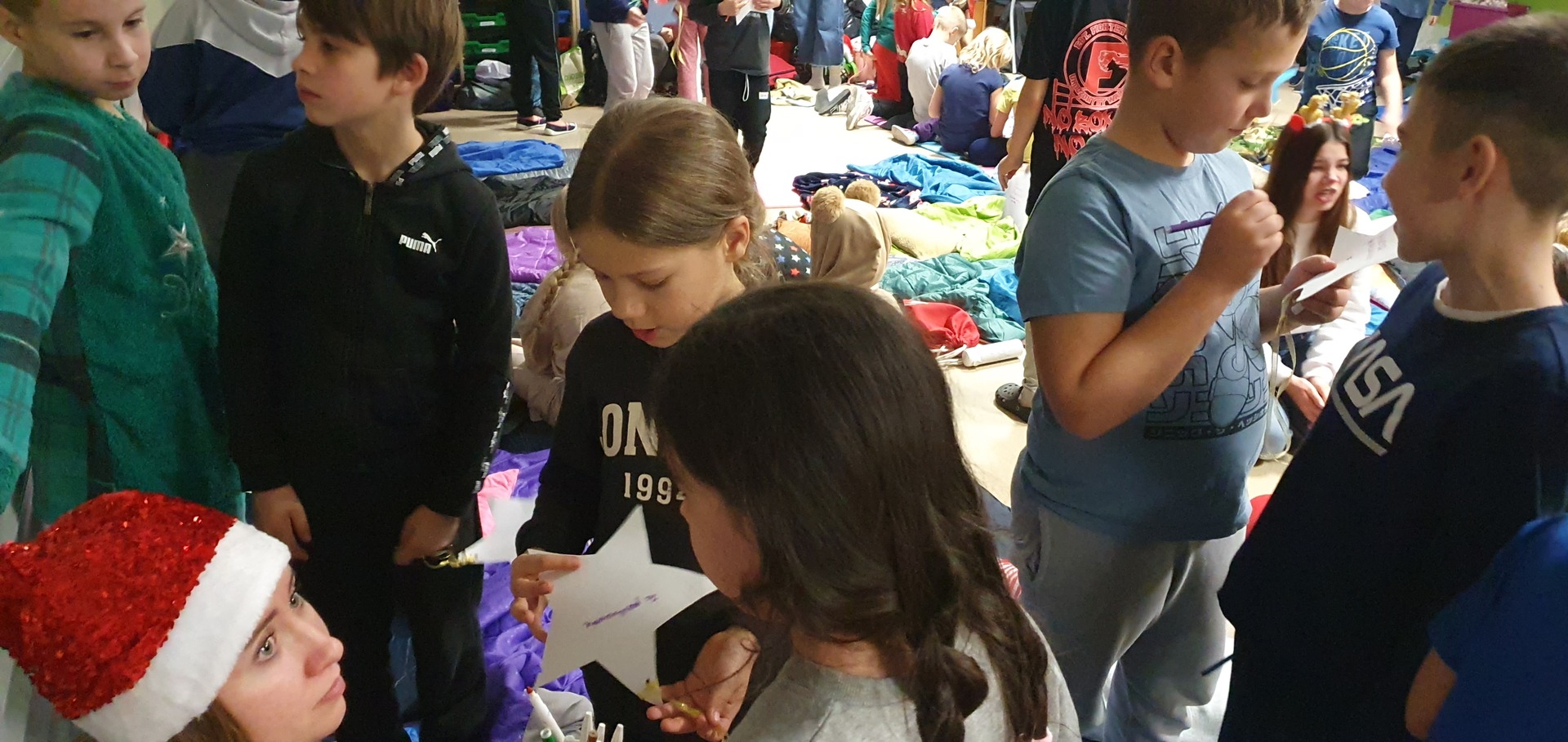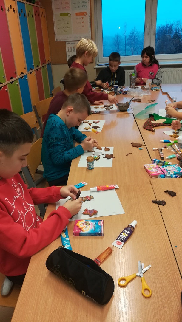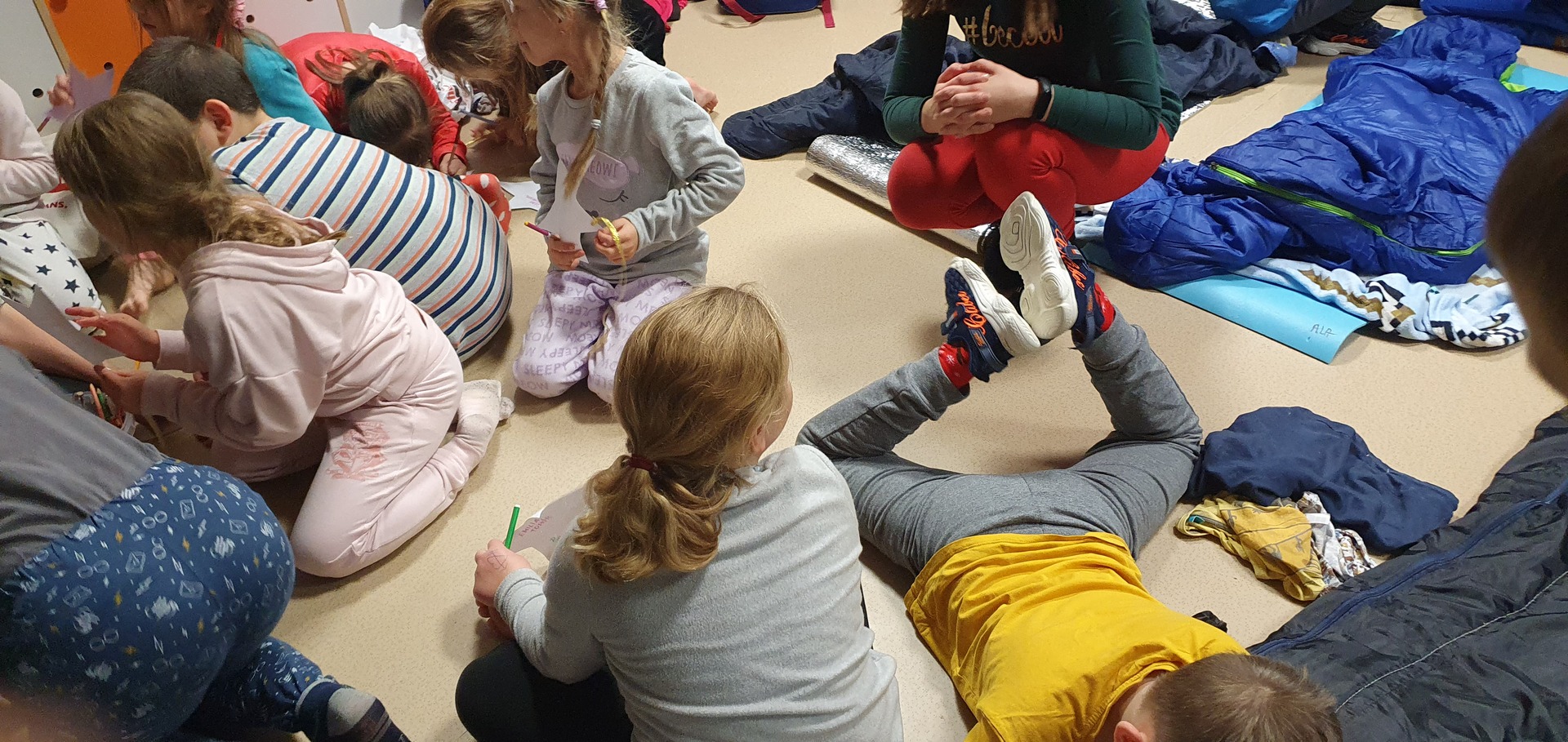 W tym roku udało się! Nasza coroczna tradycja nocnego mikołajkowego czuwania połączonego z licznymi warsztatami, zabawami i świątecznym kinem odbyła się bez przeszkód. Długo wyczekiwane nocowanie w szkole spotkało się z sympatycznym przyjęciem zarówno dzieci jak i rodziców :). Już o g.17.00 rozpoczęliśmy wspólnymi zabawami integracyjnymi. Następnie przyszedł czas na świąteczne warsztaty plastyczne i piernikowe wypieki. Było bajecznie kolorowo! Wspólna kolacja, bajkowo-świąteczne kino... i oczywiście czuwanie prawie do białego rana - wyczekiwanie Św. Mikołaja! Już byliśmy zrezygnowani, wielu przysnęło ... gdy do sal przybyły płaczące, lamentujące reniferki, które oświadczyły że świąt nie będzie :( ... Św. Mikołaj został porwany! Na całe szczęście po wykonaniu zadań, które postawiły przed dziećmi złe diabełki - został uwolniony. Zmęczeni, ale szczęśliwi uczniowie przysnęli ... a rano w ich czyściutkich bucikach w podziękowaniu za uwolnienie św. Mikołaj pozostawił słodki upominek. Więcej takich spotkań!