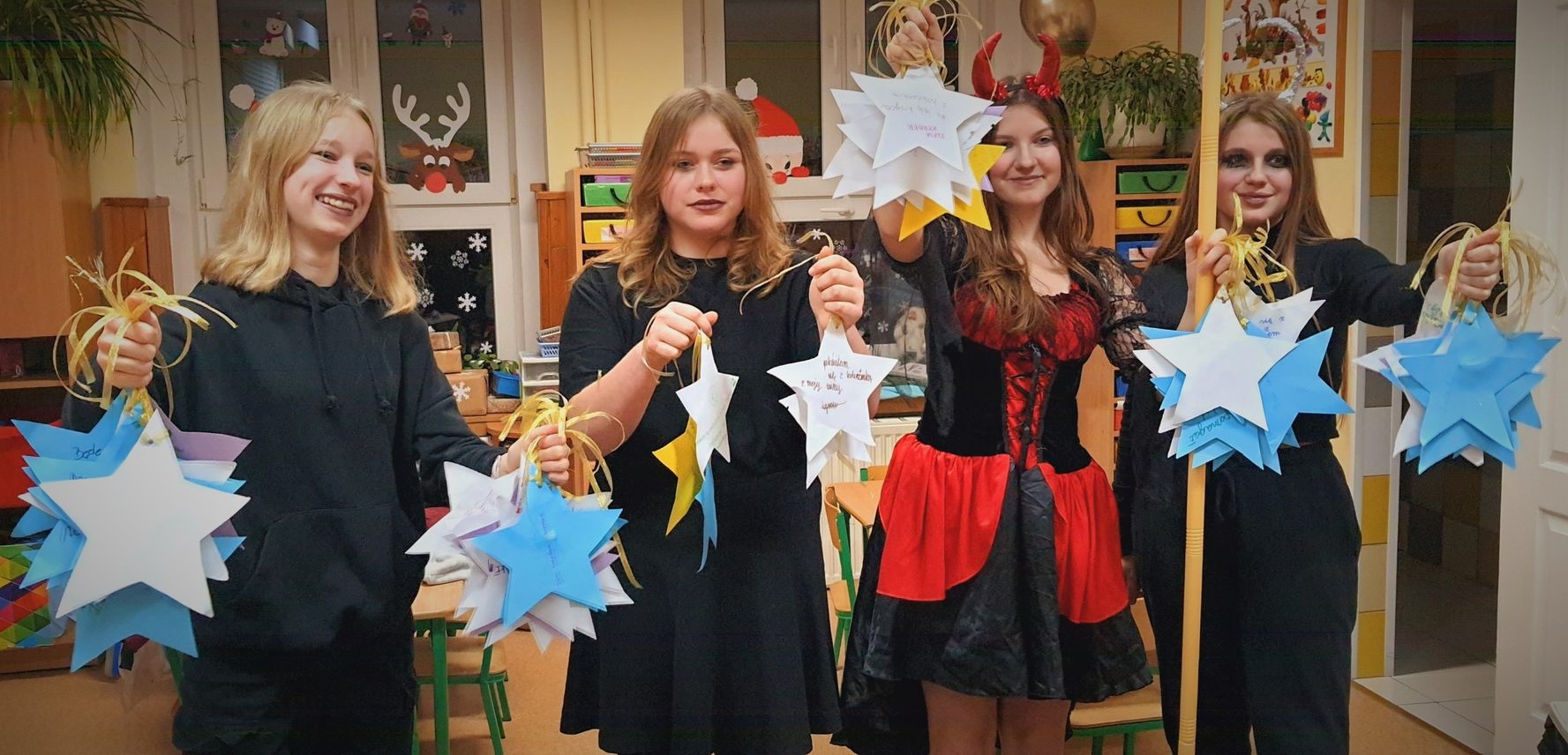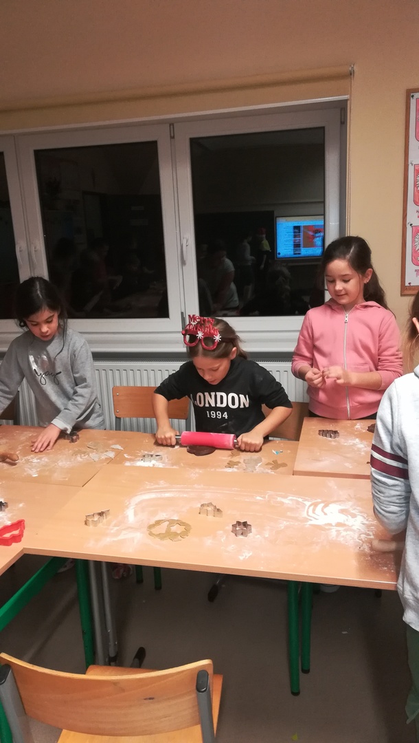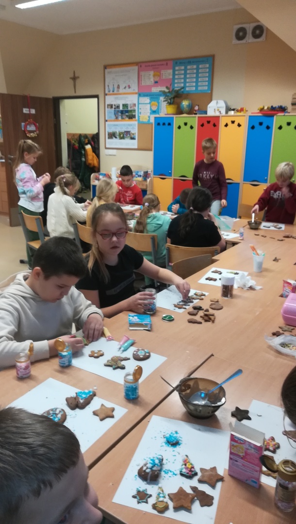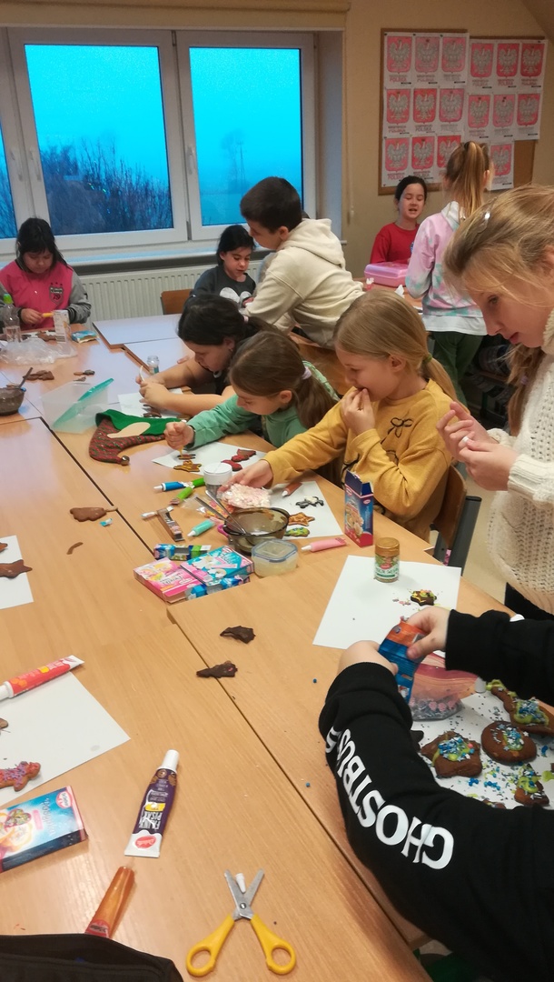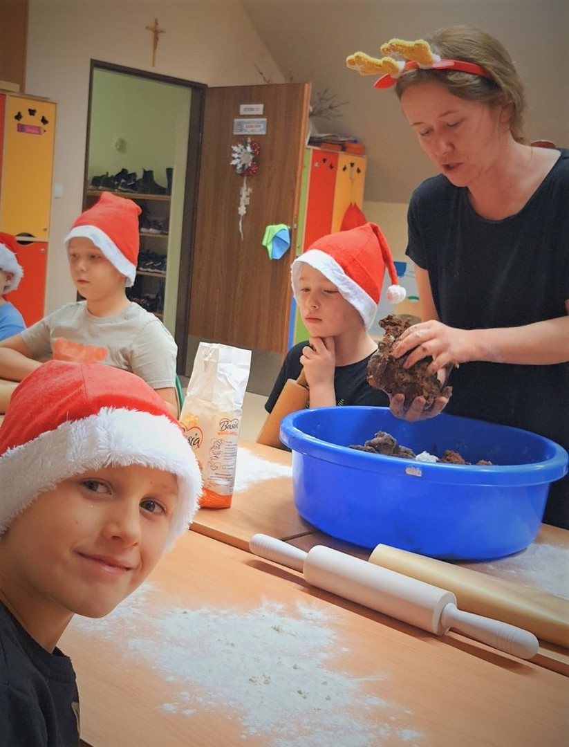 W tym roku udało się! Nasza coroczna tradycja nocnego mikołajkowego czuwania połączonego z licznymi warsztatami, zabawami i świątecznym kinem odbyła się bez przeszkód. Długo wyczekiwane nocowanie w szkole spotkało się z sympatycznym przyjęciem zarówno dzieci jak i rodziców :). Już o g.17.00 rozpoczęliśmy wspólnymi zabawami integracyjnymi. Następnie przyszedł czas na świąteczne warsztaty plastyczne i piernikowe wypieki. Było bajecznie kolorowo! Wspólna kolacja, bajkowo-świąteczne kino... i oczywiście czuwanie prawie do białego rana - wyczekiwanie Św. Mikołaja! Już byliśmy zrezygnowani, wielu przysnęło ... gdy do sal przybyły płaczące, lamentujące reniferki, które oświadczyły że świąt nie będzie :( ... Św. Mikołaj został porwany! Na całe szczęście po wykonaniu zadań, które postawiły przed dziećmi złe diabełki - został uwolniony. Zmęczeni, ale szczęśliwi uczniowie przysnęli ... a rano w ich czyściutkich bucikach w podziękowaniu za uwolnienie św. Mikołaj pozostawił słodki upominek. Więcej takich spotkań!