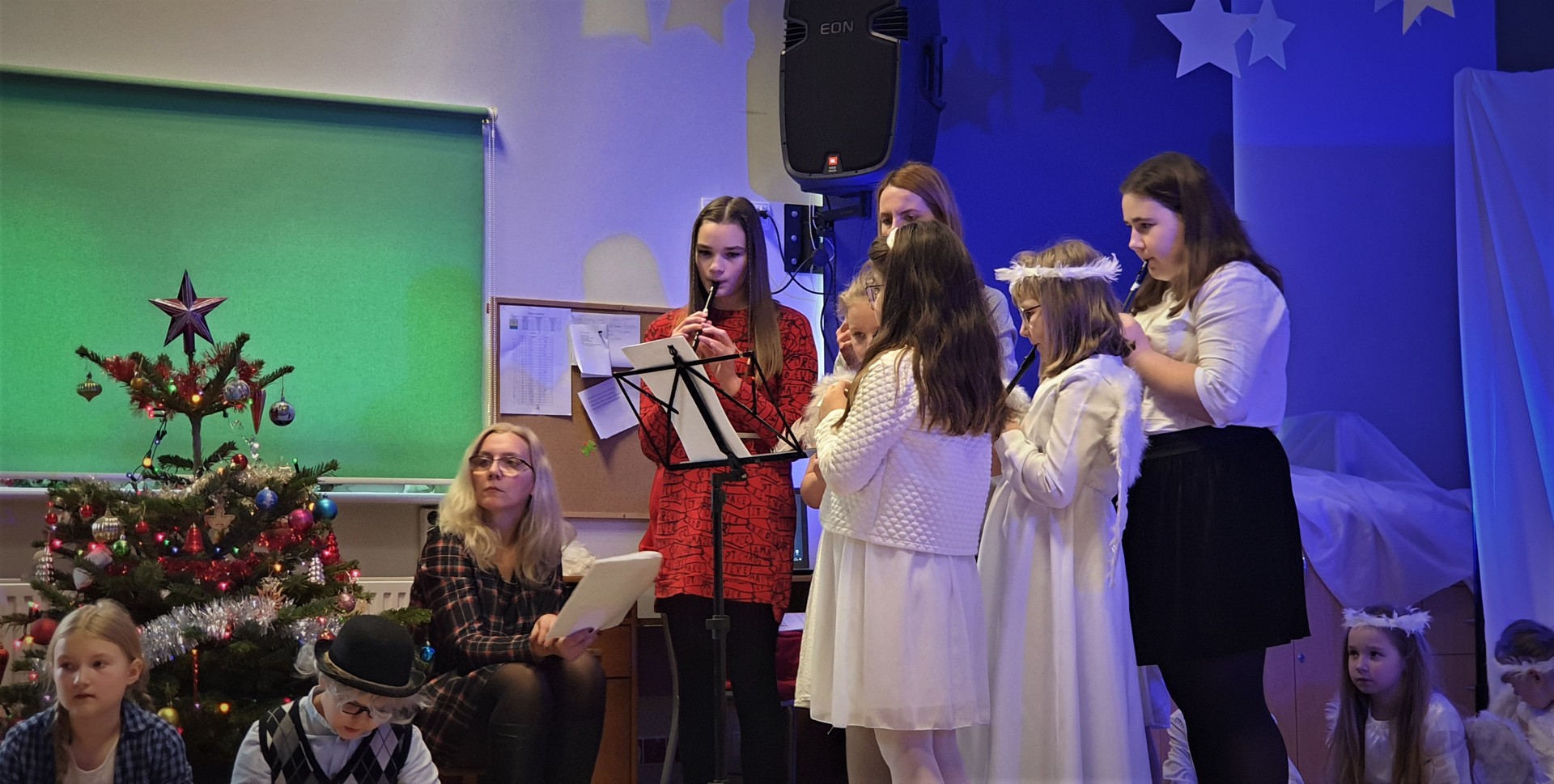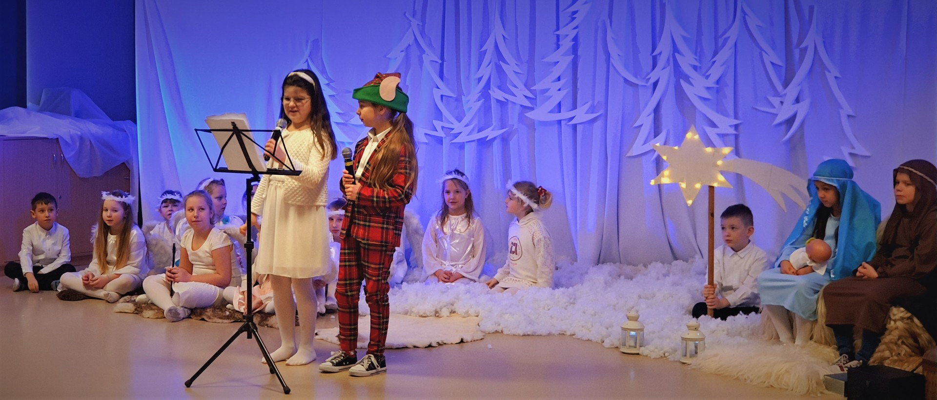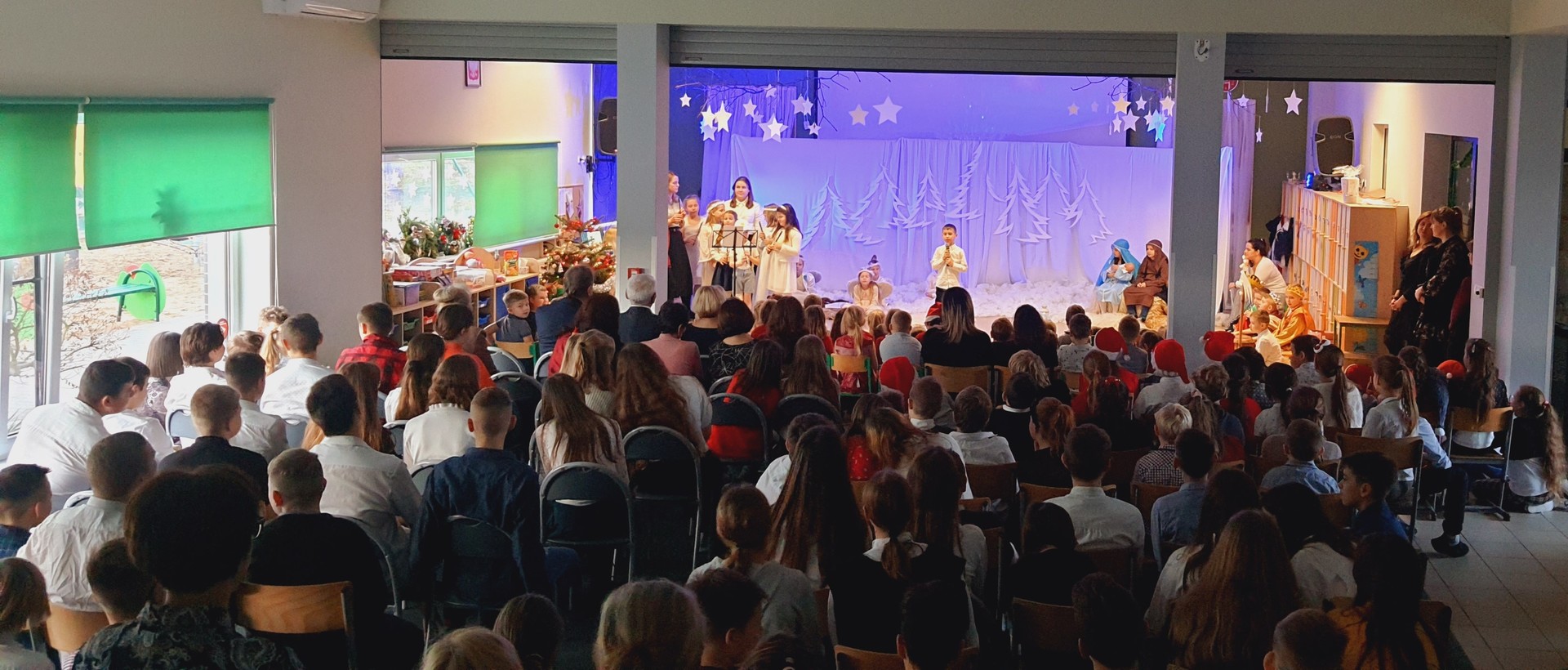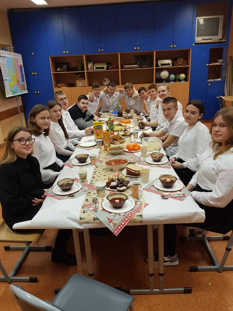 Tradycja musi być! Jak co roku, o tej porze w Boże Narodzenie wprowadziliśmy cudowny świąteczny klimat, piękne stroje i cudowne piosenki! Tak zawsze spędzamy czas w ostatni przedświąteczny dzień w naszej szkole. Były wigilie klasowe, wspólne biesiadowanie przy stole, dzielenie się opłatkiem, składanie sobie życzeń i skromne, piękne prezenty. Dziękujemy bardzo za duże zaangażowanie się rodziców w przygotowanie smakołyków i pomoc Gwiazdorowi w organizację prezentów.