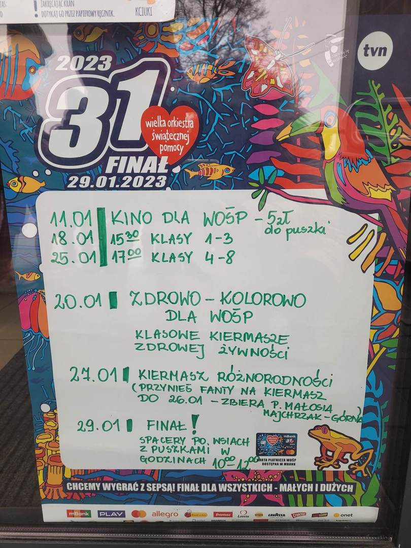 W ramach tegorocznych działań postanowiliśmy, że odbęda się poniższe przedsięwzięcia. Podczas tych spotkań zachęcamy do wsparcia szkolnej, stacjonarnej puszki WOŚP. Jest ona również dostępna codziennie w sekretariacie szkoły.