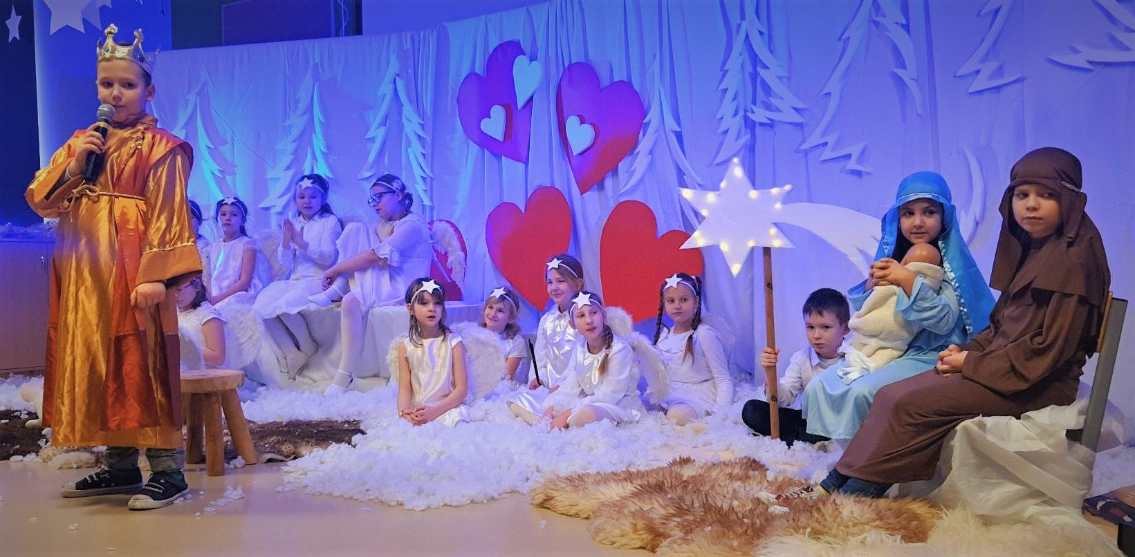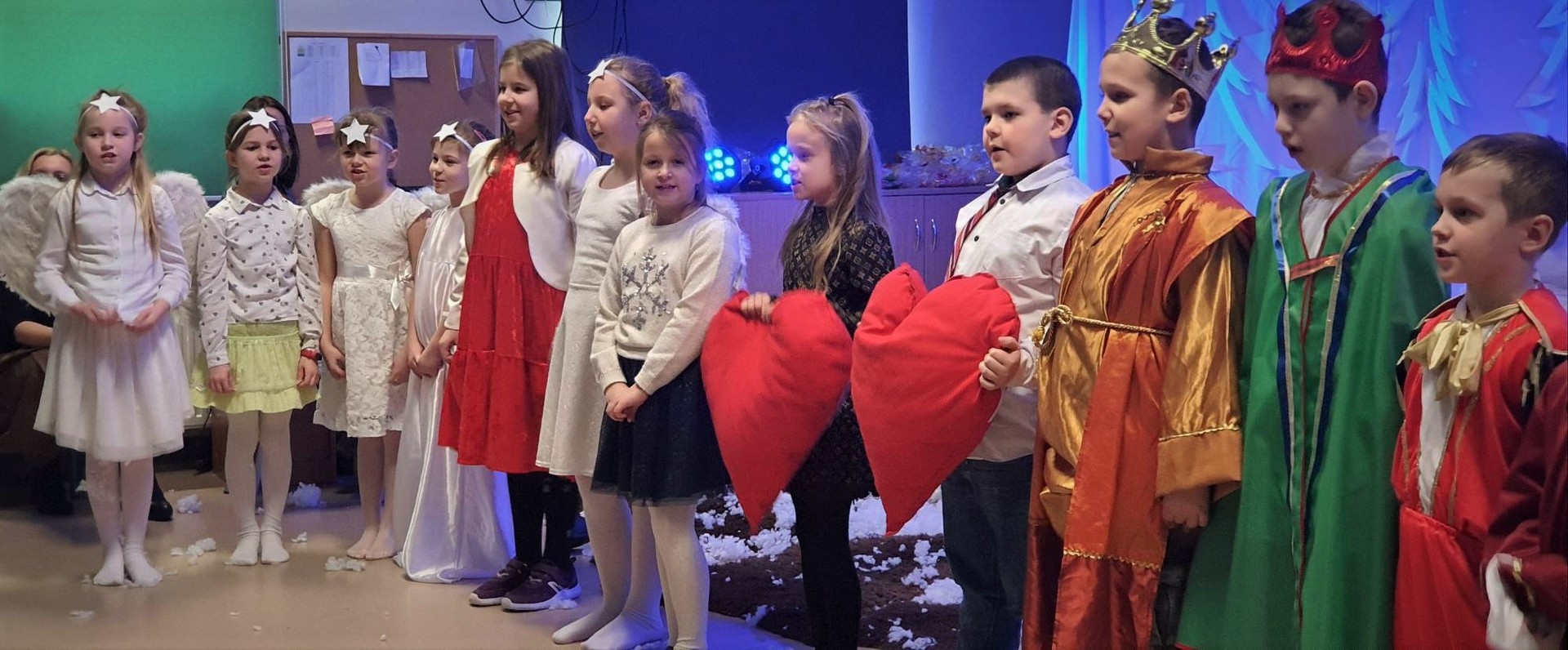 W trakcie uroczystości mili goście mogli podziwiać swoje pociechy w programie artystycznym. Dzieci przedstawiły Jasełka, a później każda klasa złożyła życzenia recytując wiersze i śpiewając piosenkę. Wnuczęta wręczyły również własnoręcznie wykonane upominki swoim kochanym dziadkom. Gościom towarzyszyły radość, uśmiech oraz łzy wzruszenia. Po występach wszyscy zostali zaproszeni na słodki poczęstunek.