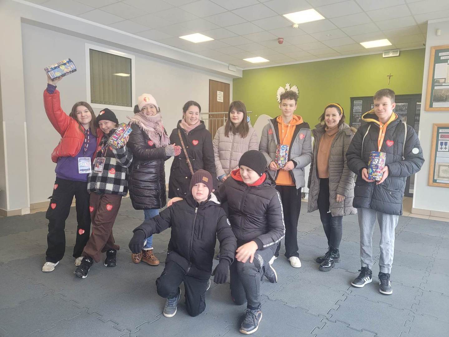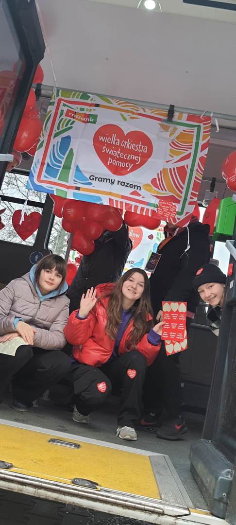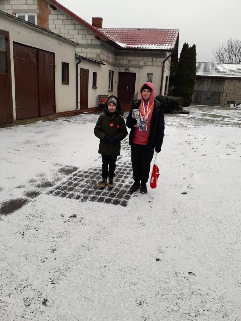 31 edycja finału Wielkiej Orkiestry Świątecznej Pomocy już za nami! Dnia 29 stycznia nasi dzielni wolontariusze (Gabriela Salitra, Aleks Frąckowiak, Wojciech Bukowski, Antoni Hanelik, Maja Mieczyńska, Maksymilian Skrzypczak, Kacper Izychart, Bartosz Łosiewicz, Szymon Kaźmierski, Daria Pude, a także ich dzielni pomocnicy - Agata Kaźmierczak, Szymon Chrzan, Zuzanna Tomczyk, Krzysztof Adamek i Artur Sufleta), wyposażeni w puszki i serduszka, wyruszyli na spacer po wyznaczonych trasach. Mimo padającego śniegu i wietrznej pogody zbierali fundusze na tegoroczny cel jakim była walka z sepsą.