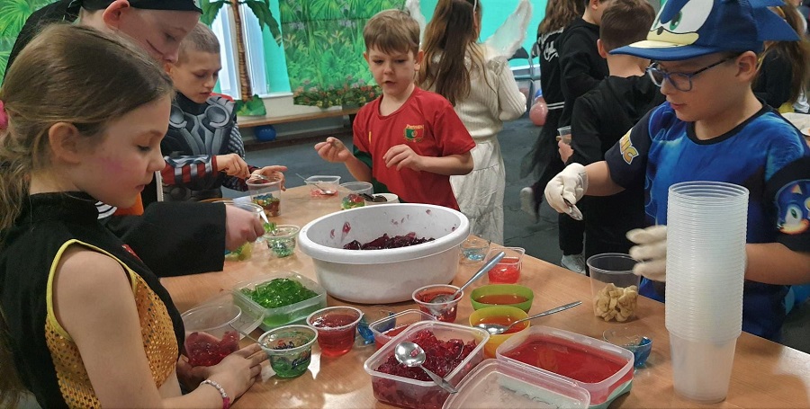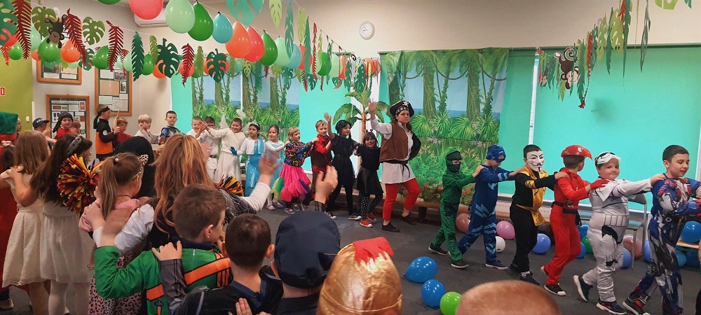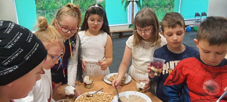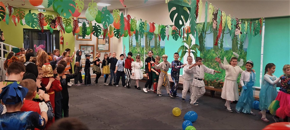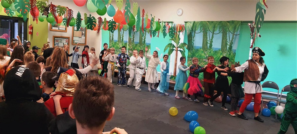 Podkoziołek, czyli tradycyjna zabawa na zakończenie karnawału - to tradycja w każdej szkole! Również w naszej odbył się kolorowy bal przebierańców. Piękne, pomysłowe stroje, bohaterowie bajek, cudowne zwierzęta, księżniczki i wiele innych postaci zawitało na zabawie, która w tym roku przybrała kolory dżungli. Były tańce, zabawy a nawet kolorowe, smaczne warsztaty kulinarne, podczas których wykonaliśmy i spałaszowaliśmy mega desery. Dziś wybawieni wracamy już wspomnieniami, dzięki zdjęciom które zamieszczamy na stronie :)