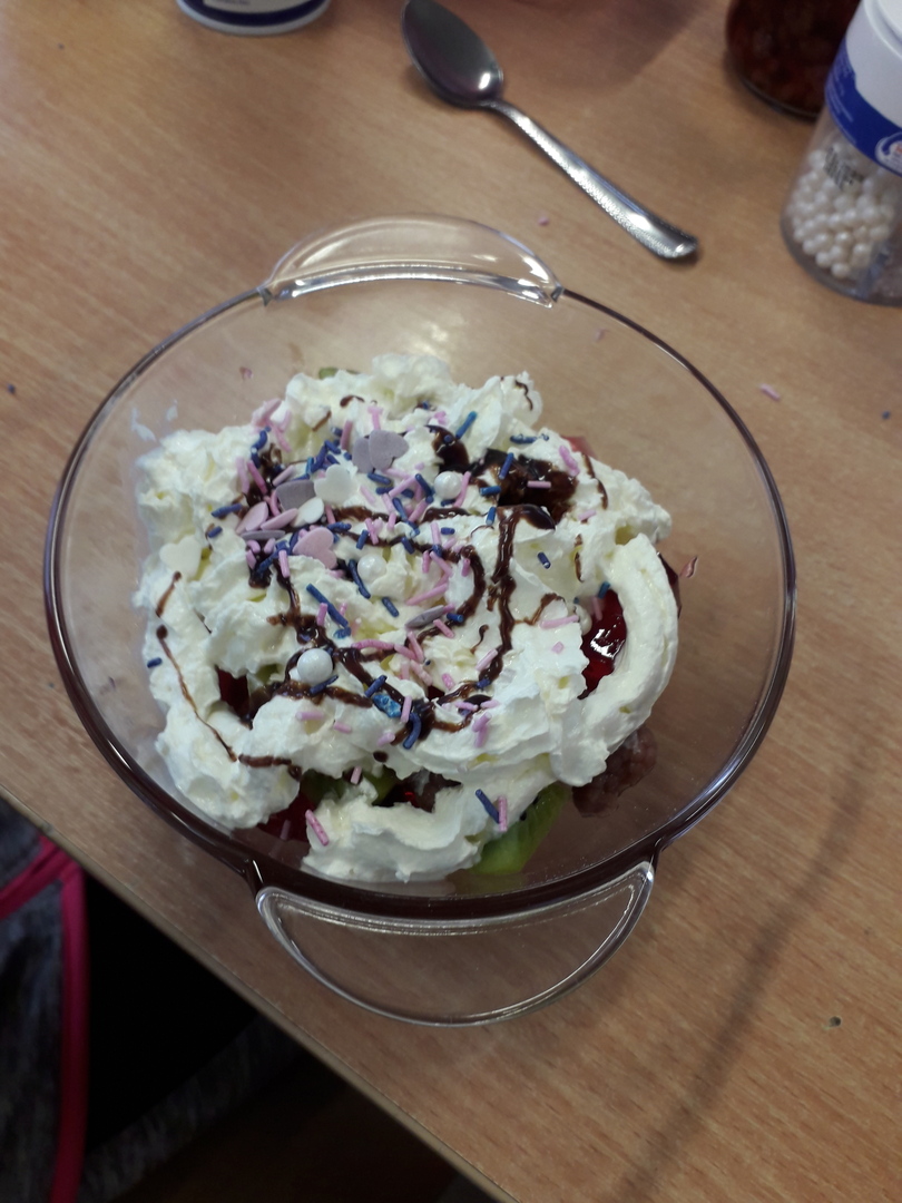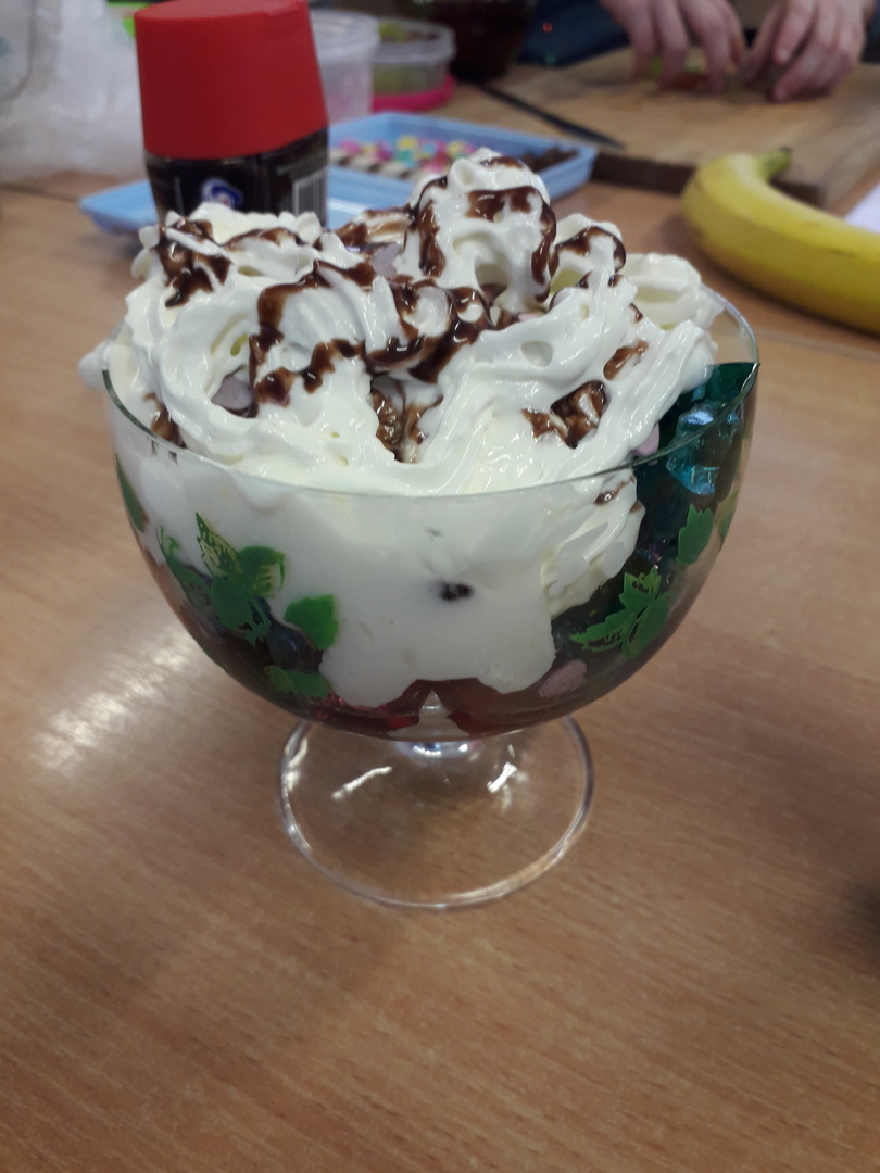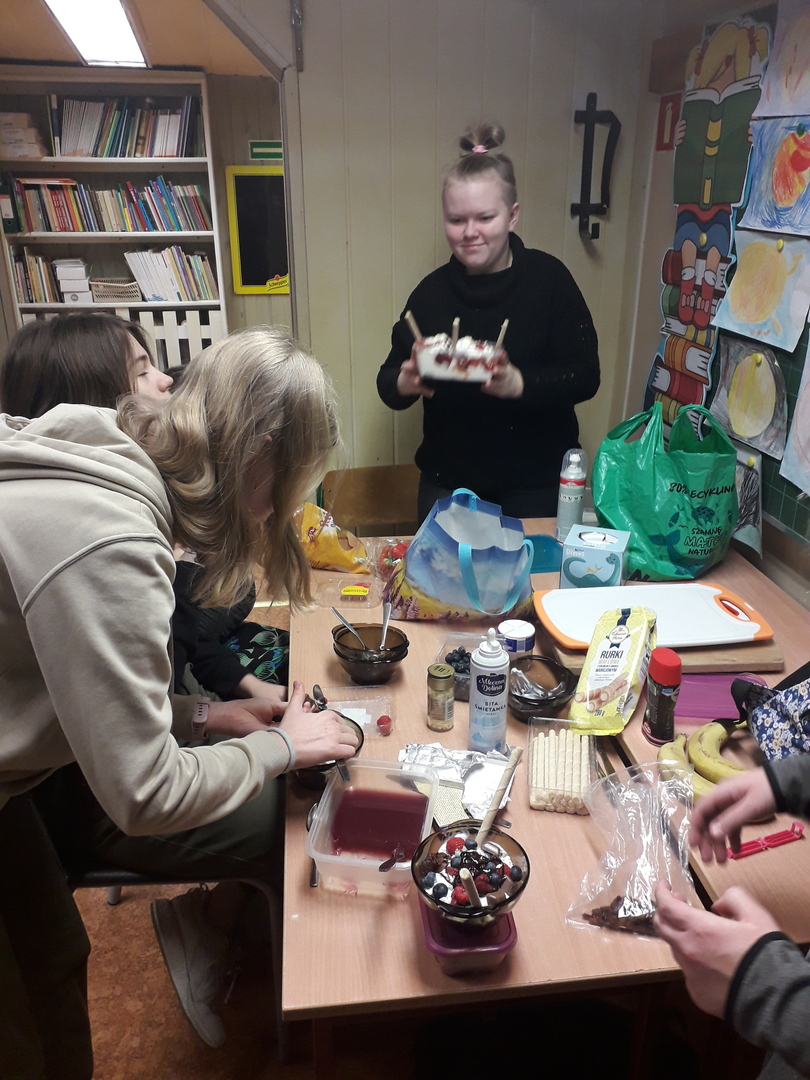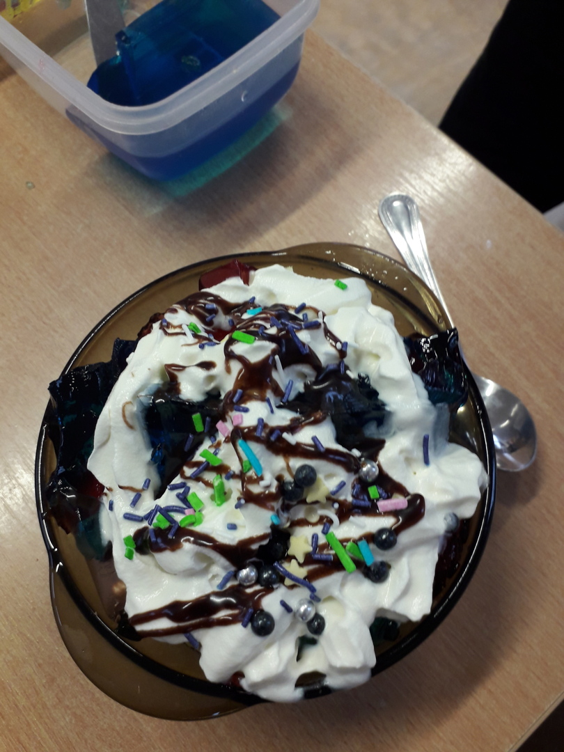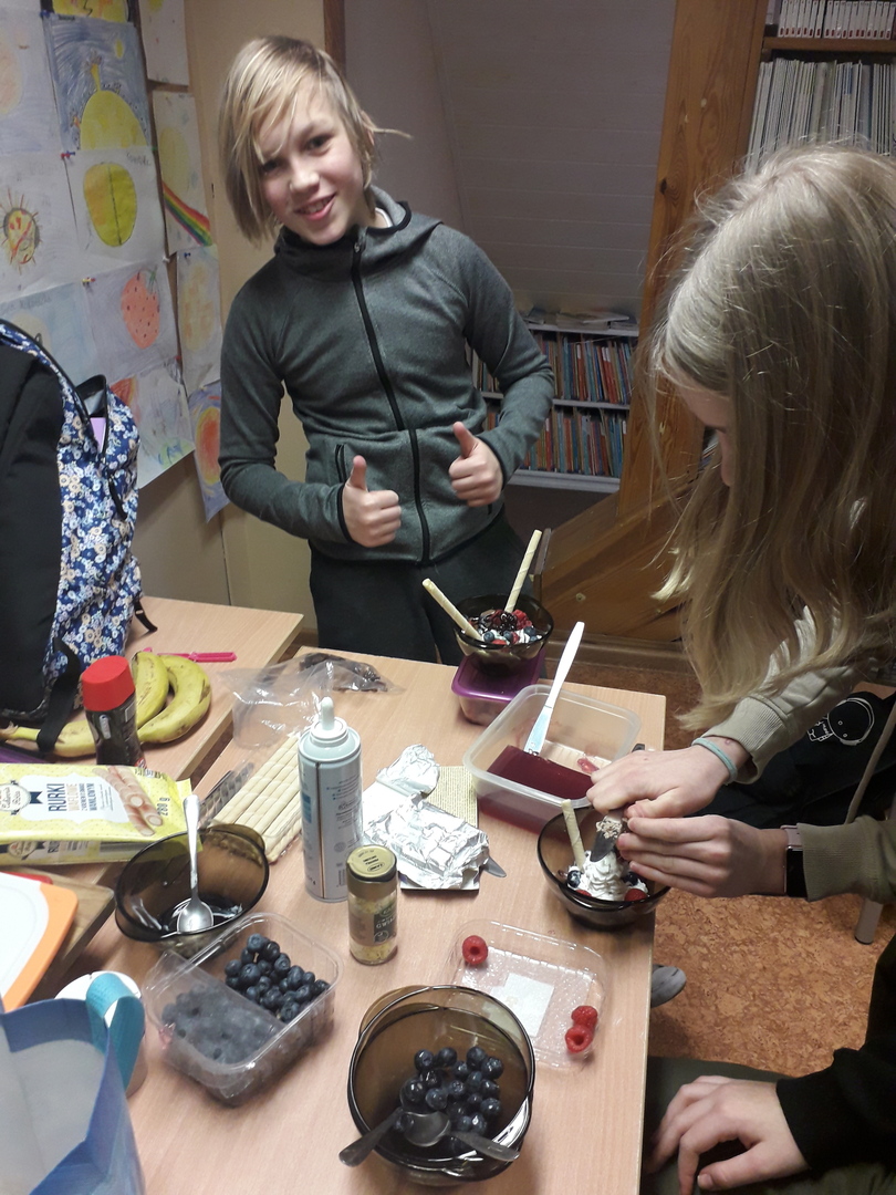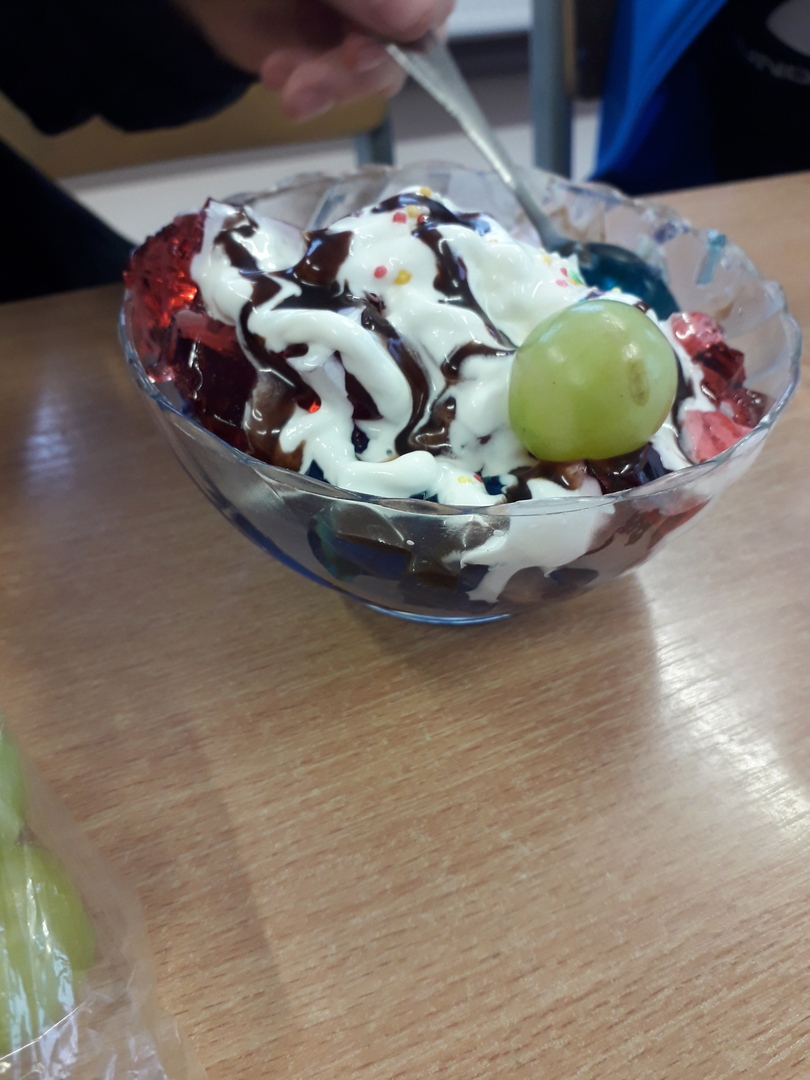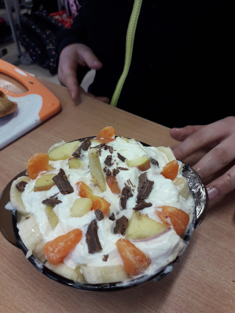 W ramach zjęć świetlicowych staramy się rozwijać zainteresowania naszych podopiecznych. W środy dzieci uczestniczą w warsztatach z robotyki, zaś w czwartki rozwijamy nasze pasje kulinarne oraz bawimy się gwarą poznańską. Były już pyszne tortille, hot-dogi, sandwiche czy pizza. Natomiast, w tym tygodniu chętni uczniowie pobawili się w cukierników robiąc przepyszne desery. Poza deserami owocowymi pojawiła się niezliczona ilość galaretki oraz bitej śmietany. Po kalorycznym posiłku czekał nas spacer po okolicy i zabawy na boisku szkolnym.