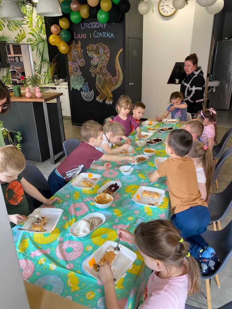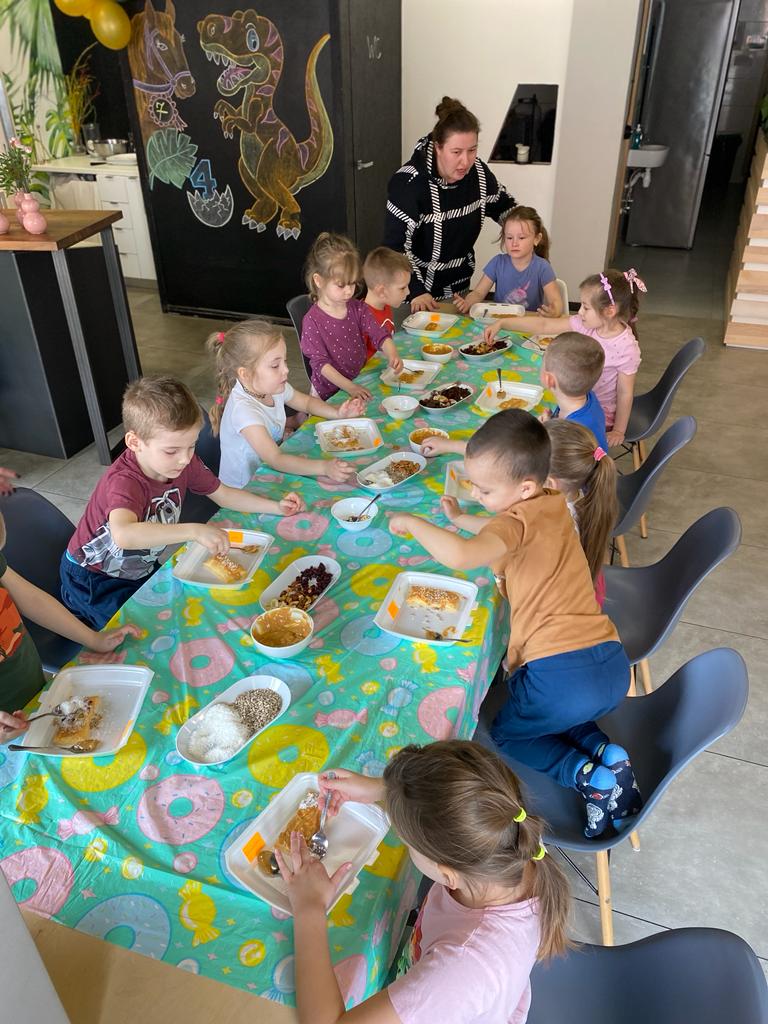 Dnia 20 marca przedszkolaki z grupy 5 i 6 – latków wybrały się na wycieczkę do sali zabaw oraz kina w Szamotułach. Na dzieci czekało wiele atrakcji: baseny z kulkami, labirynty z przeszkodami oraz zjeżdżalnie. Podczas pobytu w bawialni odbyły się również warsztaty wielkanocne, podczas których dzieci poznały polskie tradycje wielkanocne i samodzielnie dekorowały mazurki. Po dwóch godzinach zabawy, spacerkiem wybraliśmy się do kina. Dzieci miały okazję obejrzeć film animowany „Wróżka Zębuszka". Nudy w kinie nie było - dzieci były zachwycone ! Nasz radosny pobyt bardzo szybko dobiegł końca. Pełni niezapomnianych wrażeń i emocji wróciliśmy do przedszkola. Przedszkolaki nie mogą się już doczekać kolejnej wycieczki :)