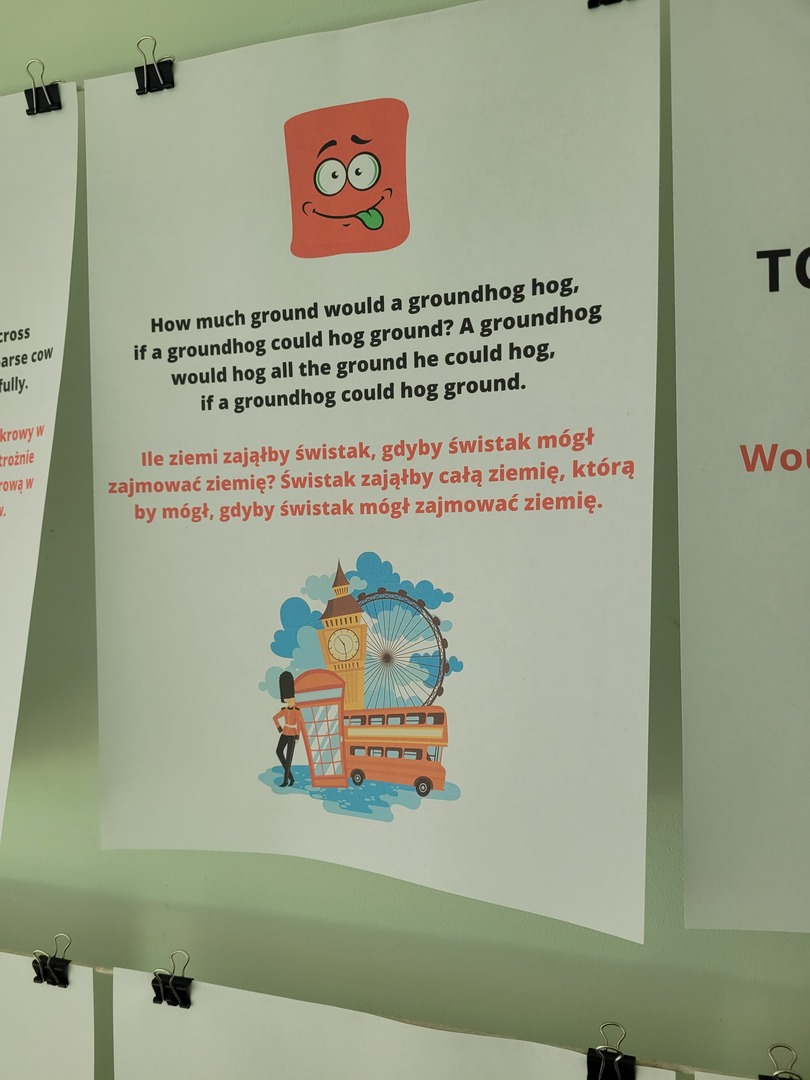 Za nami LONDON WEEK! Wydarzenie edukacyjne, którego organizatorem było DIDACTO – marka edukacyjna zajmująca się organizacją ogólnopolskich projektów i wydarzeń językowych, miało na celu przybliżenie faktów związanych z Londynem i jego niezwykłymi miejscami. W szkole pojawiła się wystawa zatytułowana „Londyn jakiego nie znacie”, która zawierała kody QR, dzięki którym uczniowie mogli nie tylko usłyszeć ciekawostki związane z tym pięknym miastem, ale również zobaczyć interesujące miejsca i budowle. Uczniowie klas starszych i młodszych brali udział w warsztatach Do It Yourself, podczas których wykonywali ciekawe grafiki związane z Londynem wyklejone obrazkami z symbolami Londynu. Chętni uczniowie klas starszych mogli wziąć udział w Quizie wiedzy o Londynie oraz zdobyć dyplom za zajęcie I, II oraz III miejsca. Ponad to, w środę podczas dużej przerwy uczniowie mogli posmakować angielskiej herbaty z mlekiem – czym bowiem byłby LONDON WEEK bez „tea time”! W czwartek i piątek na szkolnym korytarzu czekało na uczniów ciekawe wyzwanie – połamańce językowe, czyli angielskie „tongue twisters”. Ciekawe ilu uczniów podjęło się tego wyzwania? Mamy nadzieję, że języki zbytnio na tym nie ucierpiały 😉 Dziękujemy wszystkim uczniom za udział w projekcie edukacyjnym – mamy nadzieję, że bawiliście się tak dobrze jak my!