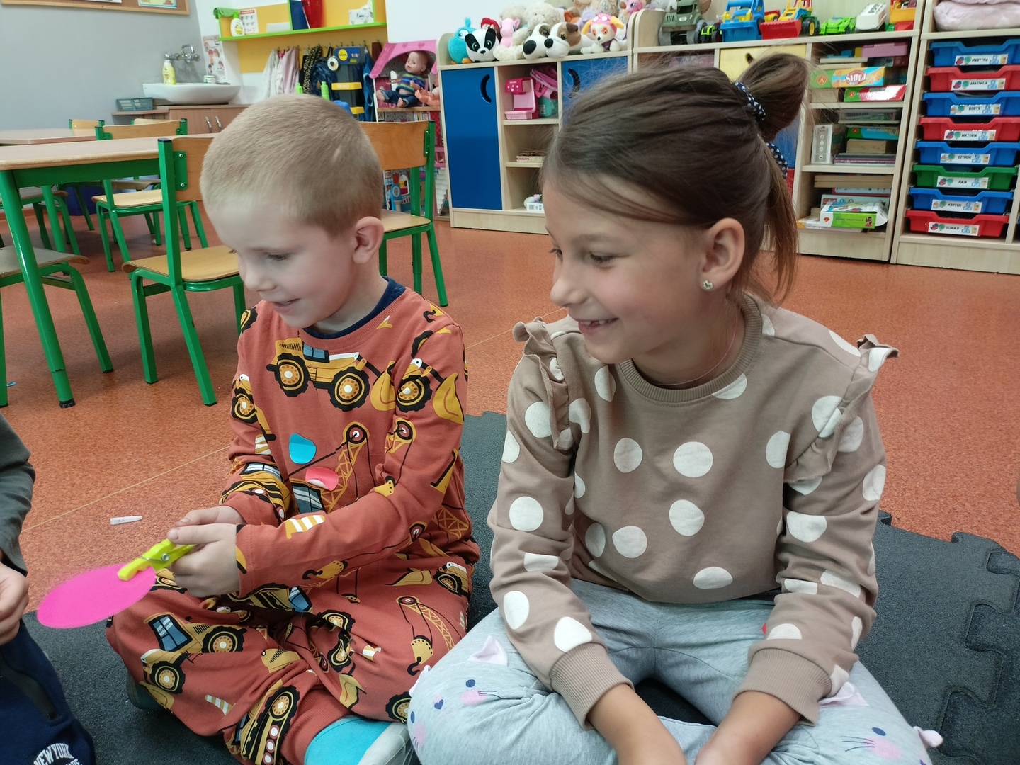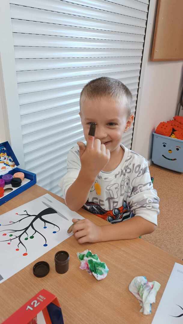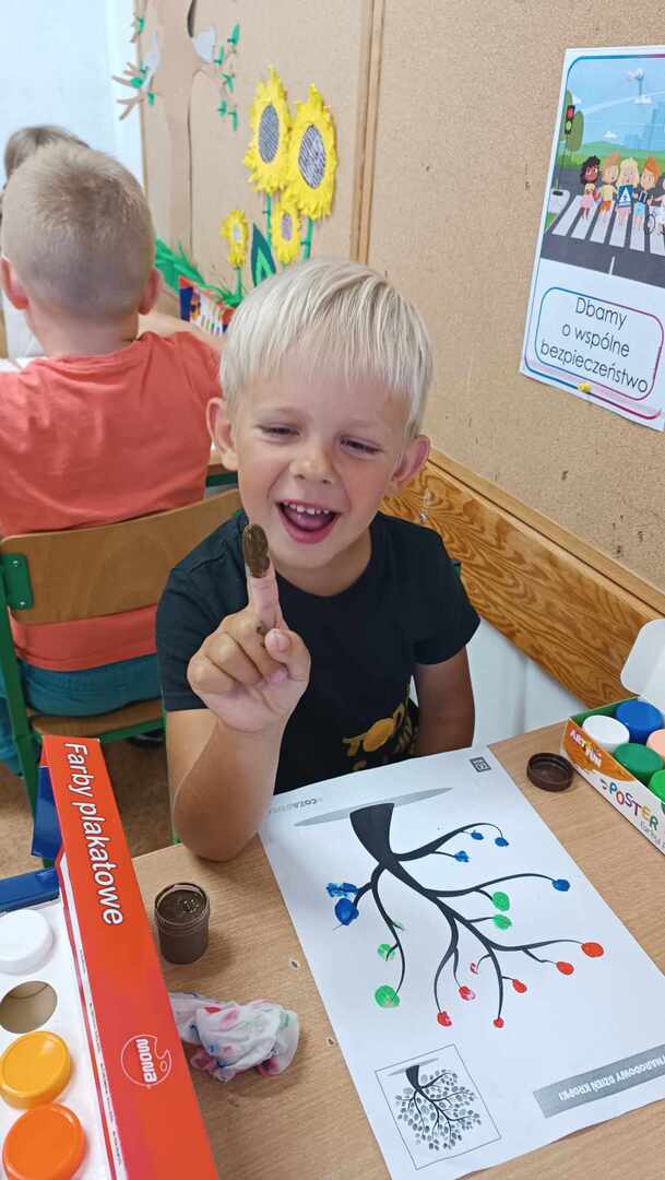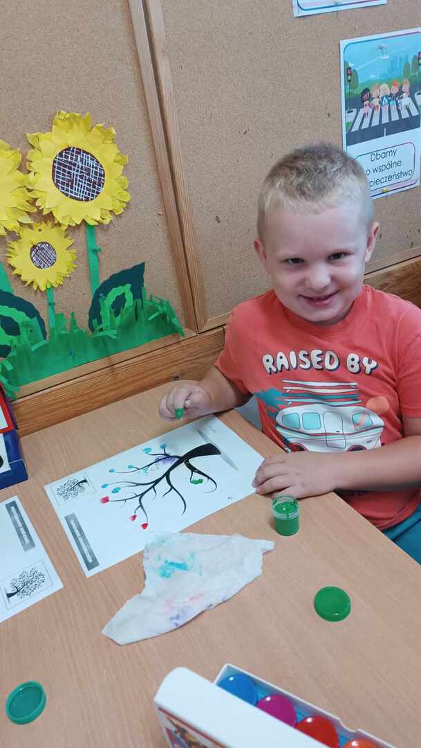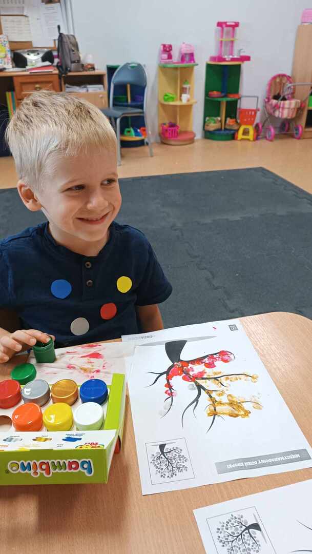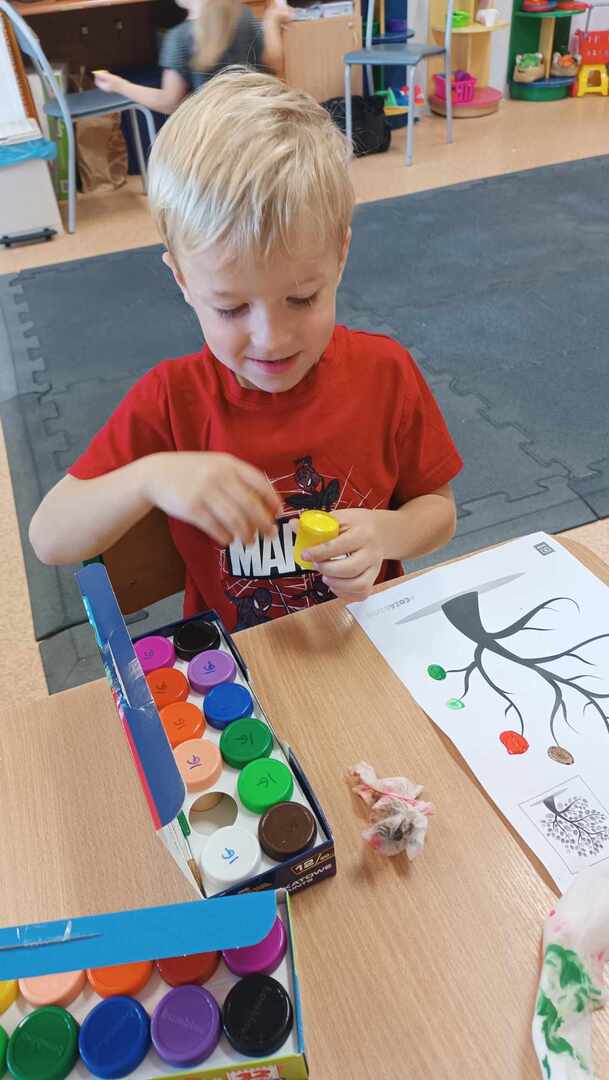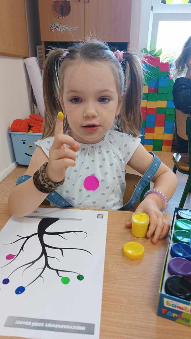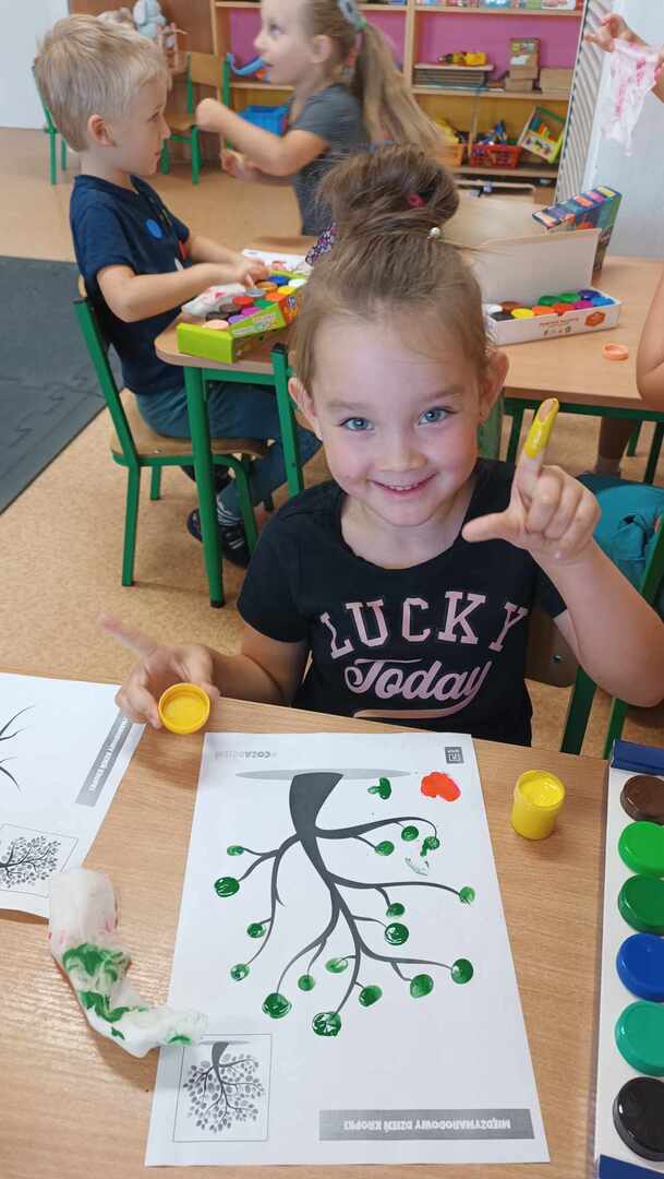 Zajęcia zaczęliśmy od „Opowieści o Małej Kropce”. Bawiliśmy się w podawanie kropki, wyklejaliśmy plasteliną, malowaliśmy paluszkami, przeliczaliśmy itd. Wszystkie podejmowane działania i zabawy miały za zadanie pomóc dzieciom odkryć swoje talenty. Przedszkolaki przekonały się również, że prawdziwym artystą można się stać dzięki jednej małej kropce.
