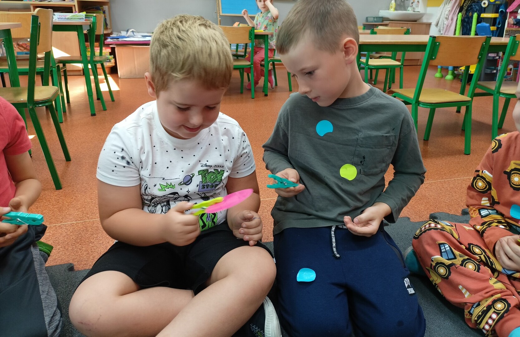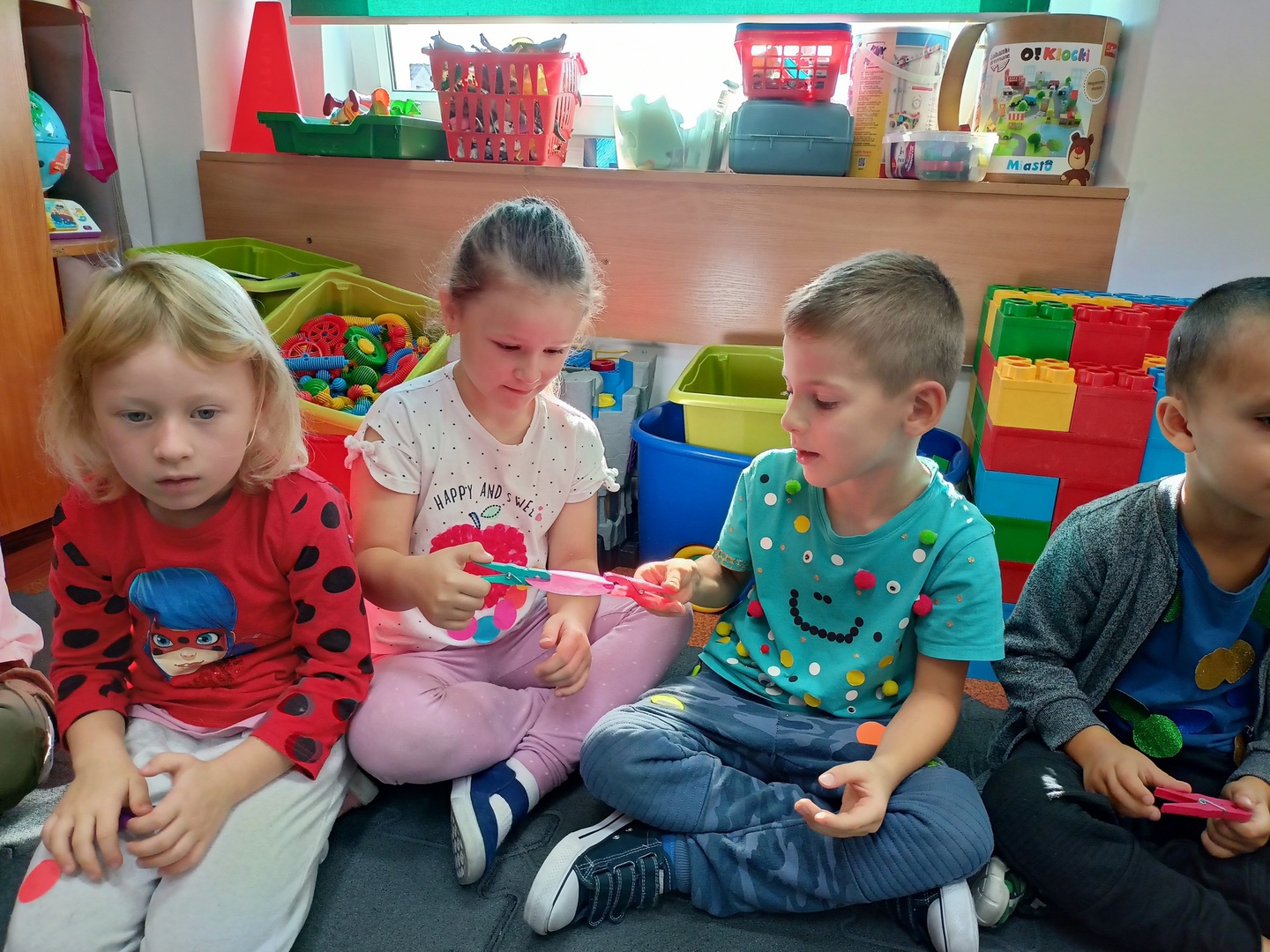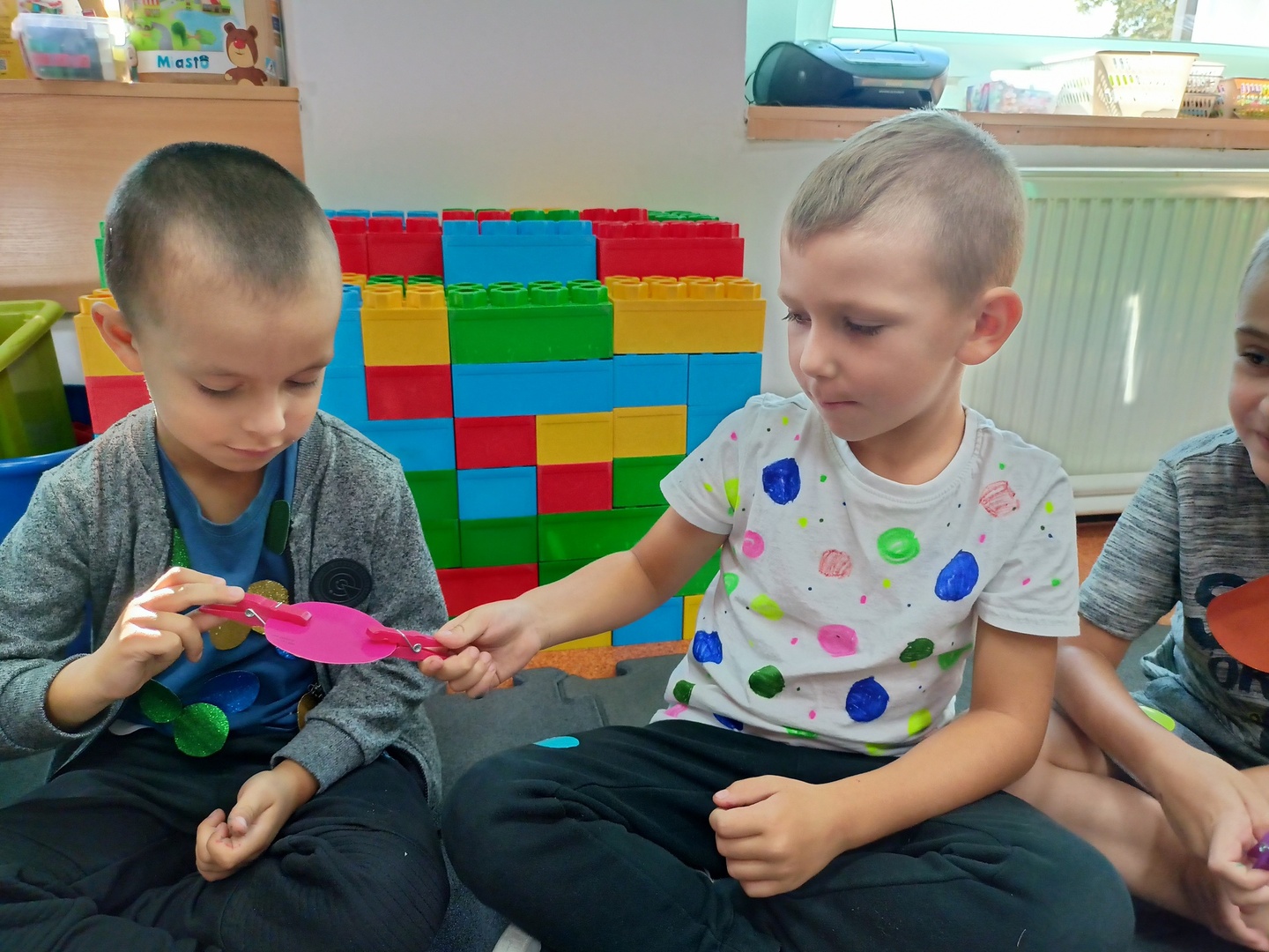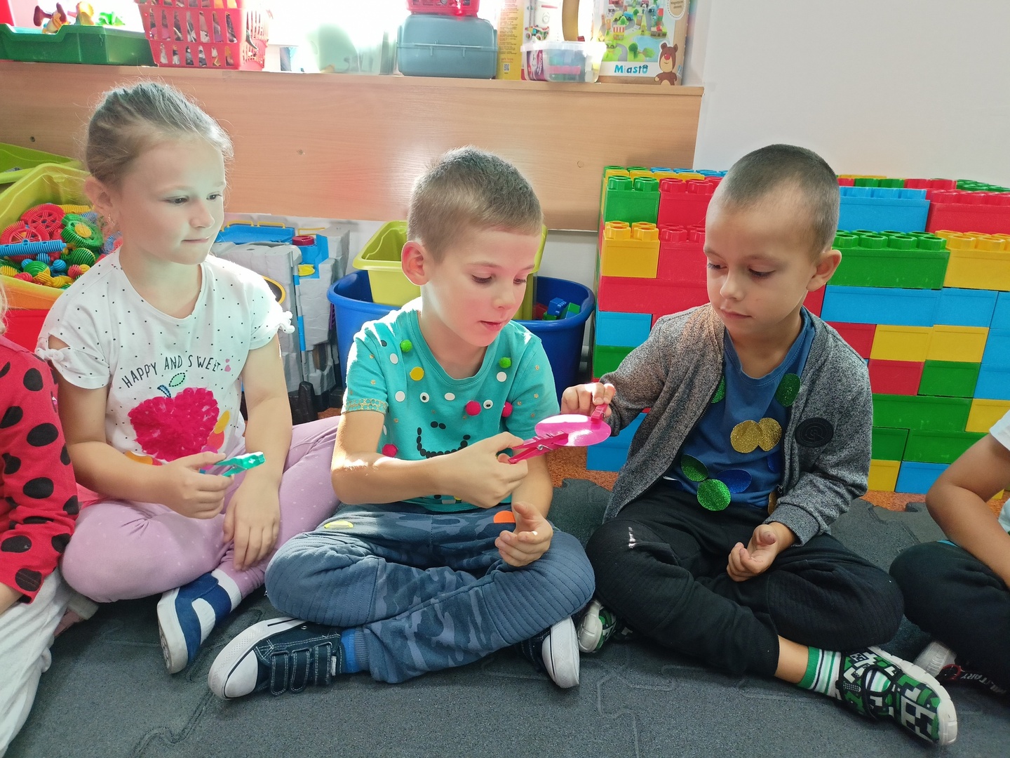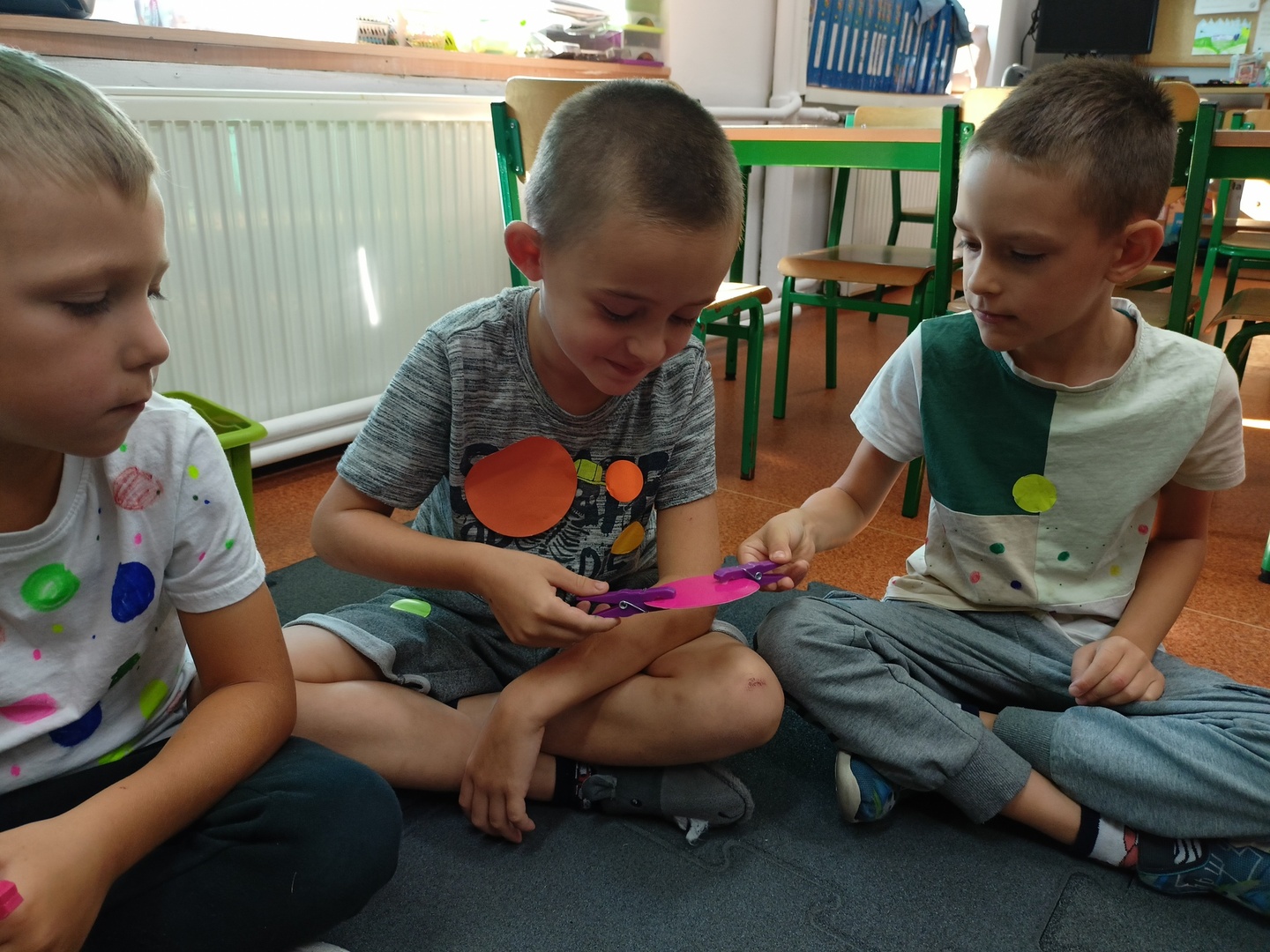 Zajęcia zaczęliśmy od „Opowieści o Małej Kropce”. Bawiliśmy się w podawanie kropki, wyklejaliśmy plasteliną, malowaliśmy paluszkami, przeliczaliśmy itd. Wszystkie podejmowane działania i zabawy miały za zadanie pomóc dzieciom odkryć swoje talenty. Przedszkolaki przekonały się również, że prawdziwym artystą można się stać dzięki jednej małej kropce.