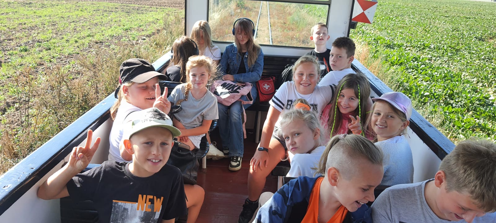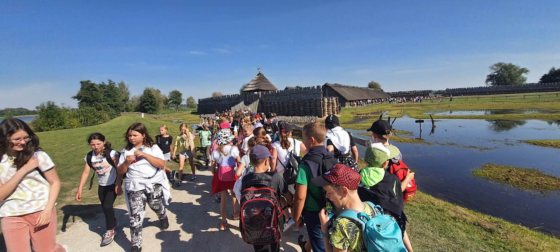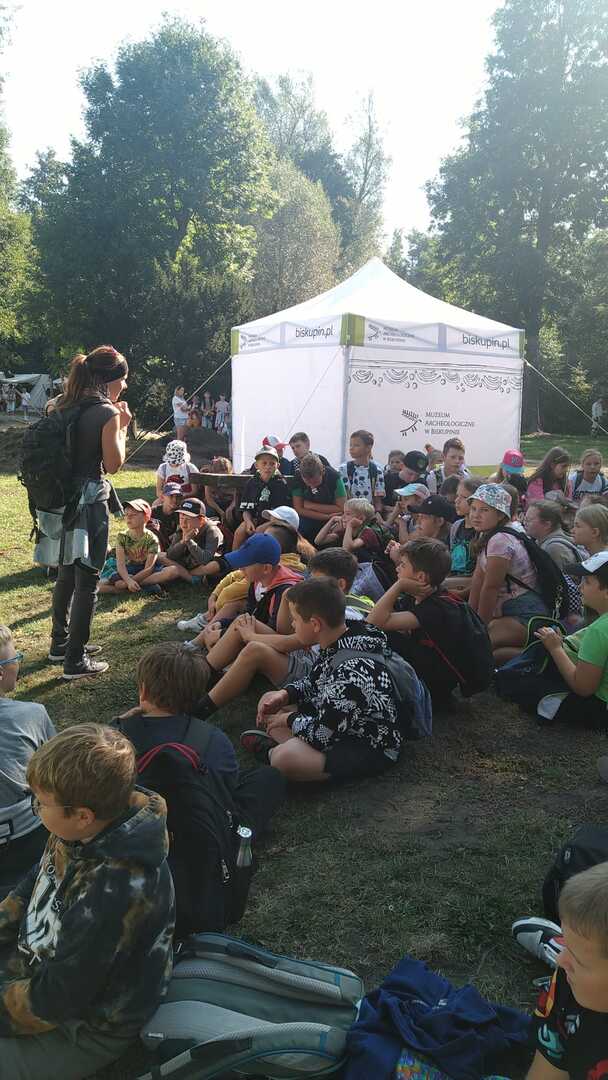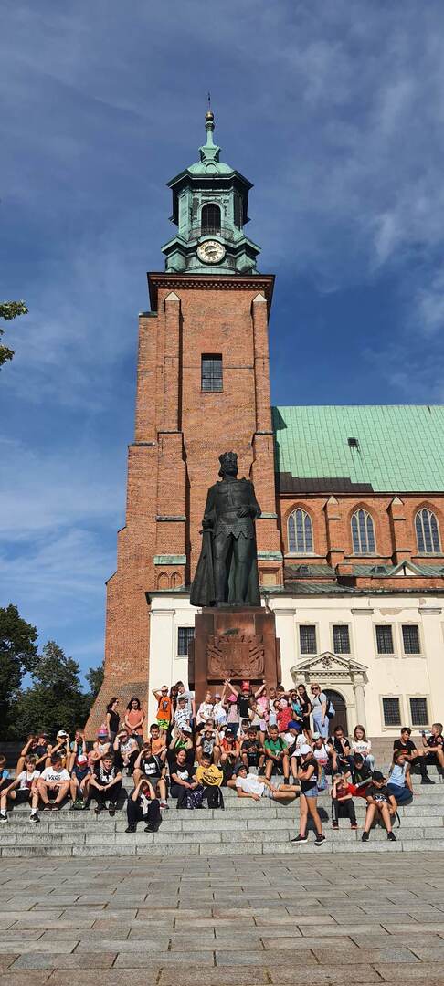 18 września, korzystając z okazji organizowanego w Biskupinie Festynu Archeologicznego, klasy III-VI zwiedziły część szlaku piastowskiego. Swoją przygodę rozpoczęliśmy od podróży kolejką wąskotorową z Gąsawy do Biskupina. Piękna pogoda pozwoliła nam podziwiać cudowne widoki. Biskupin powitał nas niesamowicie dużą ilością odwiedzających wycieczek. Mimo to udało nam się poznać spory kawałek historii początków państwa polskiego. Liczne warsztaty, pokazy, spotkania edukacyjne i kramy przybliżyły nam czasy tworzenia się na naszych terenach struktur plemiennych i państwowych. Po zwiedzeniu Biskupina ruszyliśmy do Gniezna, czyli pierwszej stolicy Polski. Poznaliśmy wzgórze Wojciecha z piękną katedrą gnieźnieńską /cudownym zabytkiem jakim są drzwi gnieźnieńskie/ i jej historią. To dobry poczatek naszych wycieczkowych przygód w tym roku szkolnym.