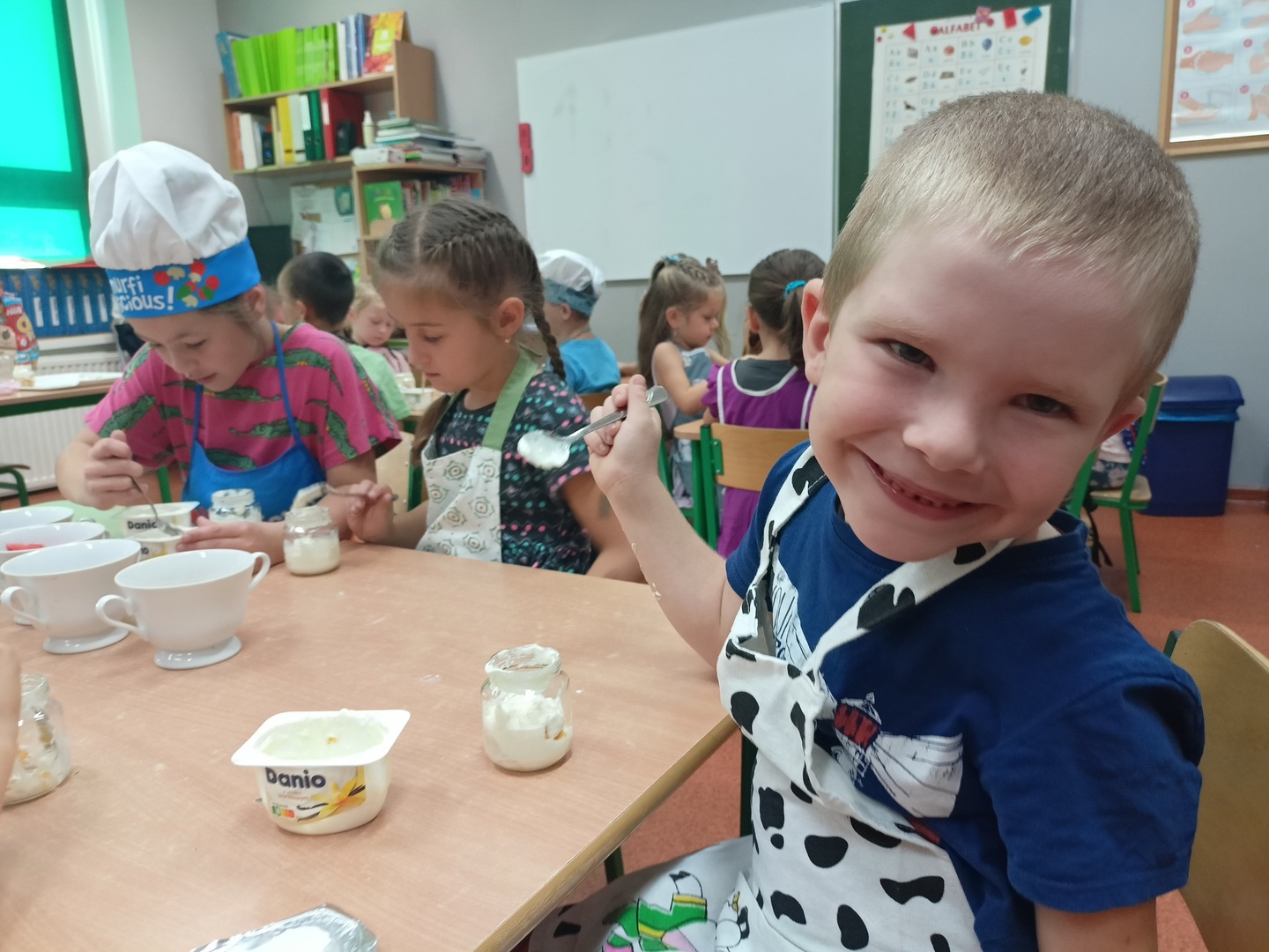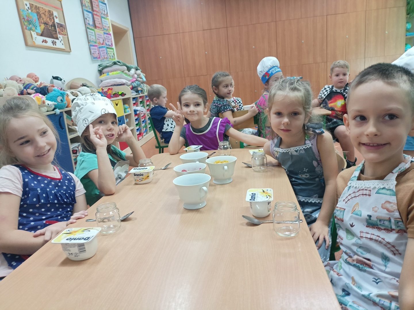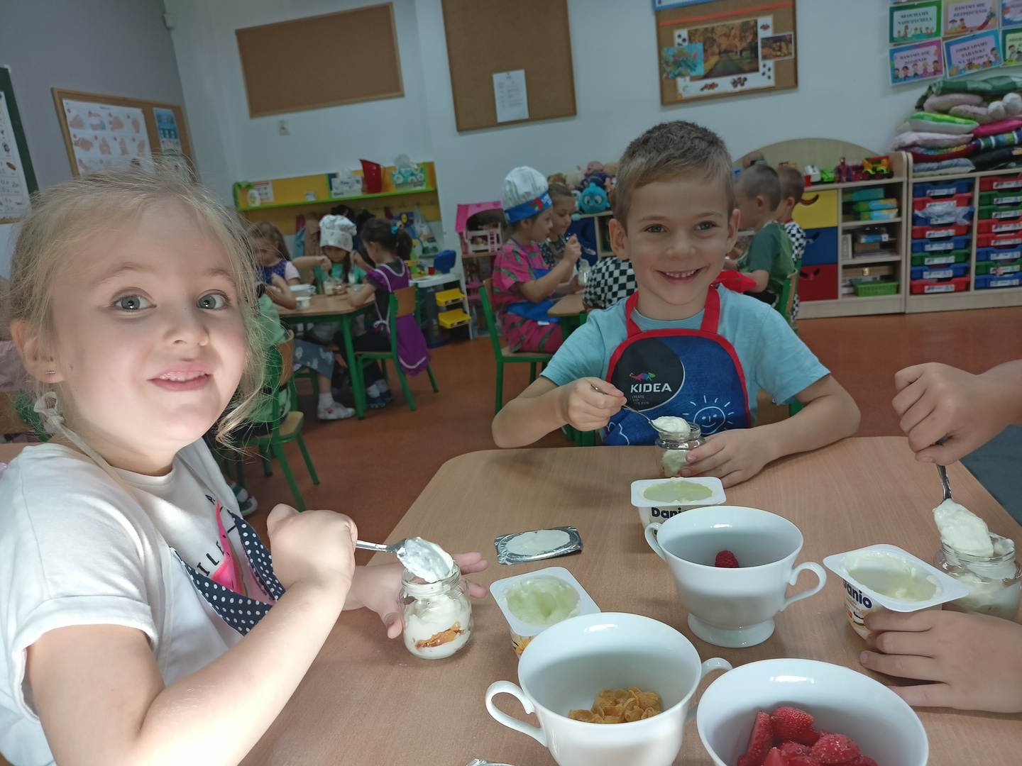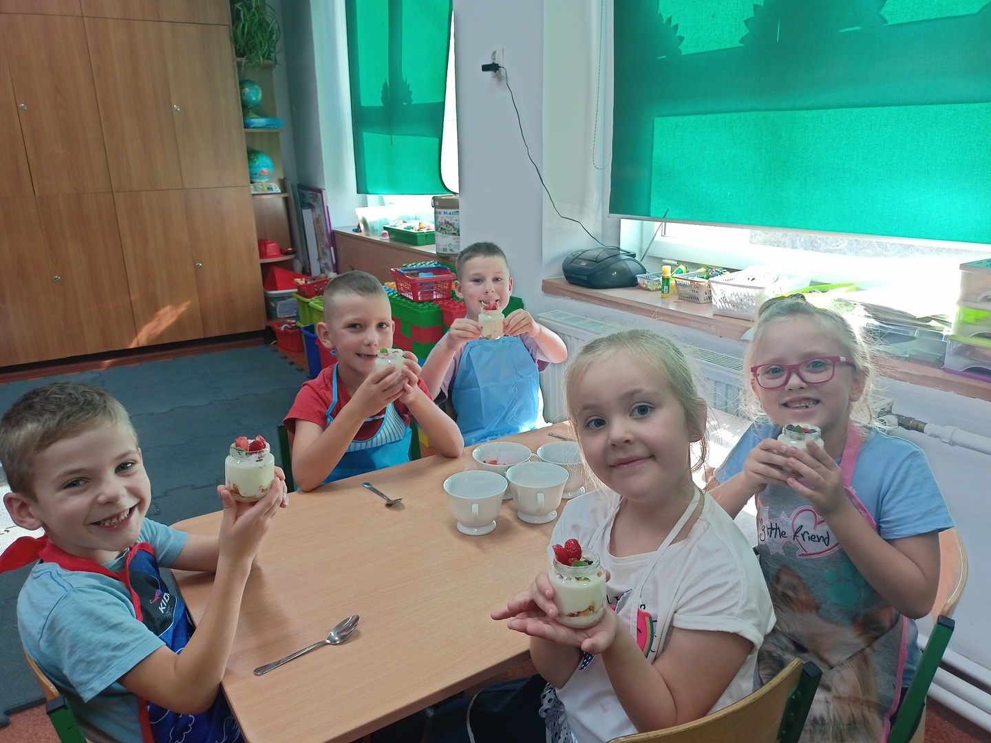 W tym roku szkolnym w naszym przedszkolu grupa 6-latków realizuje projekt kulinarny „Kuchcikowo”. W zeszłym tygodniu zaczęliśmy od zdrowych deserków. Oprócz serka danio wśród składników znalazły się płatki kukurydziane, truskawki, borówki, malinki i liście świeżej mięty. Po chwili po deserkach nie było śladu…Zapraszamy do albumu J