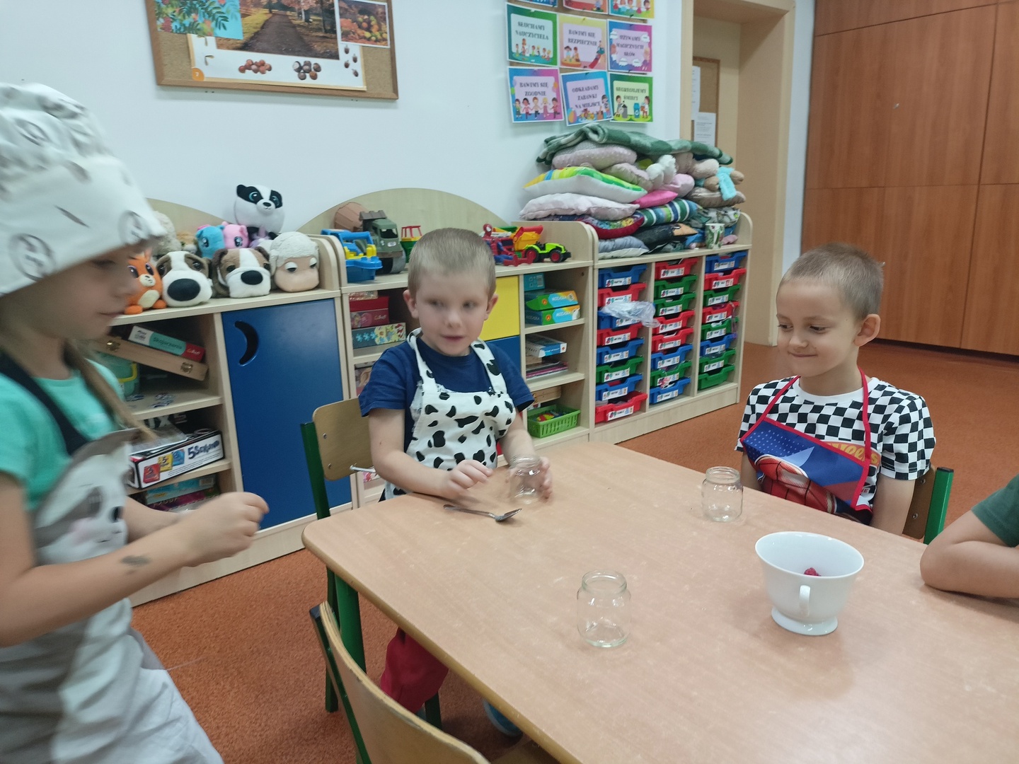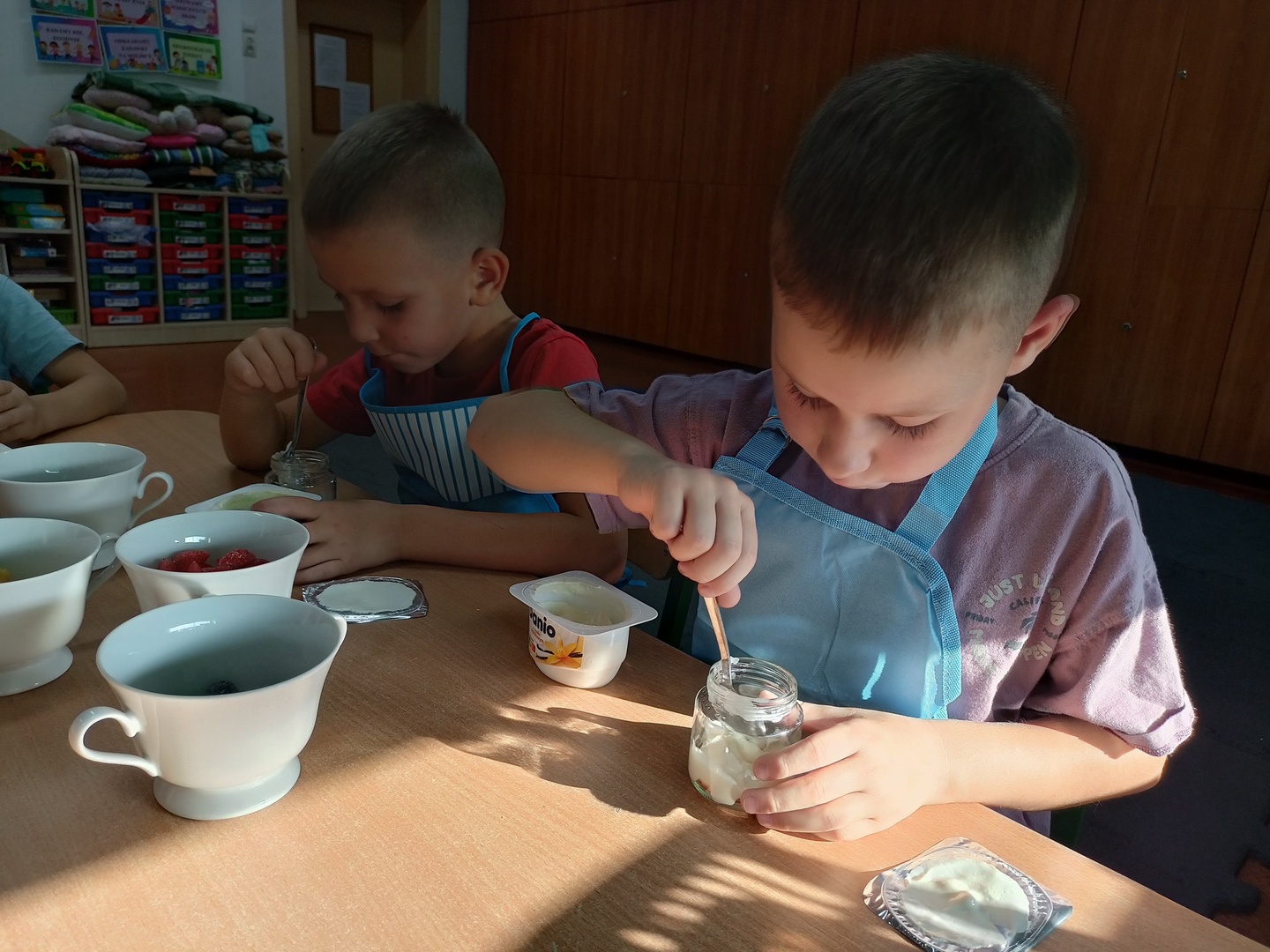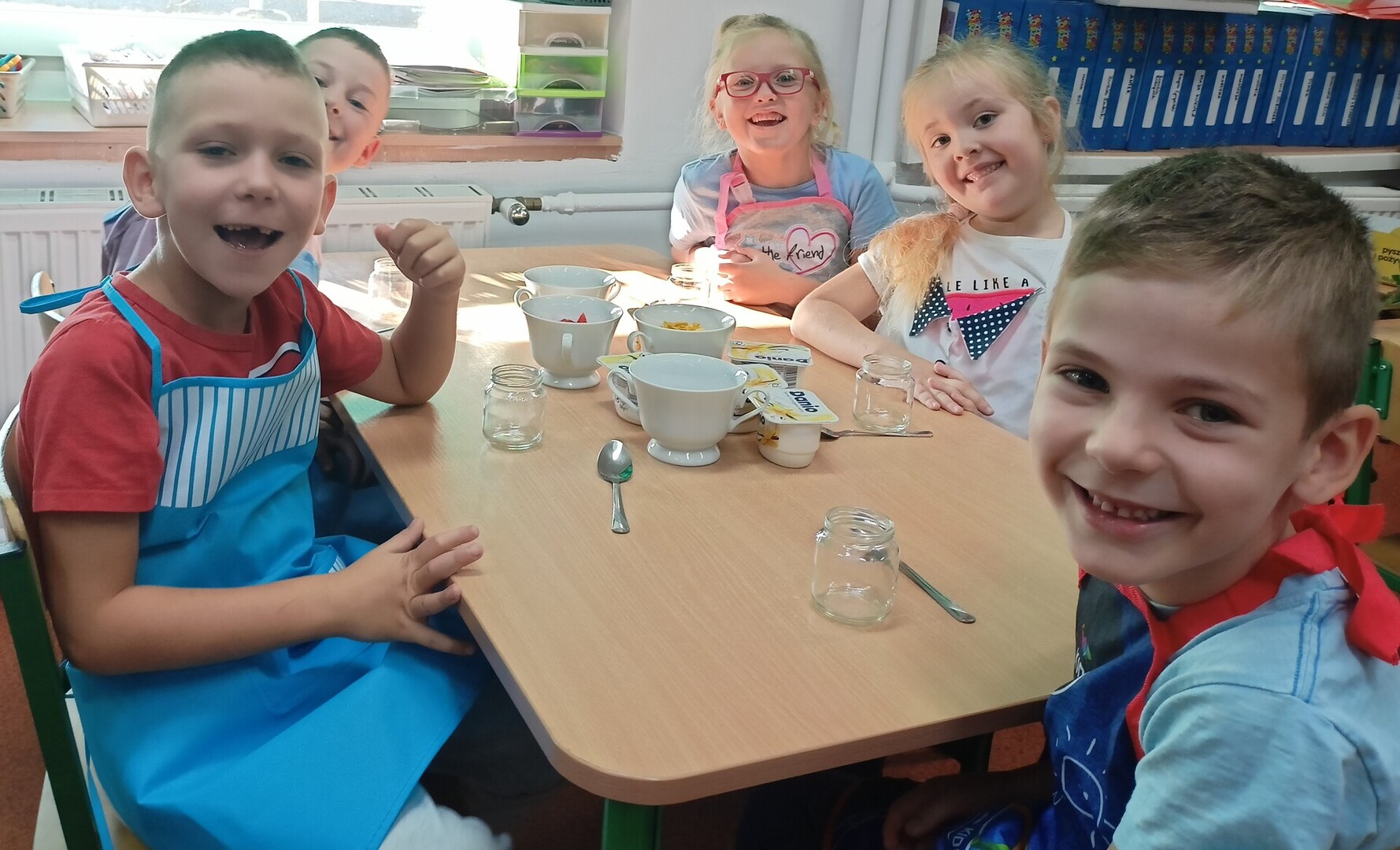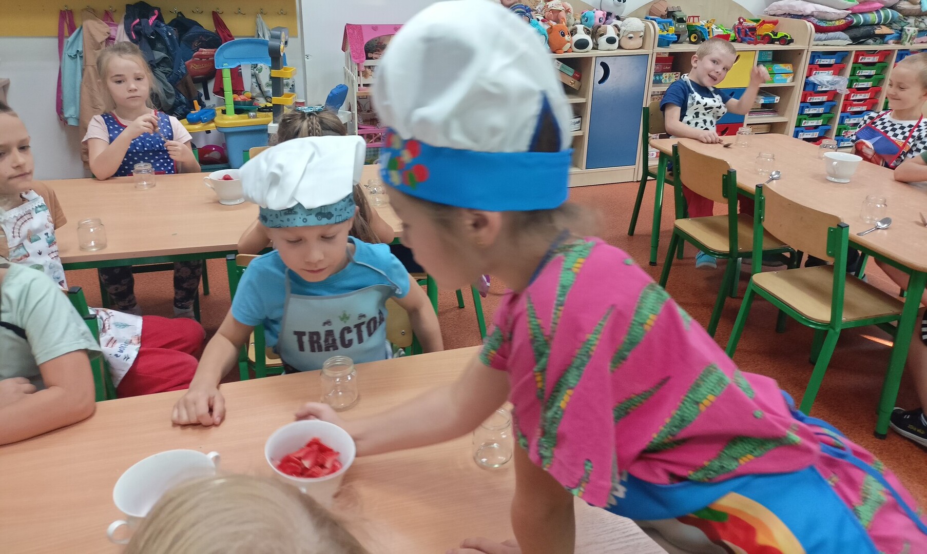 W tym roku szkolnym w naszym przedszkolu grupa 6-latków realizuje projekt kulinarny „Kuchcikowo”. W zeszłym tygodniu zaczęliśmy od zdrowych deserków. Oprócz serka danio wśród składników znalazły się płatki kukurydziane, truskawki, borówki, malinki i liście świeżej mięty. Po chwili po deserkach nie było śladu…Zapraszamy do albumu J
