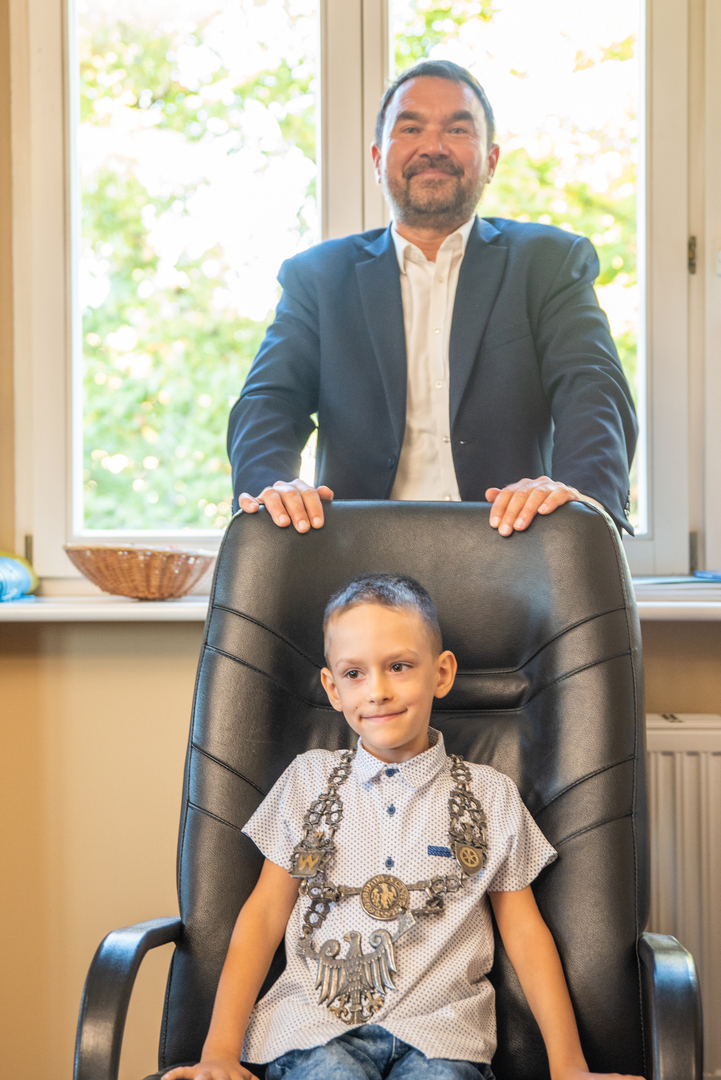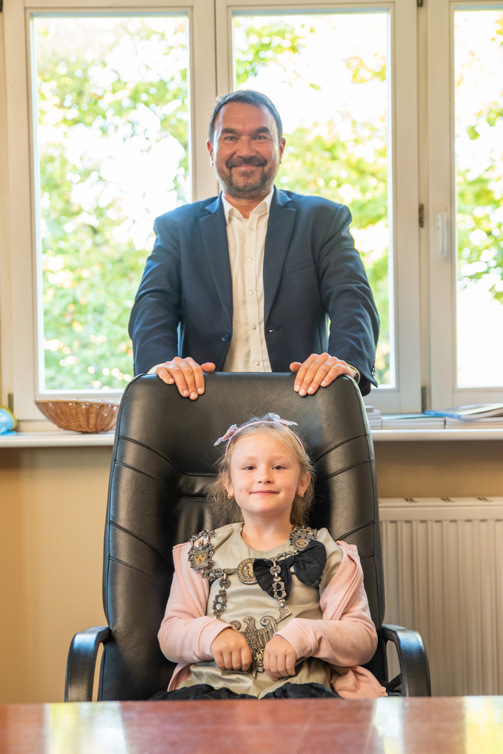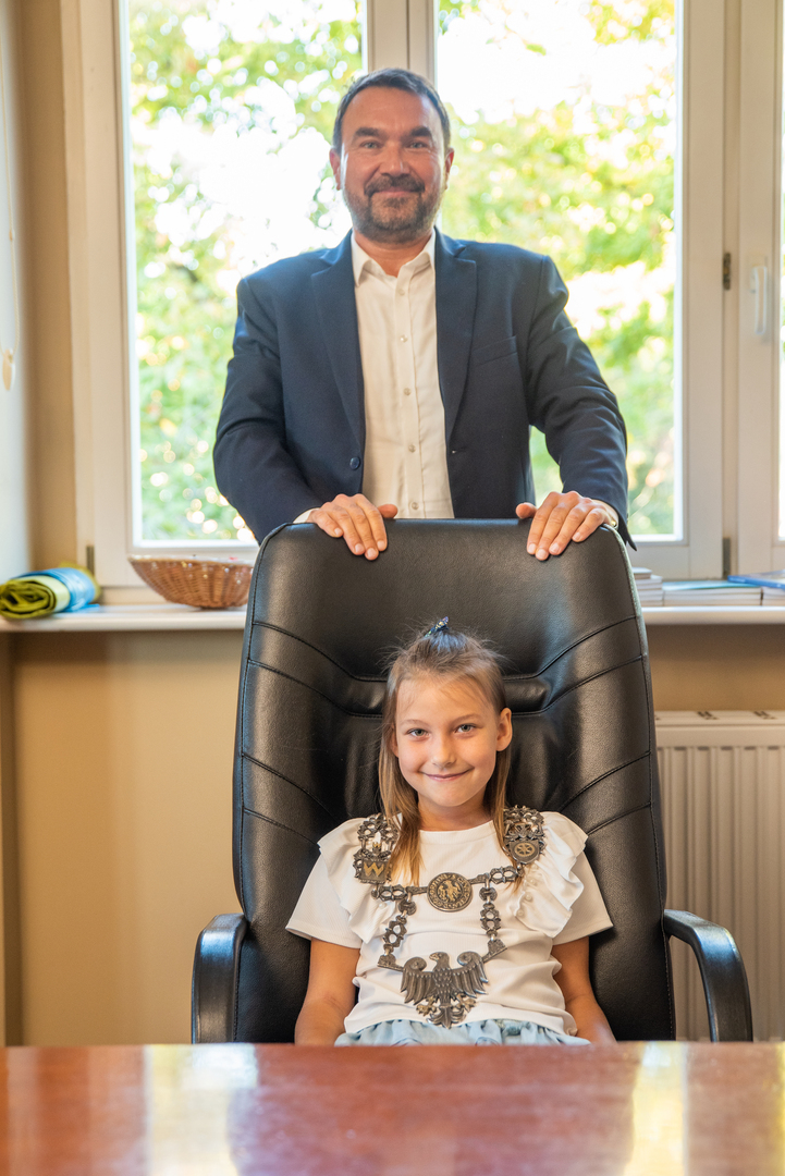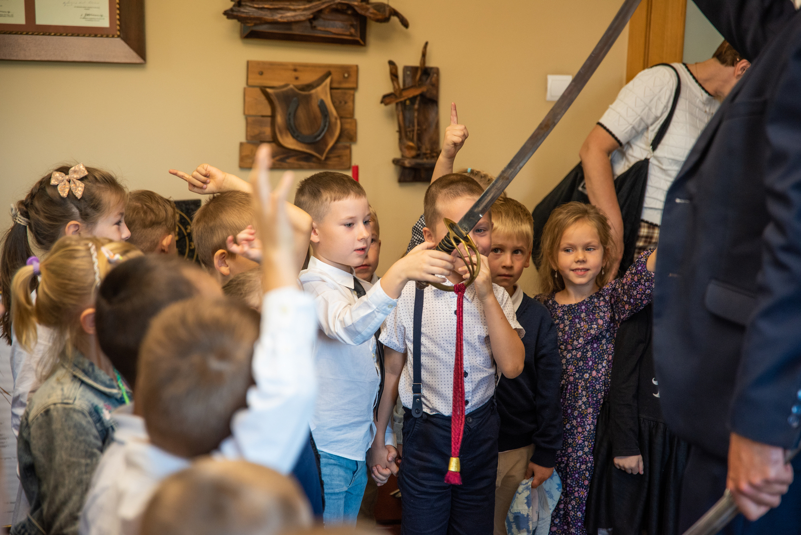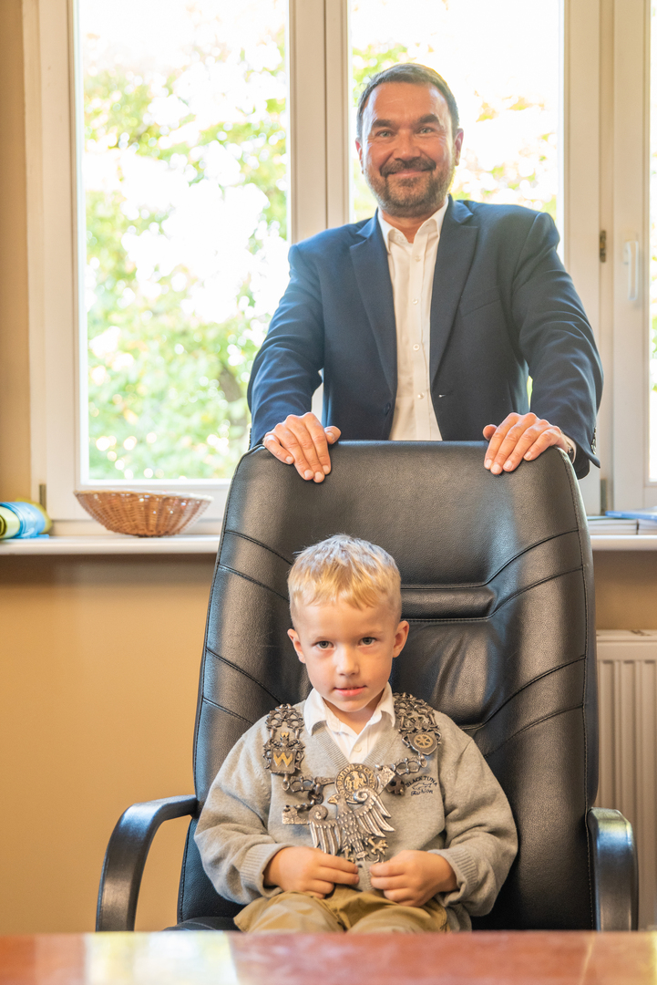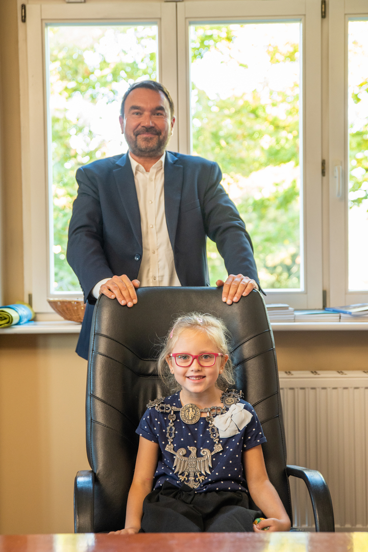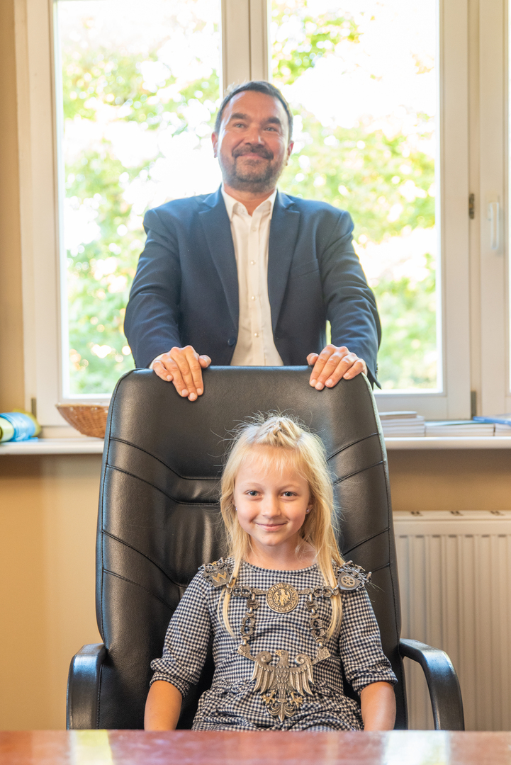 Dnia 29 września grupa 5 i 6 –latków wybrała się na spotkanie z Burmistrzem Miasta i Gminy Obornik –Tomaszem Szramą. Pan burmistrz i pracownicy urzędu przywitali nas z wielką radością i uśmiechem na twarzy. Przedszkolaki poznały gminny budynek oraz specyfikę pracy urzędników. Największym przeżyciem dla dzieci była wizyta w gabinecie pana burmistrza, gdzie każdy mógł zasiąść w fotelu włodarza miasta. Przedszkolaki z wielką uwagą i zainteresowaniem rozglądały się po pięknym gabinecie i szeptem wymieniały swoje spostrzeżenia. Na zakończenie miłego spotkania dzieci zostały poczęstowane cukierkami i wręczyły własnoręcznie wykonane rysunki oraz upominki.