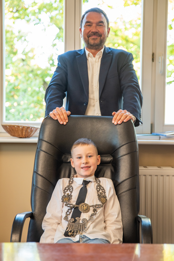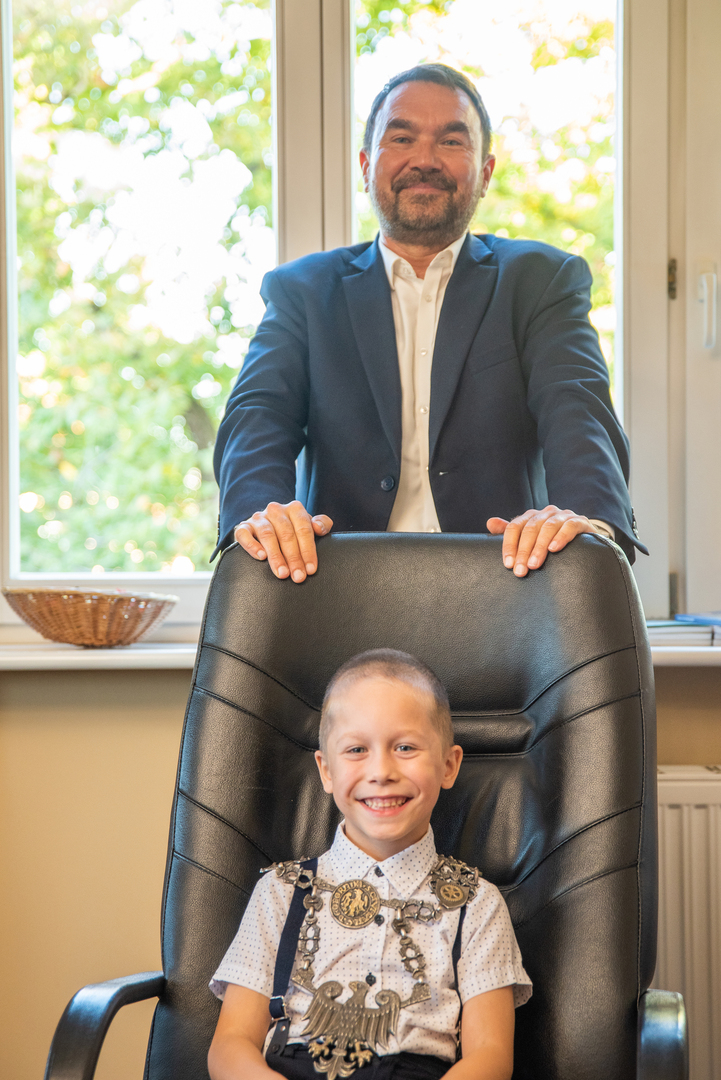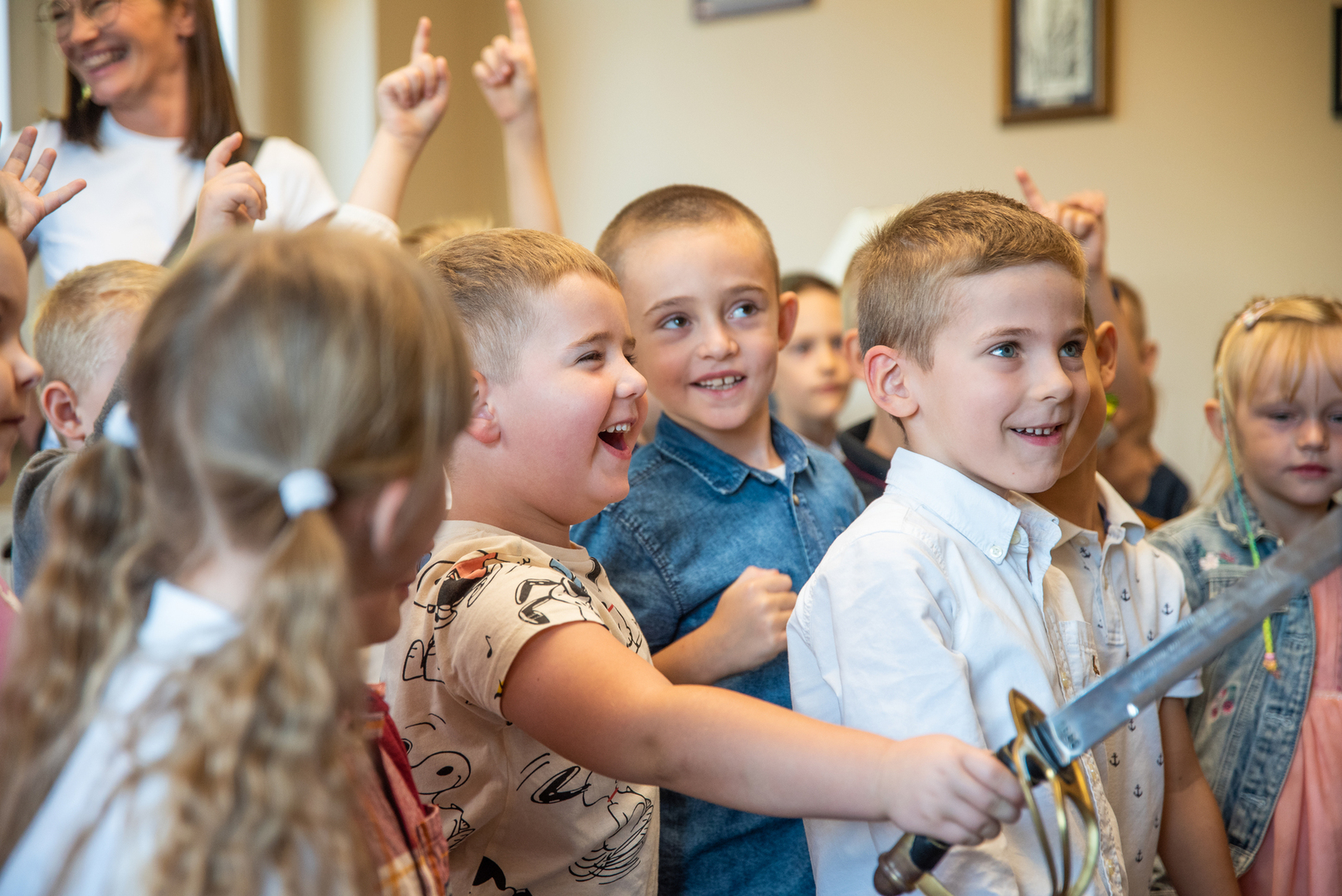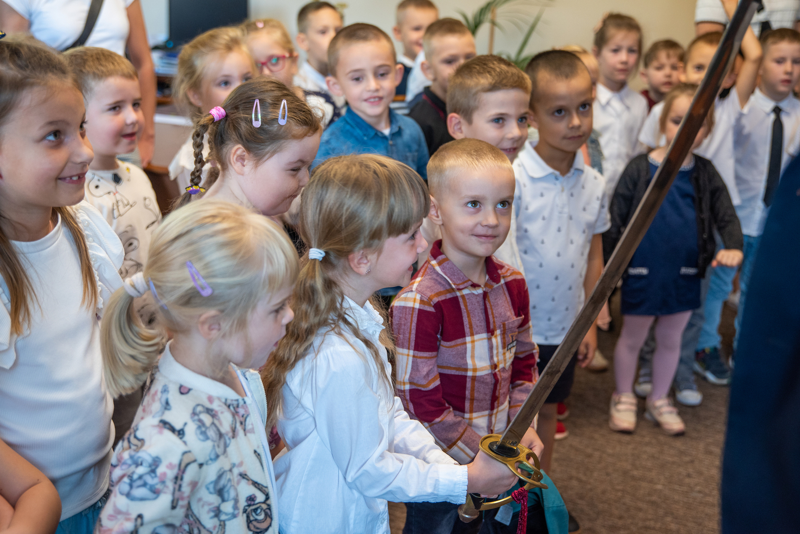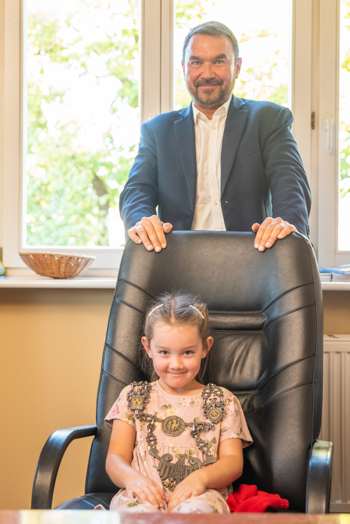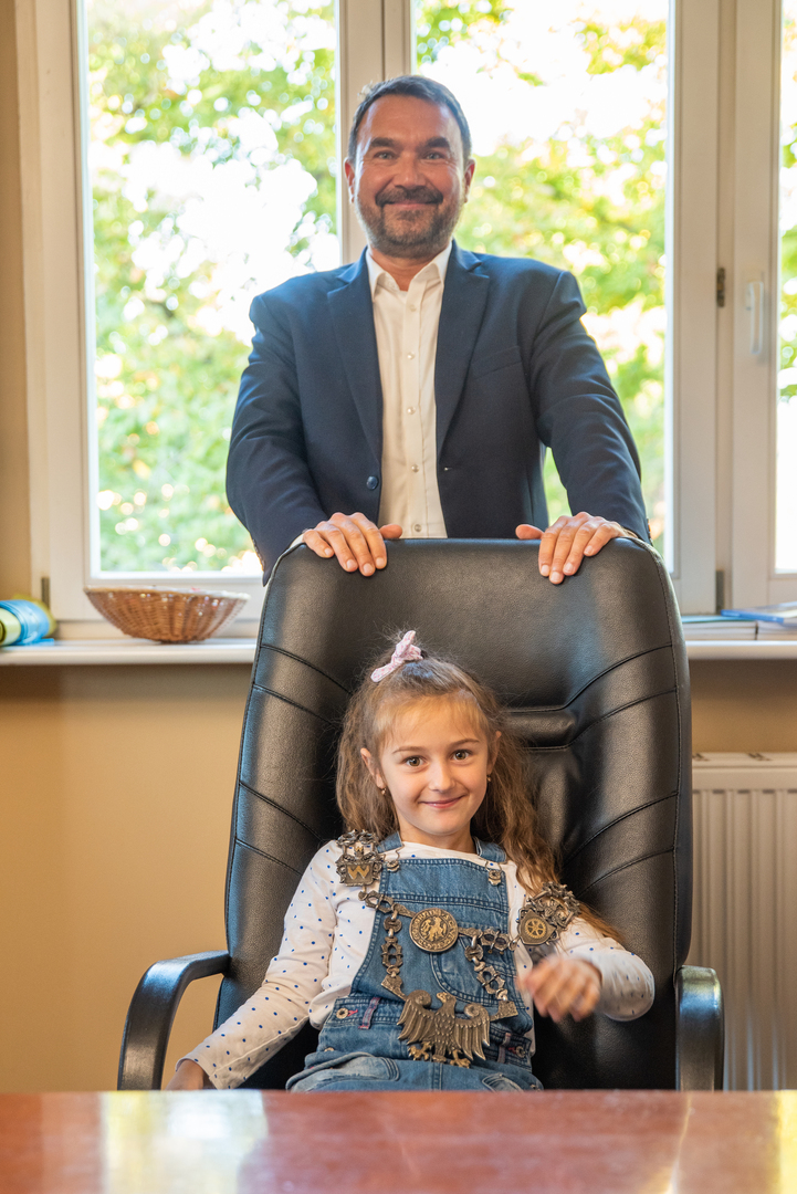 Dnia 29 września grupa 5 i 6 –latków wybrała się na spotkanie z Burmistrzem Miasta i Gminy Obornik –Tomaszem Szramą. Pan burmistrz i pracownicy urzędu przywitali nas z wielką radością i uśmiechem na twarzy. Przedszkolaki poznały gminny budynek oraz specyfikę pracy urzędników. Największym przeżyciem dla dzieci była wizyta w gabinecie pana burmistrza, gdzie każdy mógł zasiąść w fotelu włodarza miasta. Przedszkolaki z wielką uwagą i zainteresowaniem rozglądały się po pięknym gabinecie i szeptem wymieniały swoje spostrzeżenia. Na zakończenie miłego spotkania dzieci zostały poczęstowane cukierkami i wręczyły własnoręcznie wykonane rysunki oraz upominki.