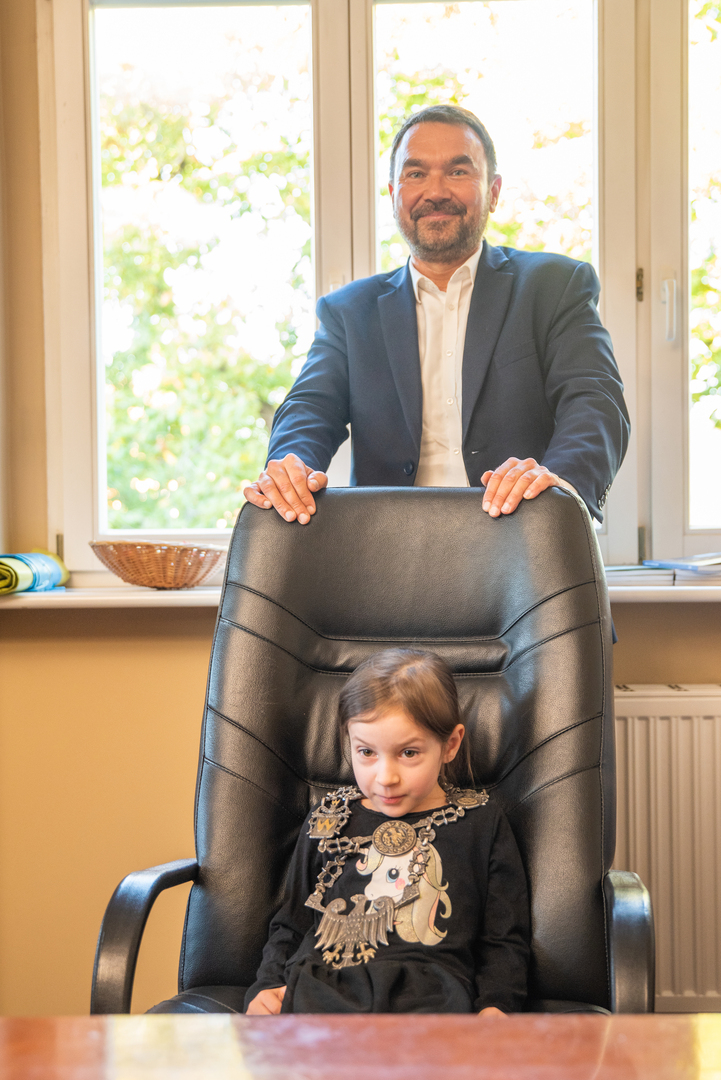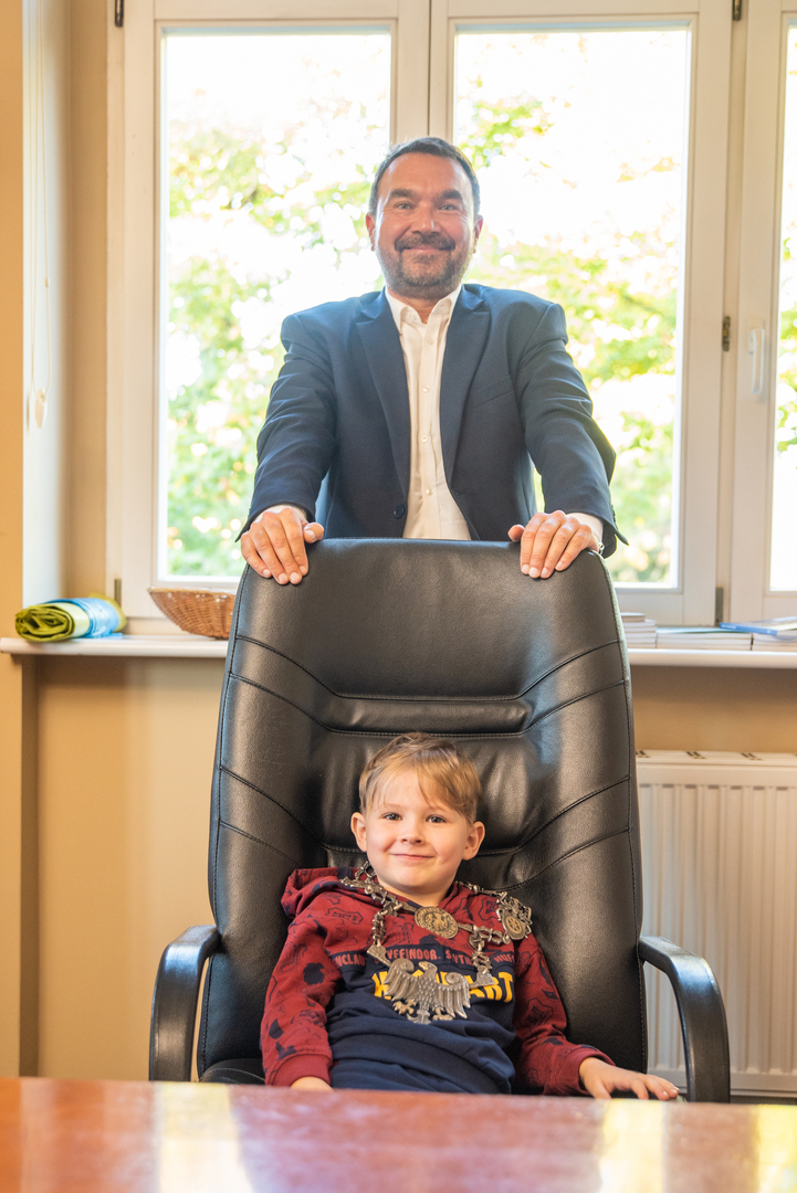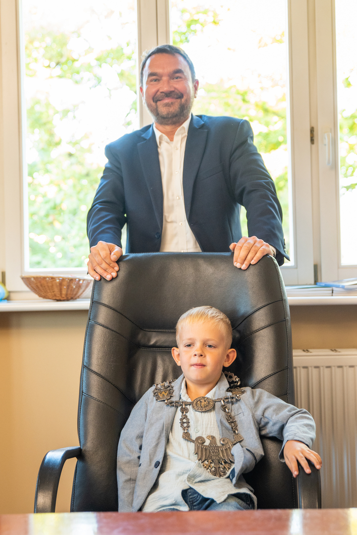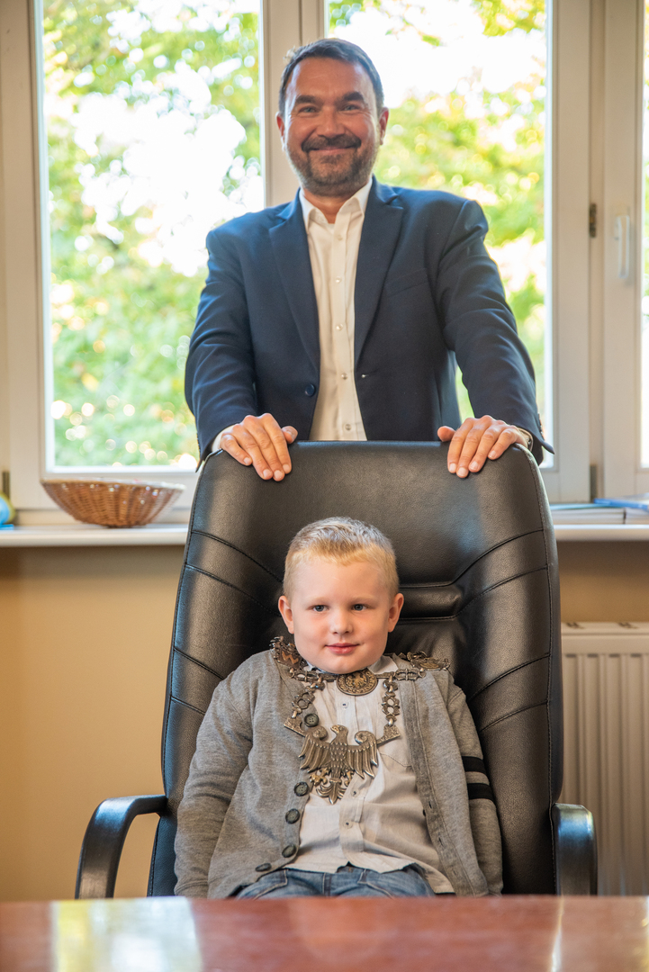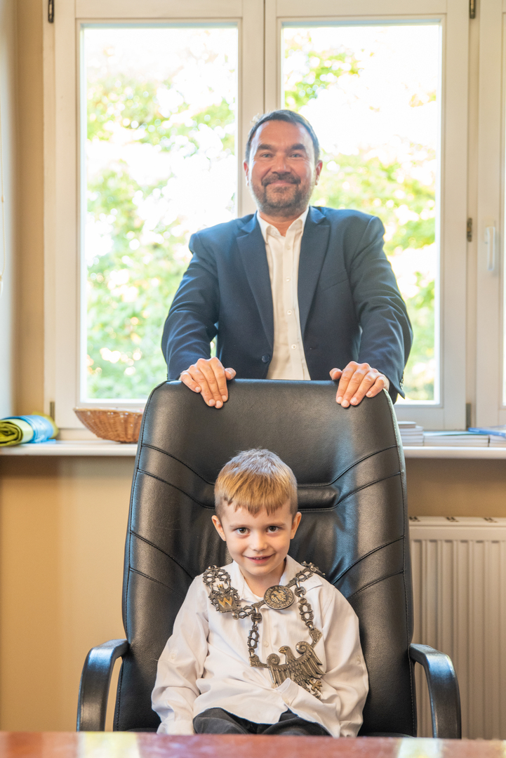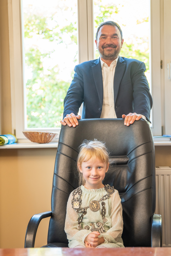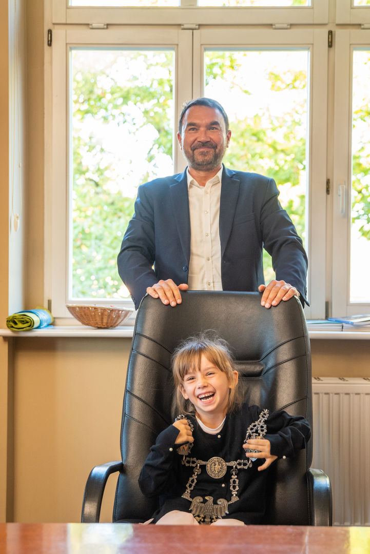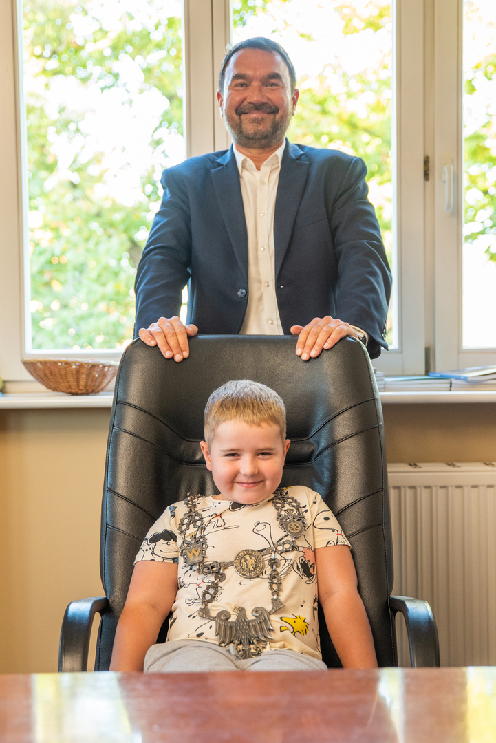 Dnia 29 września grupa 5 i 6 –latków wybrała się na spotkanie z Burmistrzem Miasta i Gminy Obornik –Tomaszem Szramą. Pan burmistrz i pracownicy urzędu przywitali nas z wielką radością i uśmiechem na twarzy. Przedszkolaki poznały gminny budynek oraz specyfikę pracy urzędników. Największym przeżyciem dla dzieci była wizyta w gabinecie pana burmistrza, gdzie każdy mógł zasiąść w fotelu włodarza miasta. Przedszkolaki z wielką uwagą i zainteresowaniem rozglądały się po pięknym gabinecie i szeptem wymieniały swoje spostrzeżenia. Na zakończenie miłego spotkania dzieci zostały poczęstowane cukierkami i wręczyły własnoręcznie wykonane rysunki oraz upominki.