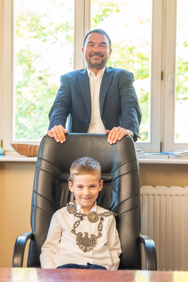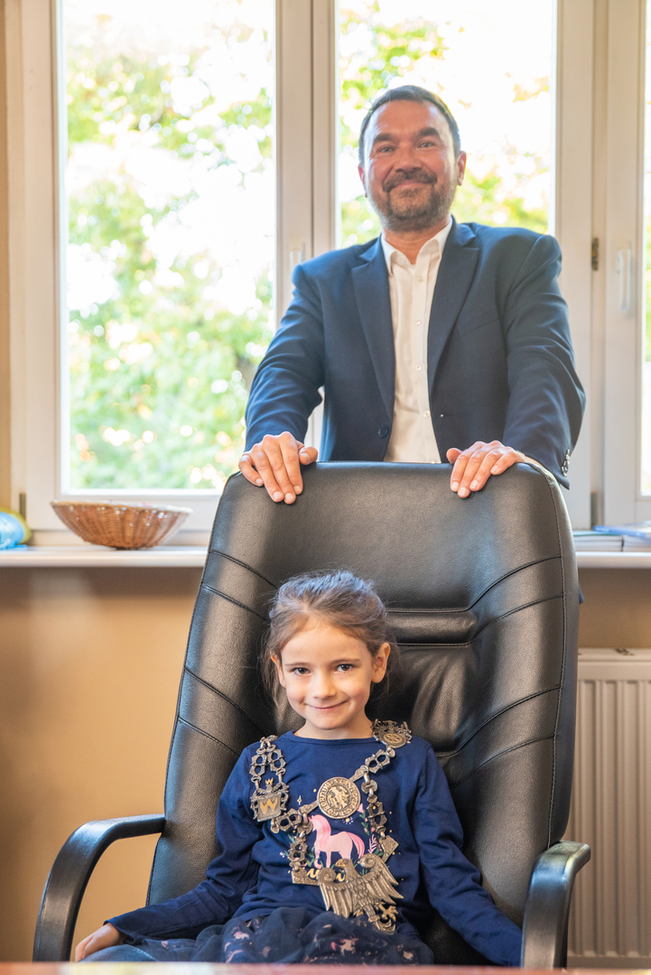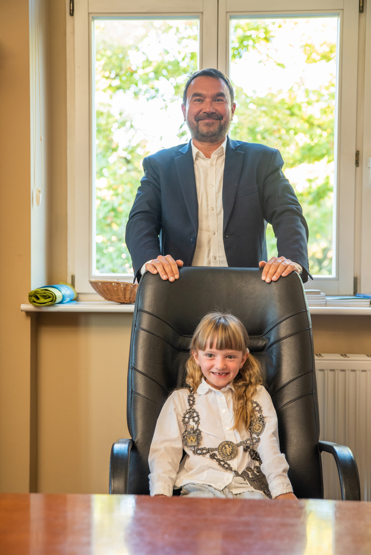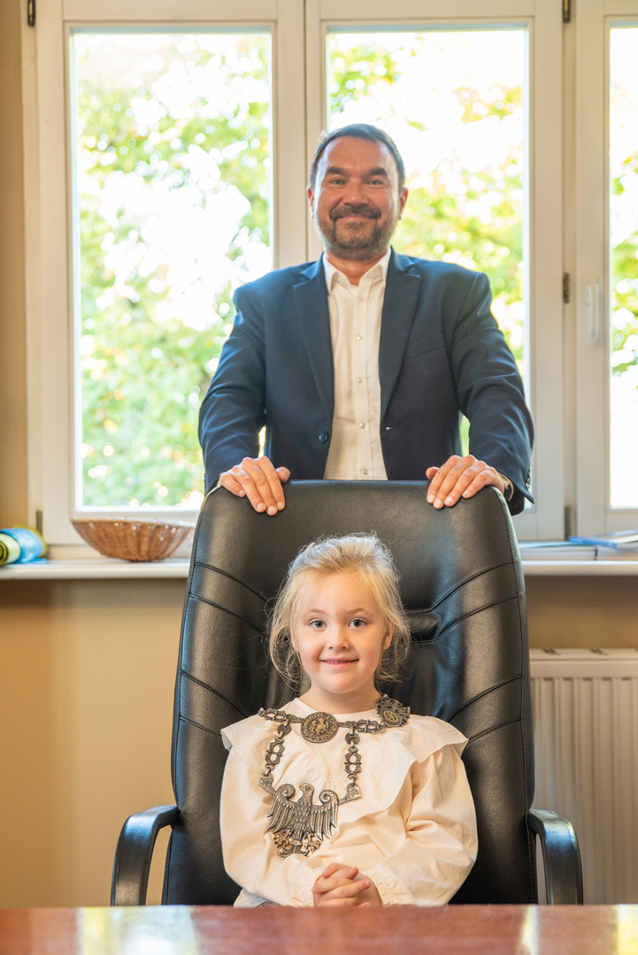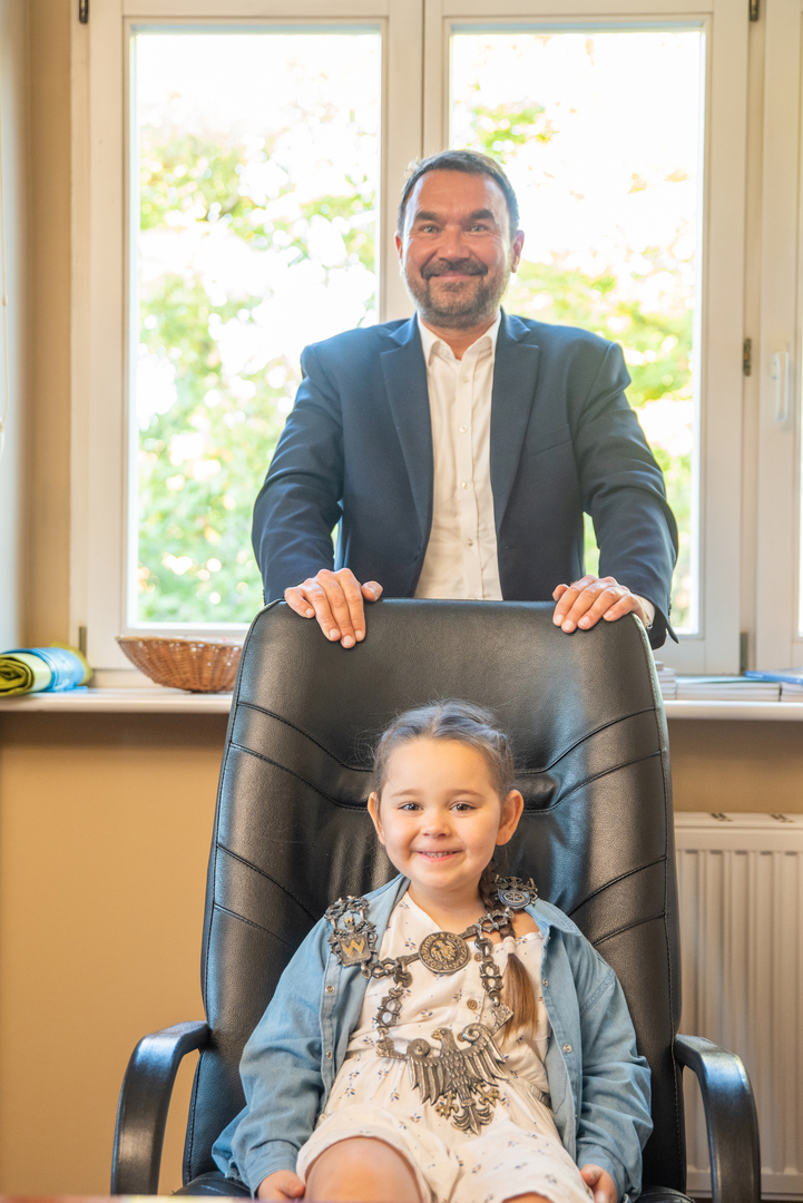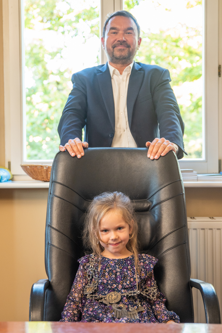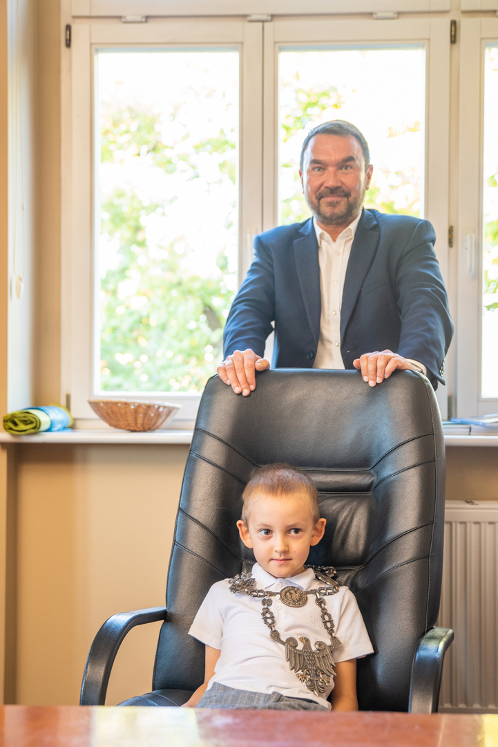 Dnia 29 września grupa 5 i 6 –latków wybrała się na spotkanie z Burmistrzem Miasta i Gminy Obornik –Tomaszem Szramą. Pan burmistrz i pracownicy urzędu przywitali nas z wielką radością i uśmiechem na twarzy. Przedszkolaki poznały gminny budynek oraz specyfikę pracy urzędników. Największym przeżyciem dla dzieci była wizyta w gabinecie pana burmistrza, gdzie każdy mógł zasiąść w fotelu włodarza miasta. Przedszkolaki z wielką uwagą i zainteresowaniem rozglądały się po pięknym gabinecie i szeptem wymieniały swoje spostrzeżenia. Na zakończenie miłego spotkania dzieci zostały poczęstowane cukierkami i wręczyły własnoręcznie wykonane rysunki oraz upominki.