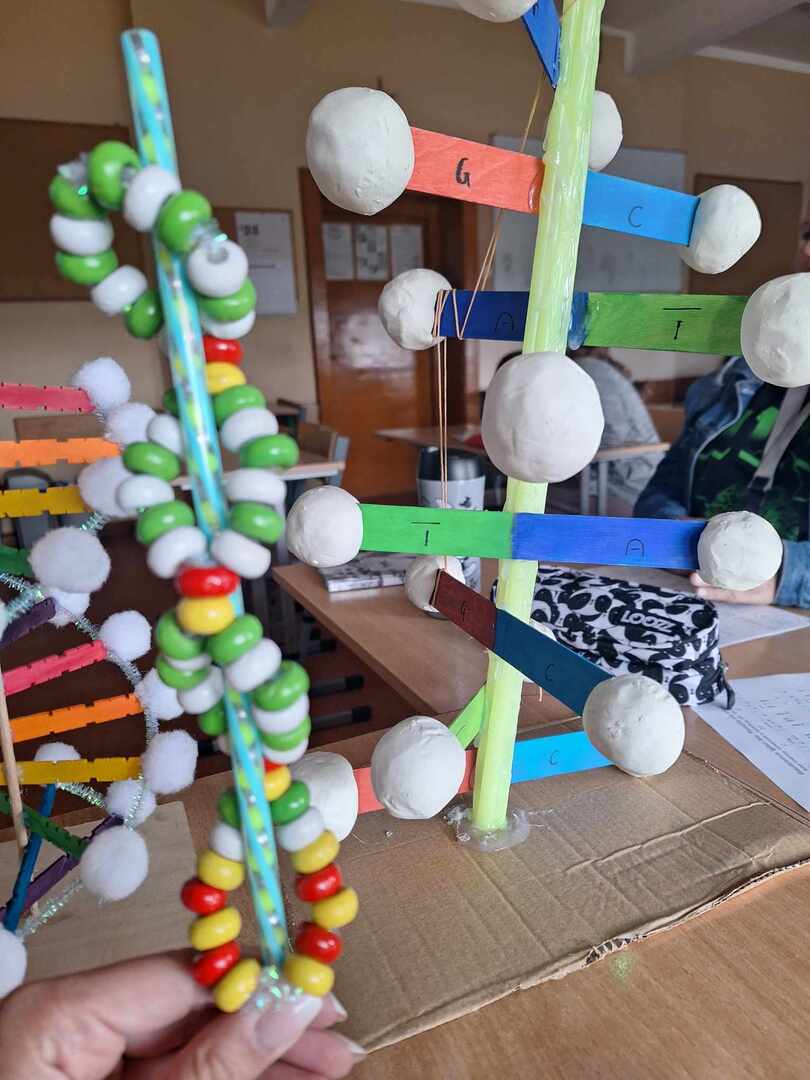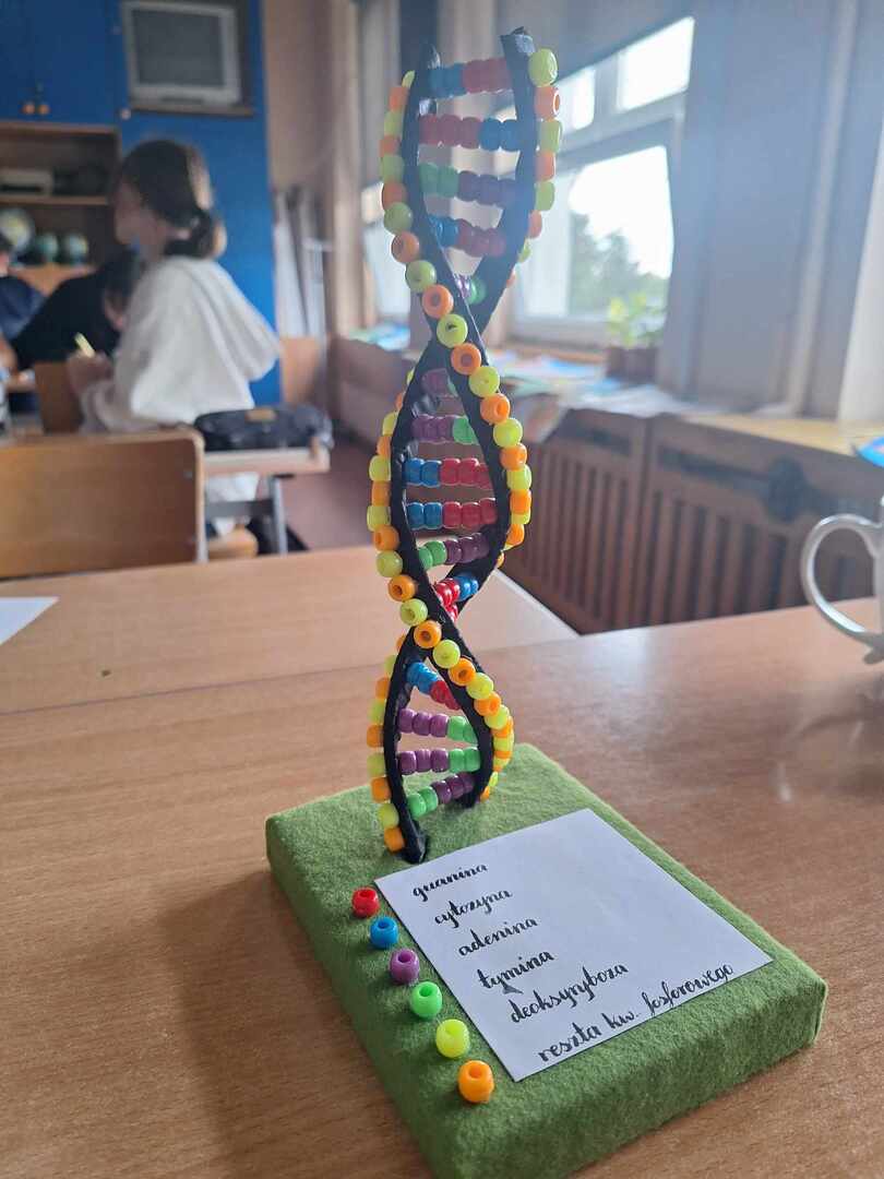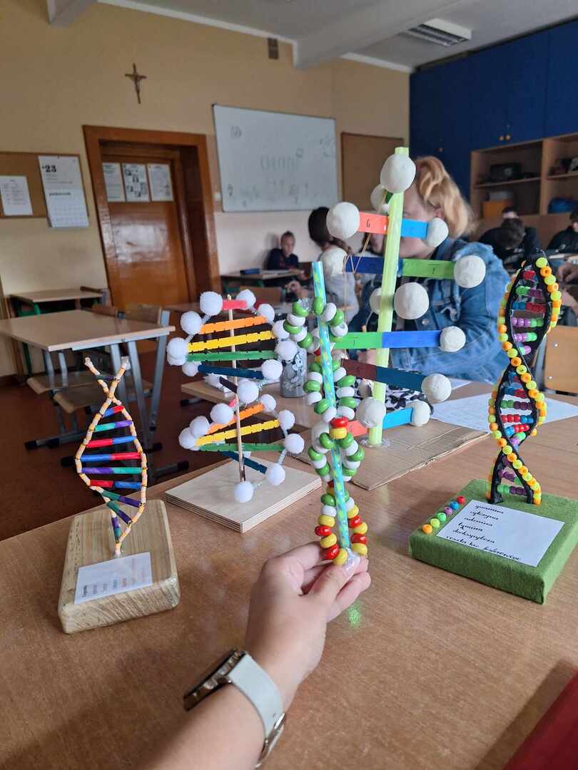 Genetyka jest dziedziną biologii opisującą prawa dziedziczenia i zmienności. Chętni uczniowie z klasy 8 w ramach tematu „DNA - nośnik informacji genetycznej” wykonali modele DNA. Uczniowie wykorzystali do stworzenia modeli różne materiały oraz wykazali się kreatywnością.