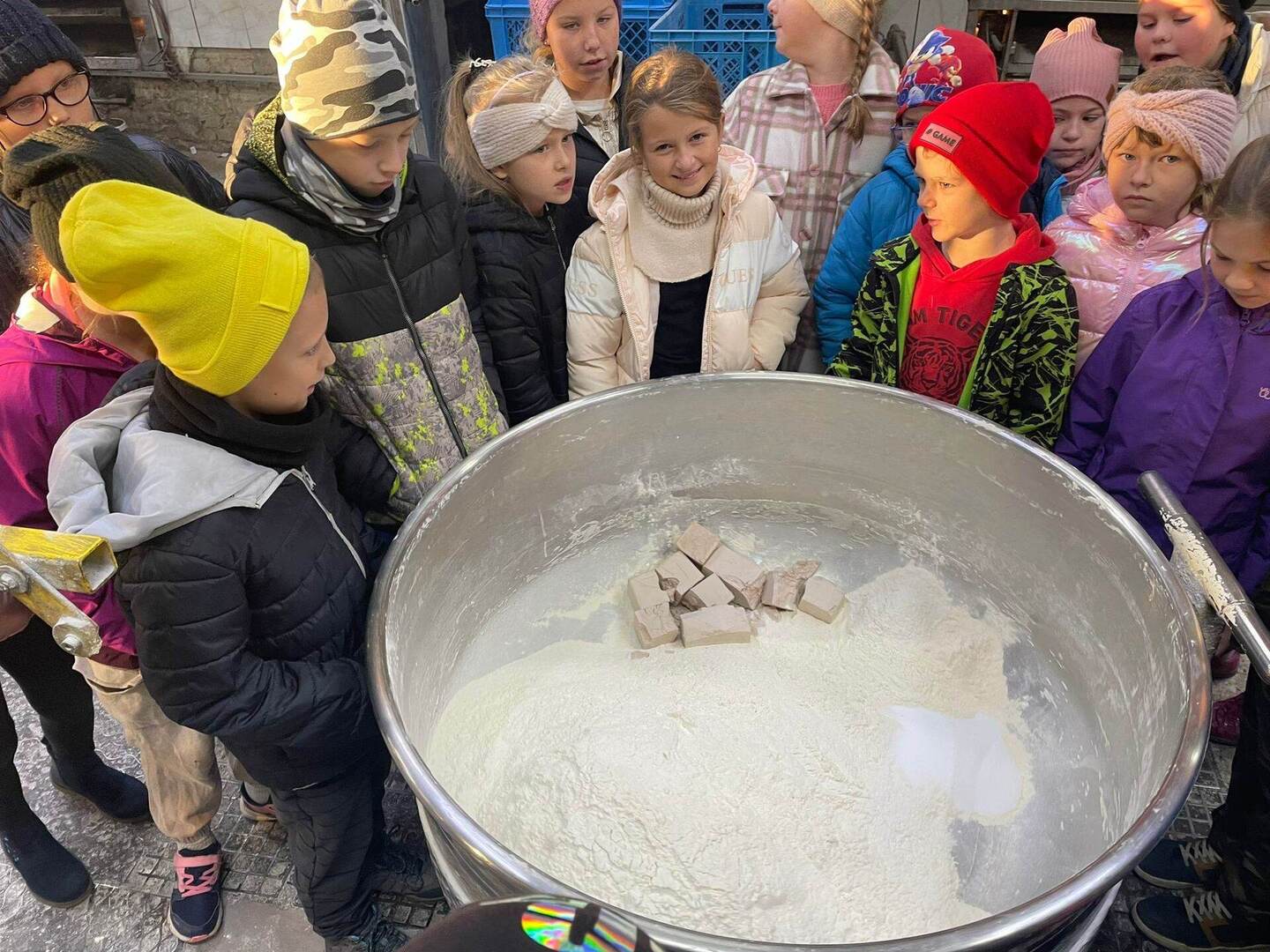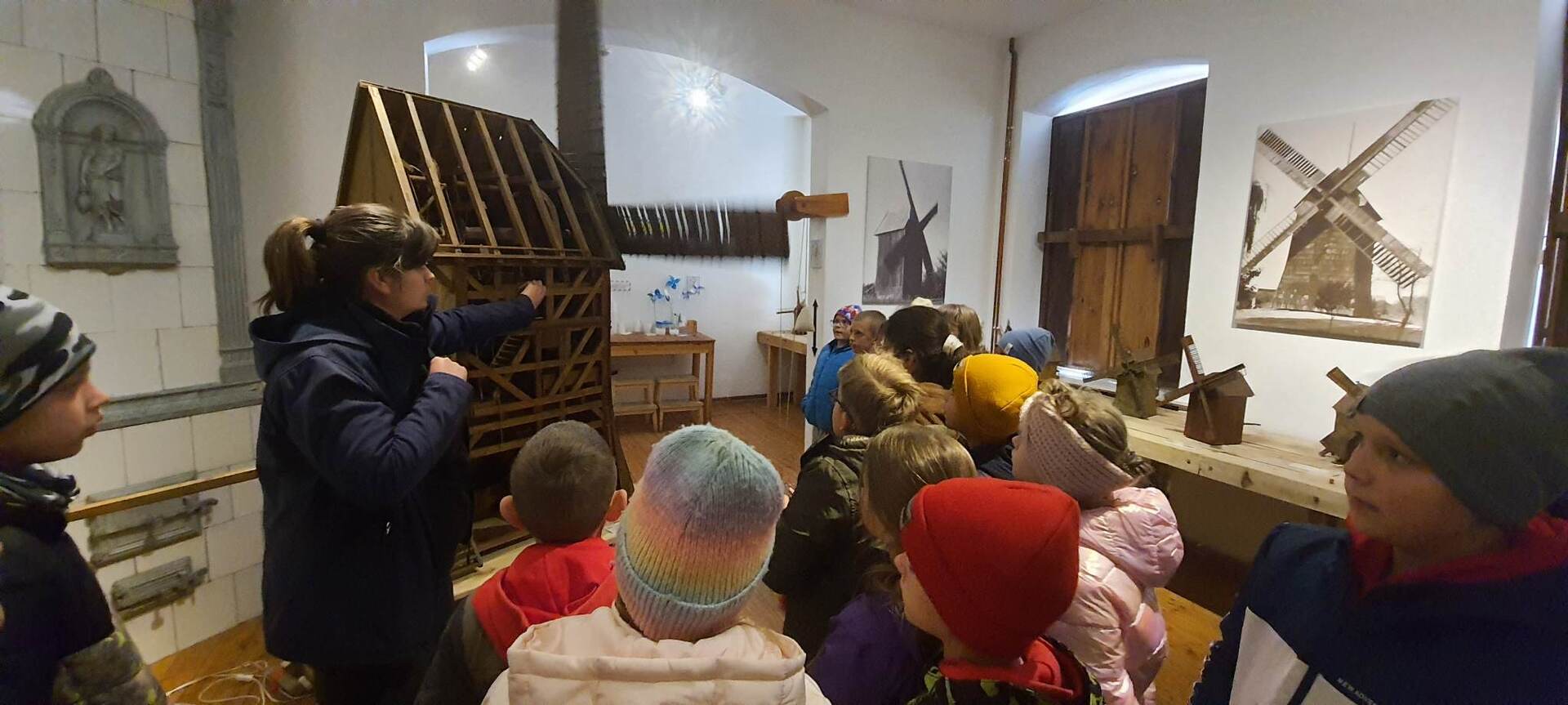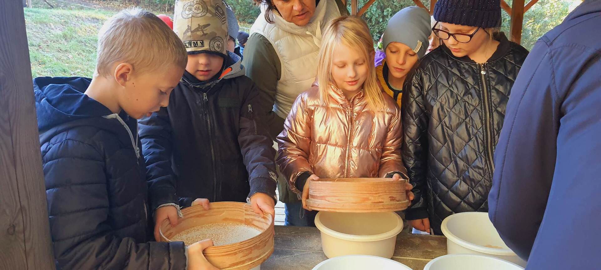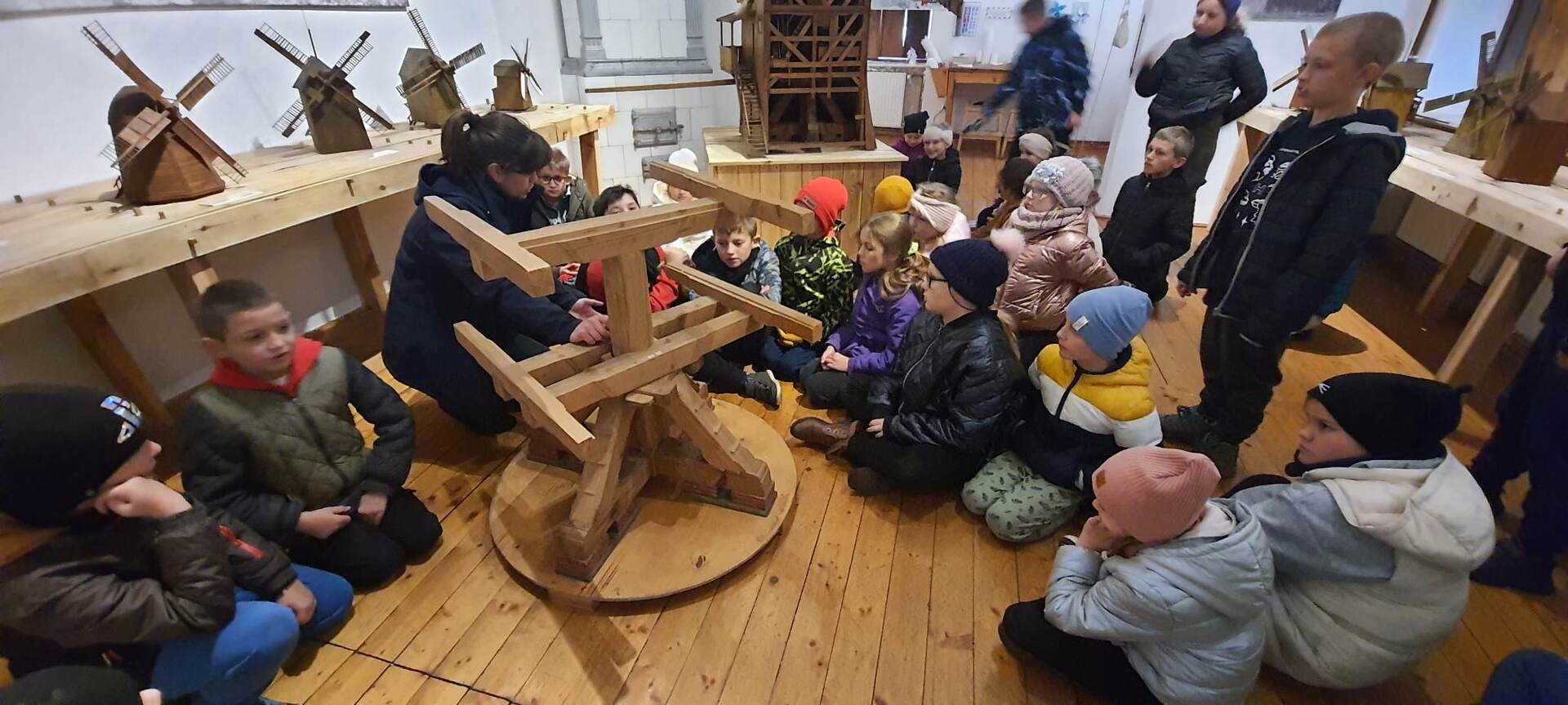 Pierszym jej punktem było odwiedzenie "Piekarni pod rogalem", która mieści się w Obornikach. Poznaliśmy firmę, która codziennie, nieprzerwanie rozpoczyna swą pracę od bardzo wczesnych godzin, kiedy my jeszcze smacznie śpimy po to, aby na naszych stołach już od samego rana zawitały świeże wypieki. Mieliśmy możliwość poznania sposobów wypieku chleba i bułek od początku, gdy dobieramy składniki, aż do samego końca, kiedy to wypieki jeszcze gorące wydostają się z wielkich pieców. Na koniec poczęstowani zostaliśmy cieplutkimi bułkami i słodkimi wypiekami. Dalszą podróż odbyliśmy do Muzeum Młynarstwa i Urządzeń Wodnych w w Jaraczu. Cofnęliśmy się tam sporo w czasie. Poznaliśmy sprzęty, dzięki którym w dawnych czasach ludzie pozyskiwali mąkę. Po otrzymaniu mąki z ziaren wyrobiliśmy ciasto i upiekliśmy je w najprawdziwszym piecu chlebowym - wyglądał pysznie! Zwiedziliśmy urządzenia, które w dawnych czasach odpowiadały za przetwarzanie ziaren na mąkę dzięki siłom natury - wiatru i wody - czyli wiatraki i młyny. Mimo zimnej pogody - ciepłe wypieki pomogły nam w tym dniu spędzić wspaniałą wycieczkę. Szczególne podziękowania dla pana Jasia i pani Ani - z piekarni i muzeum, którzy w tym dniu sprawili, że wycieczka stała się dla nas niesamowitym przeżyciem.