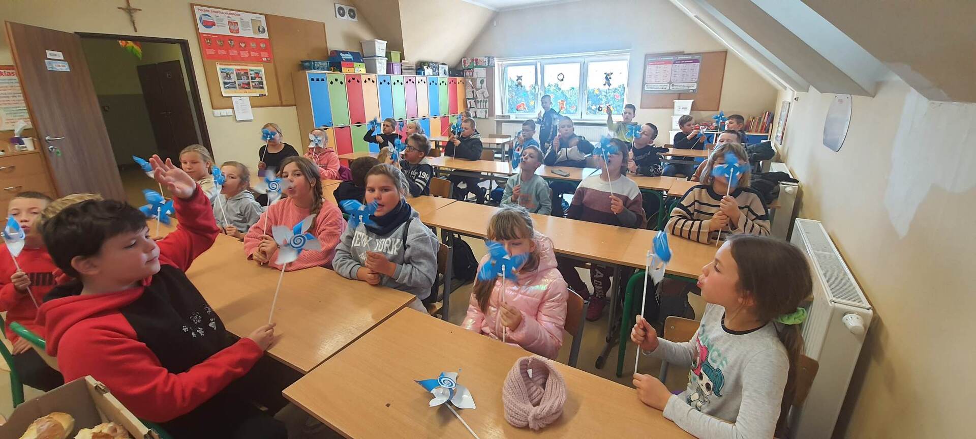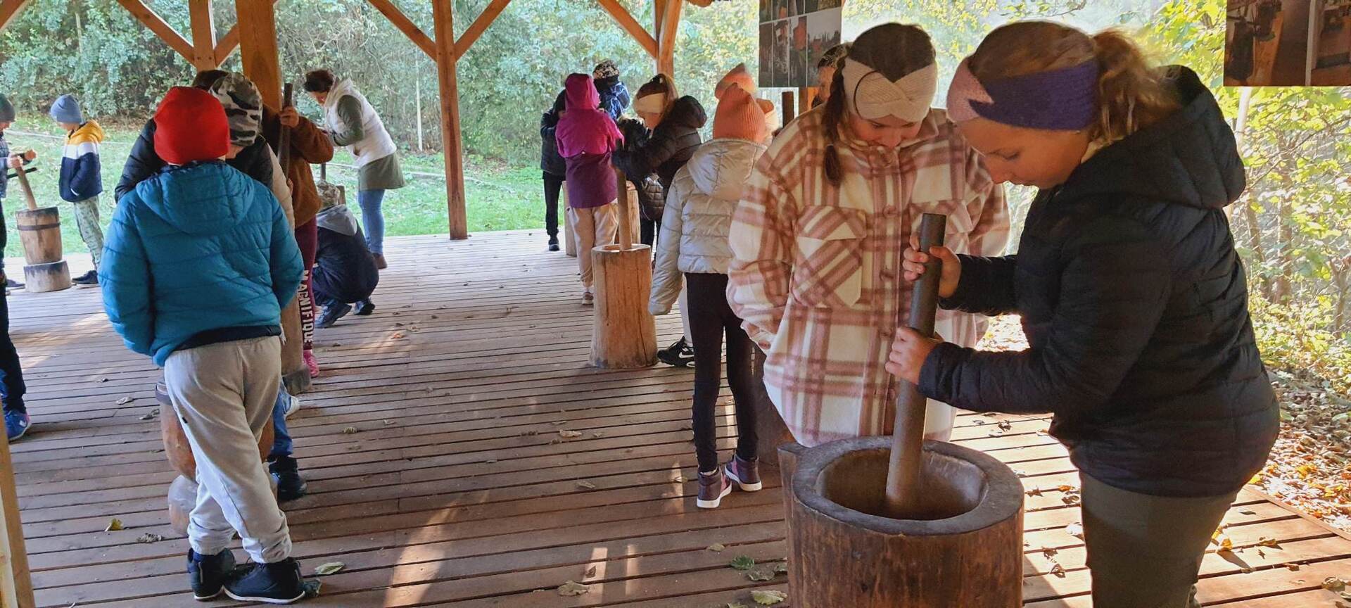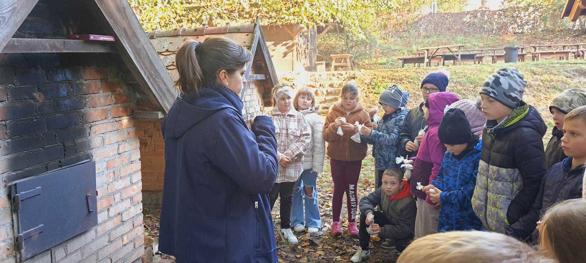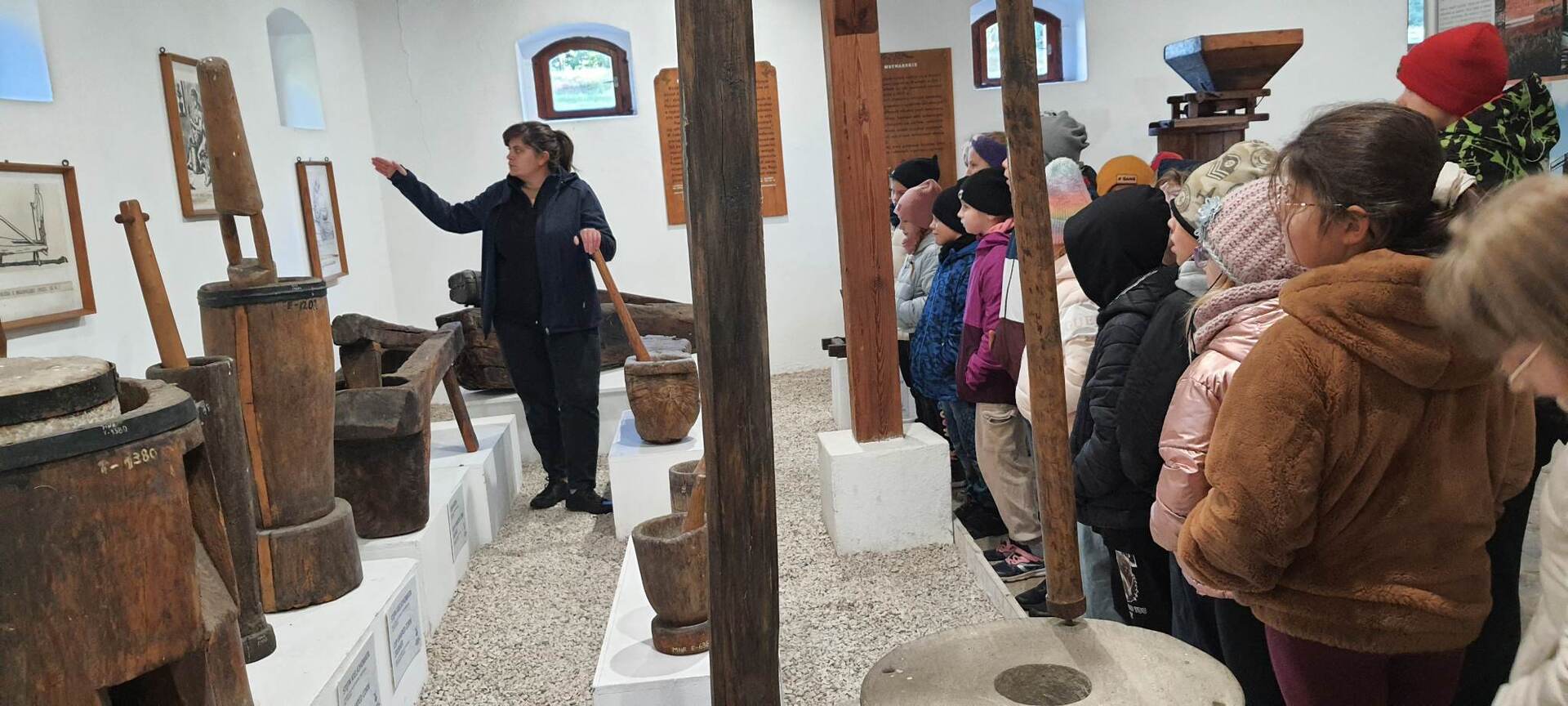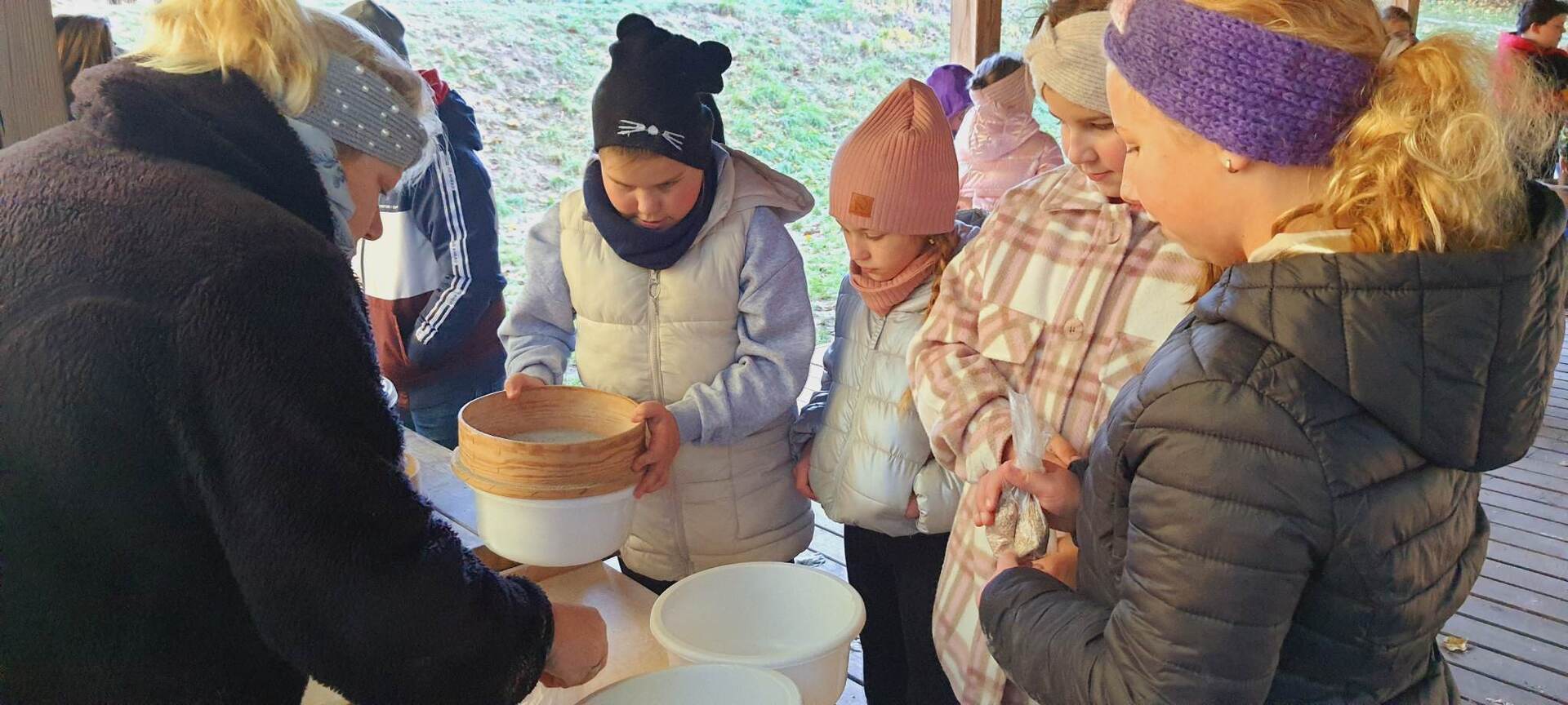 Pierszym jej punktem było odwiedzenie "Piekarni pod rogalem", która mieści się w Obornikach. Poznaliśmy firmę, która codziennie, nieprzerwanie rozpoczyna swą pracę od bardzo wczesnych godzin, kiedy my jeszcze smacznie śpimy po to, aby na naszych stołach już od samego rana zawitały świeże wypieki. Mieliśmy możliwość poznania sposobów wypieku chleba i bułek od początku, gdy dobieramy składniki, aż do samego końca, kiedy to wypieki jeszcze gorące wydostają się z wielkich pieców. Na koniec poczęstowani zostaliśmy cieplutkimi bułkami i słodkimi wypiekami. Dalszą podróż odbyliśmy do Muzeum Młynarstwa i Urządzeń Wodnych w w Jaraczu. Cofnęliśmy się tam sporo w czasie. Poznaliśmy sprzęty, dzięki którym w dawnych czasach ludzie pozyskiwali mąkę. Po otrzymaniu mąki z ziaren wyrobiliśmy ciasto i upiekliśmy je w najprawdziwszym piecu chlebowym - wyglądał pysznie! Zwiedziliśmy urządzenia, które w dawnych czasach odpowiadały za przetwarzanie ziaren na mąkę dzięki siłom natury - wiatru i wody - czyli wiatraki i młyny. Mimo zimnej pogody - ciepłe wypieki pomogły nam w tym dniu spędzić wspaniałą wycieczkę. Szczególne podziękowania dla pana Jasia i pani Ani - z piekarni i muzeum, którzy w tym dniu sprawili, że wycieczka stała się dla nas niesamowitym przeżyciem.