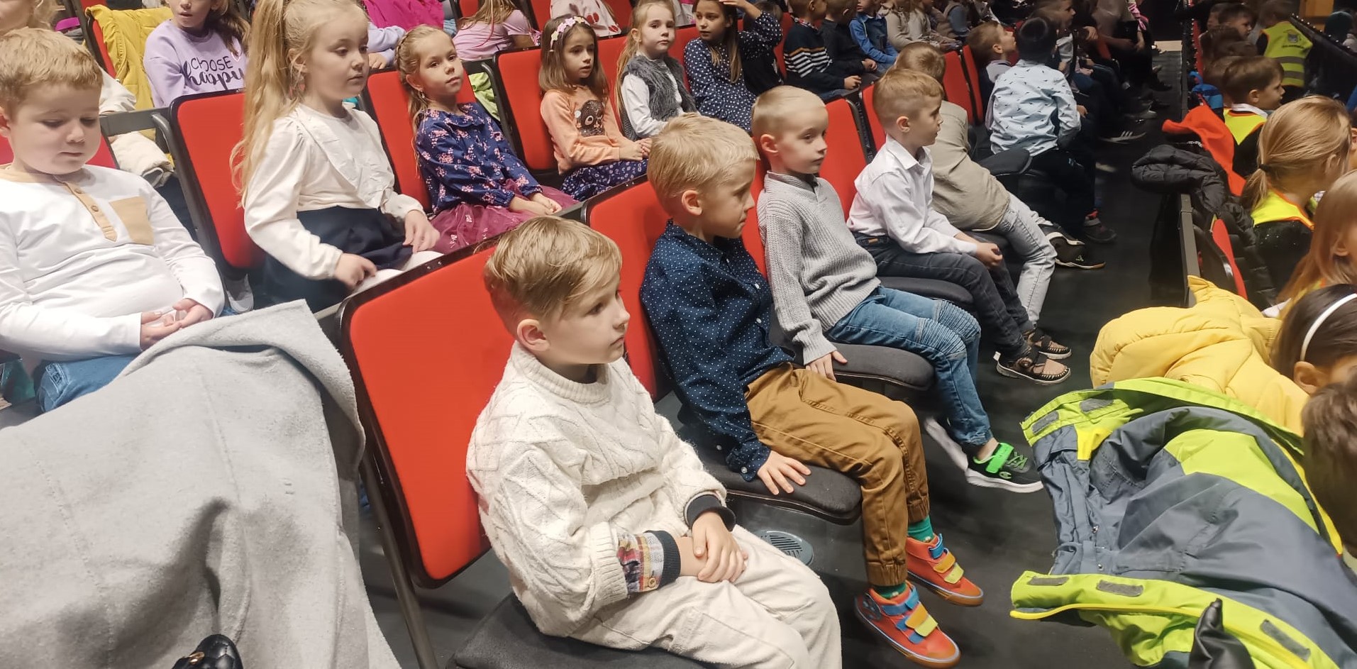 Dnia 17 października dzieci z grupy 5 i 6-latków wybrały się na sztukę teatralną pt. ”Inspektor Psina”. Celem wycieczki było między innymi rozbudzanie zainteresowania kulturą oraz wyzwalanie pozytywnych uczuć i emocji. Przedstawienie bardzo podobało się dzieciom. Przedszkolaki wzbogaciły swój słownik o wiele ciekawych wyrazów dotyczących teatru oraz mogły wykorzystać posiadaną już wiedzę w praktyce - tzn. jak zachować się w miejscach publicznych i podczas oglądania sztuki teatralnej. Uśmiechnięte buzie, radosne opowieści oraz gromkie brawa po spektaklu są z pewnością dowodem na to, że wycieczkę można uznać za udaną.