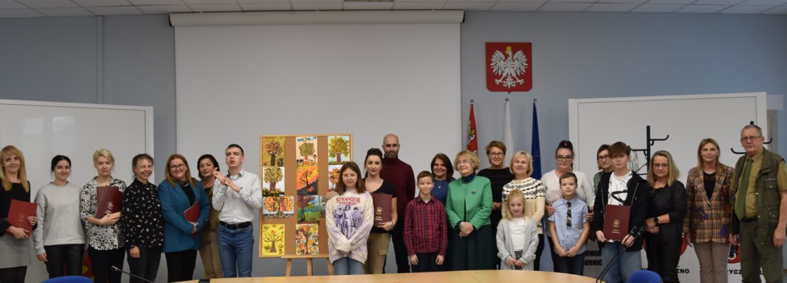 Uczniowie naszej szkoły wzięli udział w konkursie organizowanym przez Wydział Budownictwa i Środowiska Starostwa Powiatowego w Obornikach. Zadaniem uczestników było wykonanie w dowolnej technice pracy plastycznej przedstawiającej drzewo jesienią.