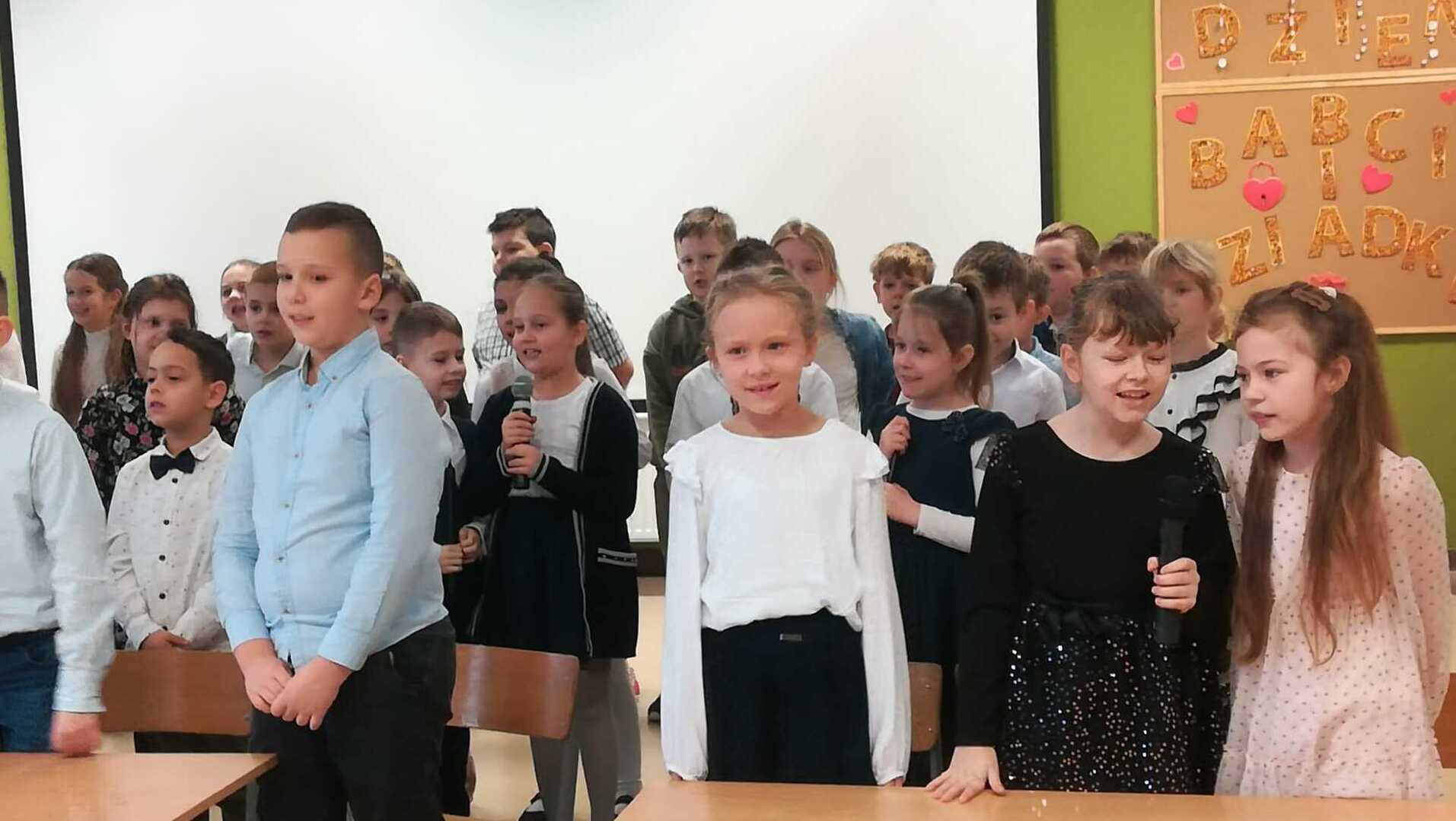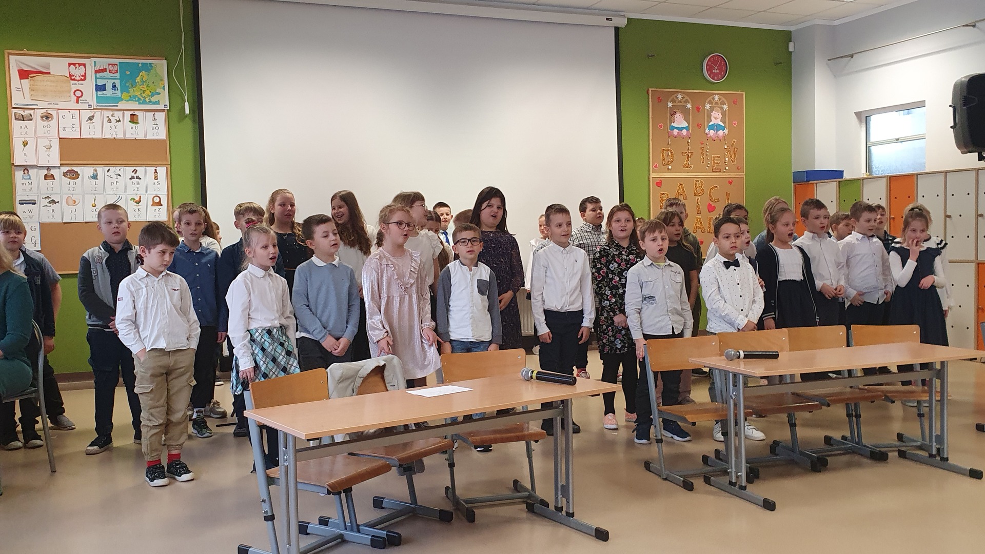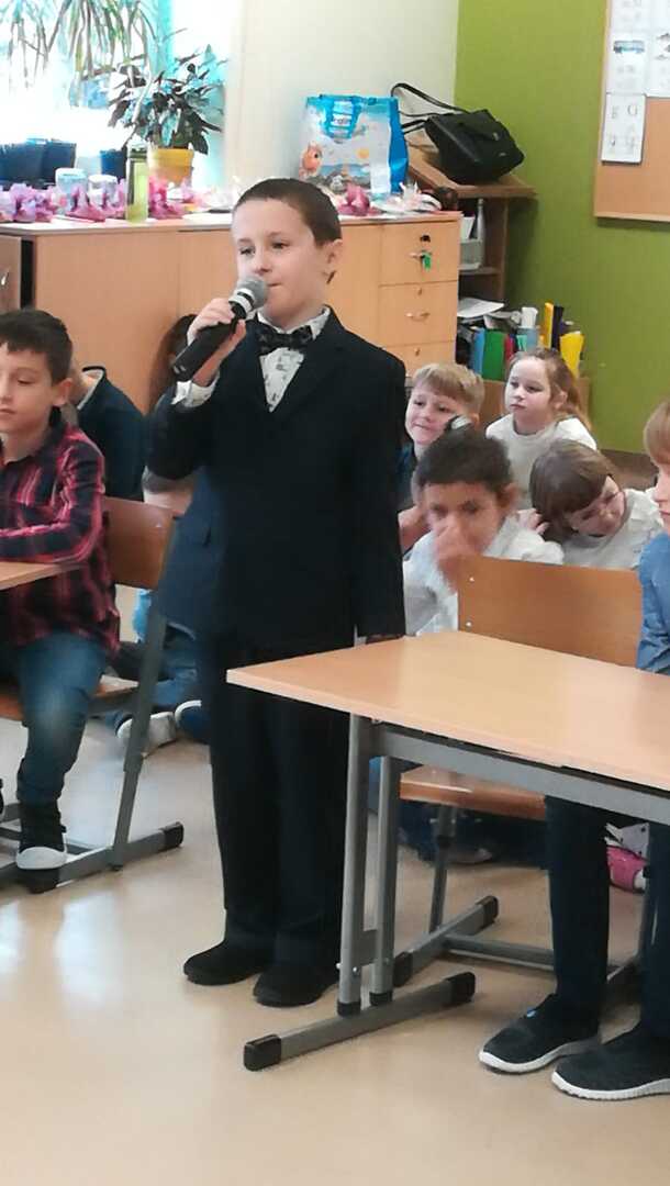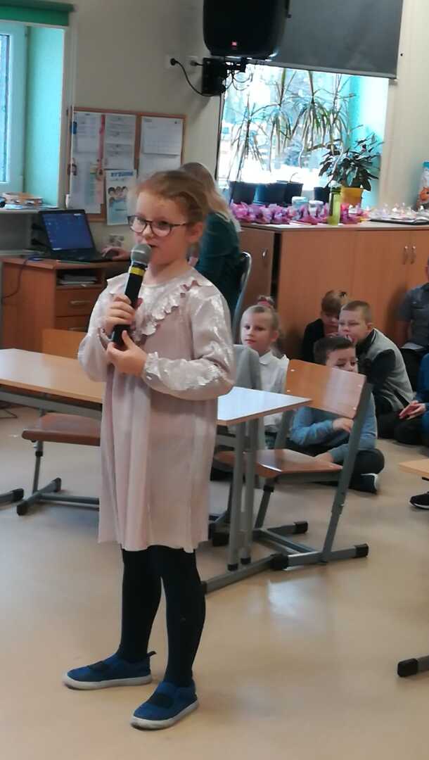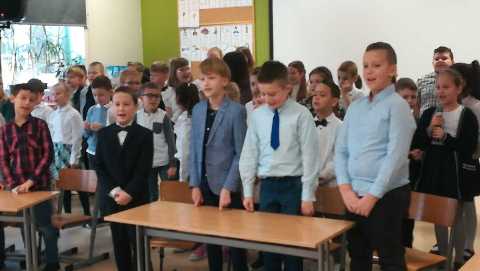 22 stycznia odbyła się w naszej szkole uroczystość dla Babć i Dziadków.W ten wyjątkowy styczniowy dzień dzieci z klas I-III przedstawiły program artystyczny w formie teleturnieju. Zabawne teksty pytań i odpowiedzi wzbogacone o piosenki podobały się dziadkom, którzy nagradzali swoje wnuki gromkimi brawami. Mali artyści z przejęciem odtwarzali swoje role, a czcigodni goście ze wzruszeniem odbierali czułe słowa. Dzieci zaśpiewały „Sto lat”, a następnie obdarowano dziadków upominkami. Spotkanie zakończyło się wspólnym poczęstunkiem i pamiątkowymi zdjęciami .