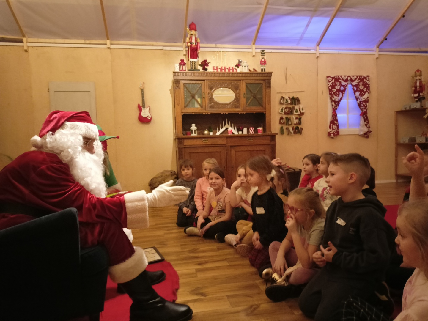 Na miejscu czekała cała masa atrakcji: ruchowych, zręcznościowych, zagadki logiczne, zadania edukacyjne, dmuchańce. Dzieci miały okazję napisać list do Świętego Mikołaja, który wrzuciły do specjalnej skrzynki. Wizyta była zwieńczona spotkaniem ze Świętym Mikołajem, który wręczył każdemu dziecku drobny upominek.
