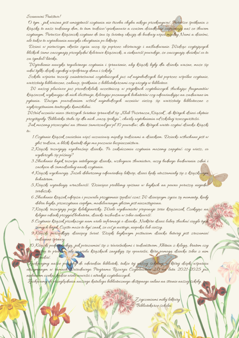 ”Wyrobienie nawyku regularnego czytania i sprawienie, aby książki były dla dziecka ważne, może się udać tylko dzięki zgodnej współpracy domu i szkoły.”