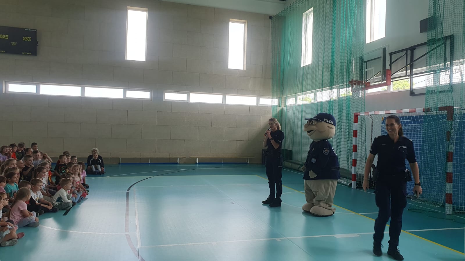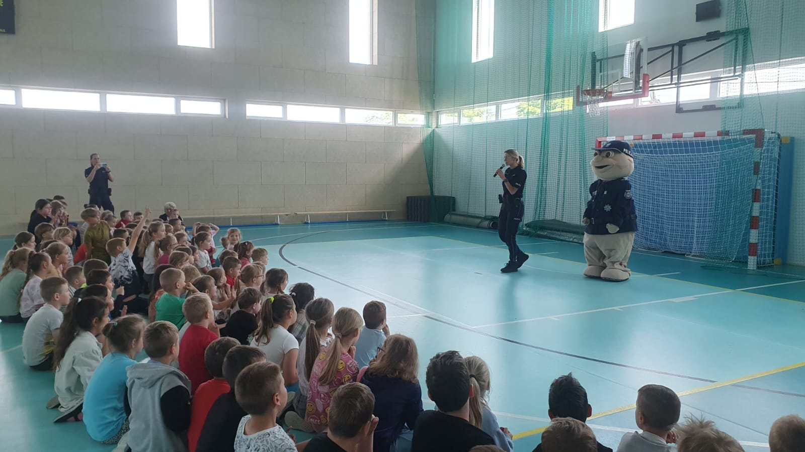 Tydzień przed wakacjami, naszą szkołę odwiedził sierżant Pyrek – maskotka wielkopolskiej Policji oraz policjanci z Komendy Powiatowej Policji w Obornikach. Podczas spotkania policjanci omówili zasady bezpiecznego spędzania czasu, zasady ruchu drogowego w zakresie poruszania się na rowerach i pieszo, bezpiecznego podróżowania, ale przede wszystkim – bezpiecznego spędzania czasu wolnego. Policjanci przekazali dzieciom również kilka wskazówek na temat zabaw z czworonożnymi przyjaciółmi, pokazali, jak należy się bronić przed atakiem zwierzęcia. Najmłodszym przypomniano najważniejsze numery alarmowe, jakimi są 997, 998, 999, 112.