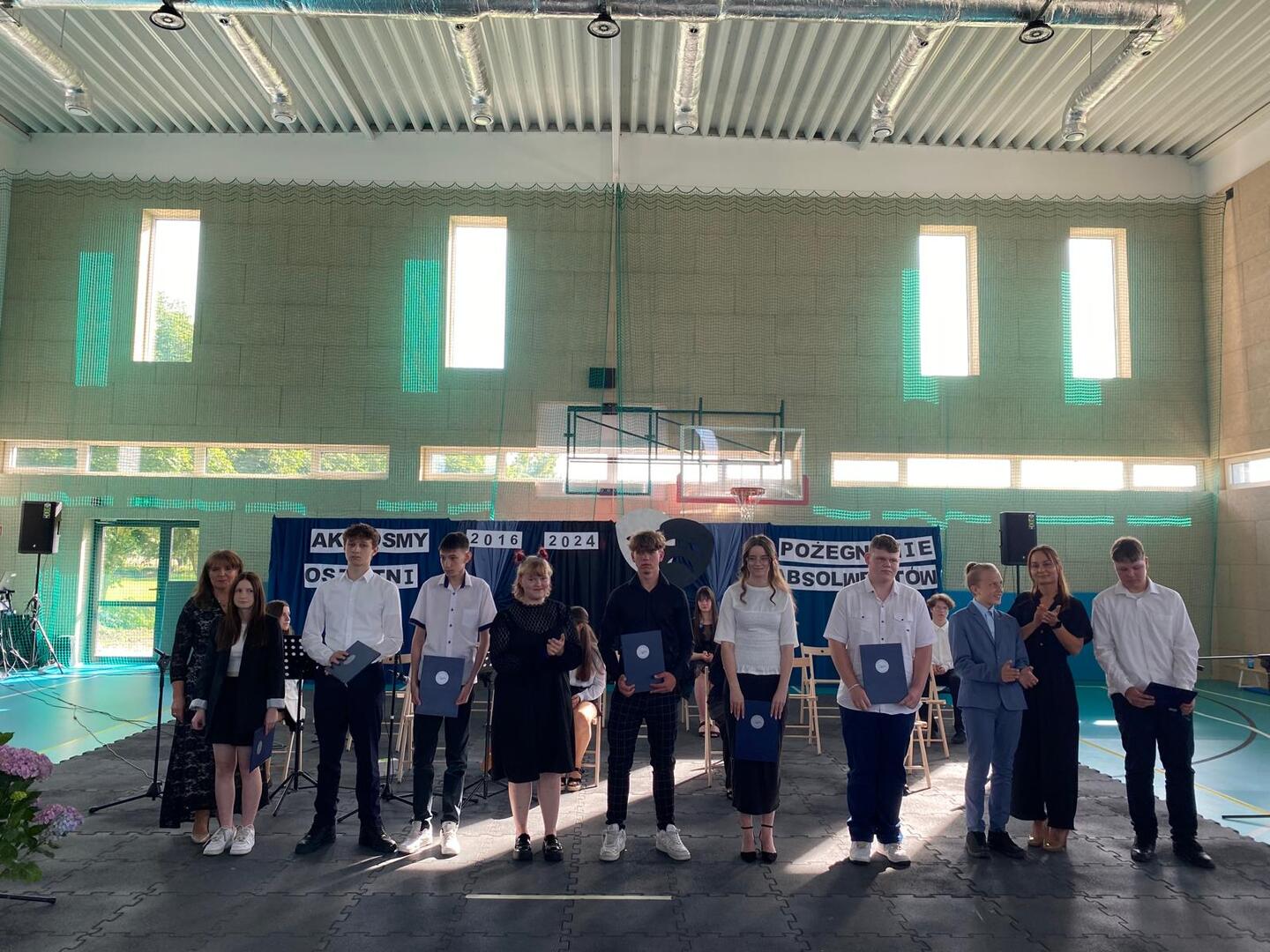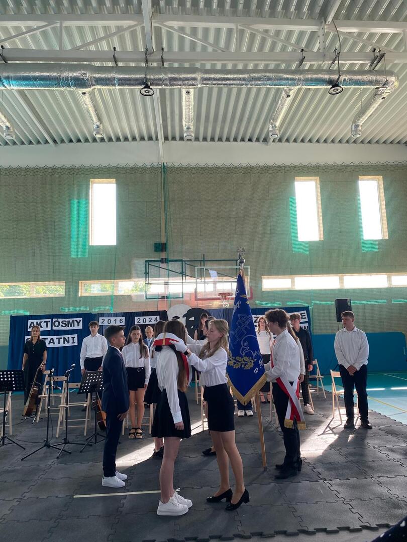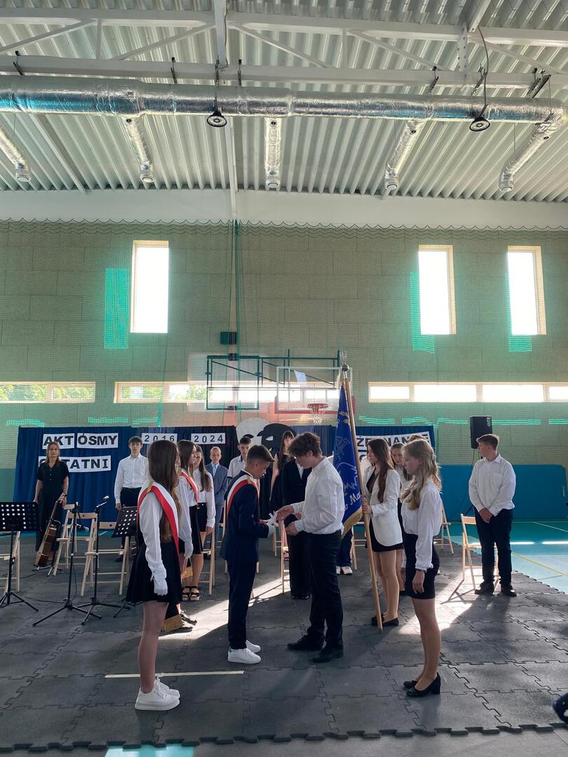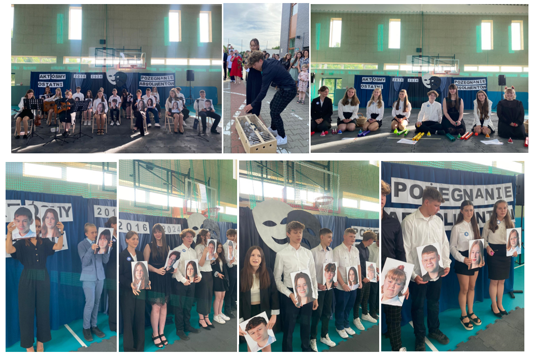 Zakończenie szkoły to zawsze emocjonujący moment, pełen refleksji, radości i wyzwań. Dla tych uczniów to czas pożegnania się z kolegami i nauczycielami. W tym dniu Pani Dyrektor ciepło powitała licznie zgromadzonych rodziców, zaproszonych gości, nauczycieli oraz wszystkich pracowników no i oczywiście uczniów, szkoły. Podziękowała wszystkim za wszystkie lata pracę. Najważniejszym punktem uroczystości było wręczenie nagród i wyróżnień oraz świadectwa ukończenia szkoły podstawowej. Nasi absolwenci złożyli uroczyste ślubowanie, a następnie wystąpili w krótkiej, pożegnalnej części artystycznej, w której po raz ostatni w tej szkole pokazali swoje najwspanialsze talenty, a było ich wiele.