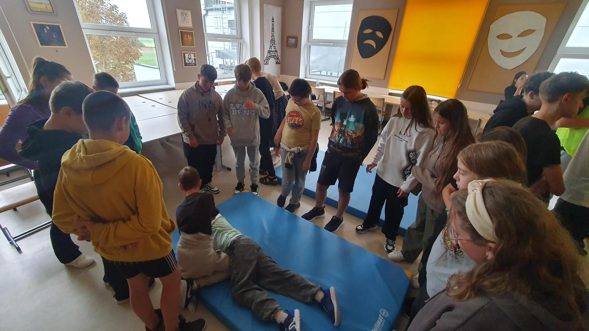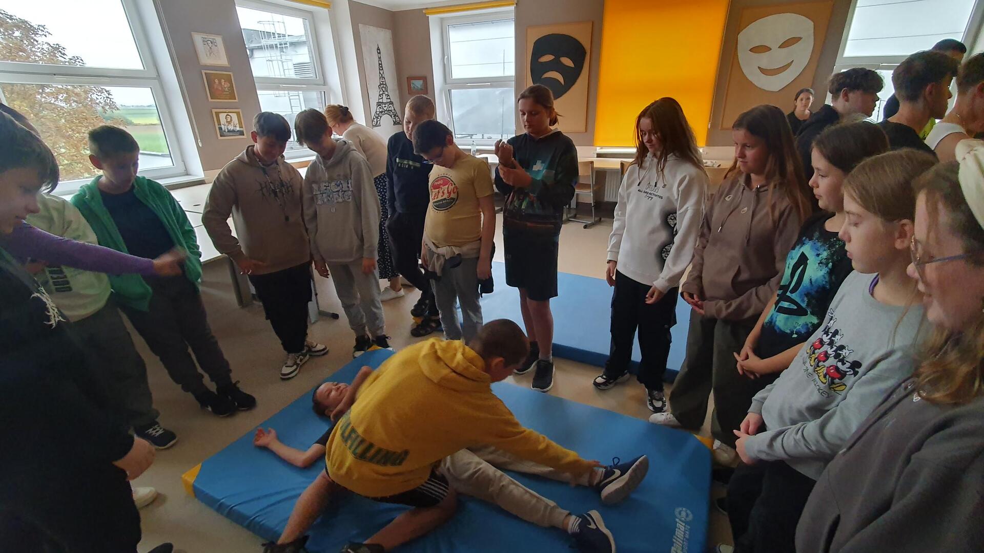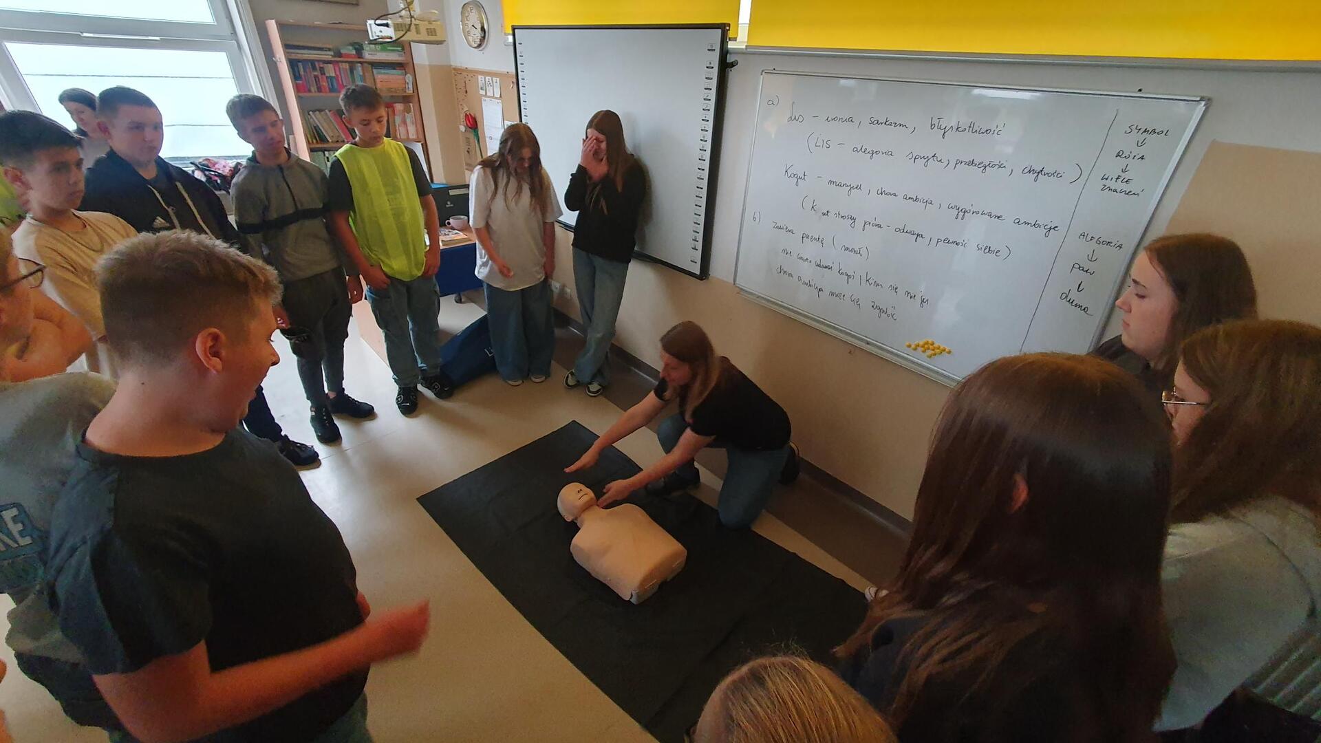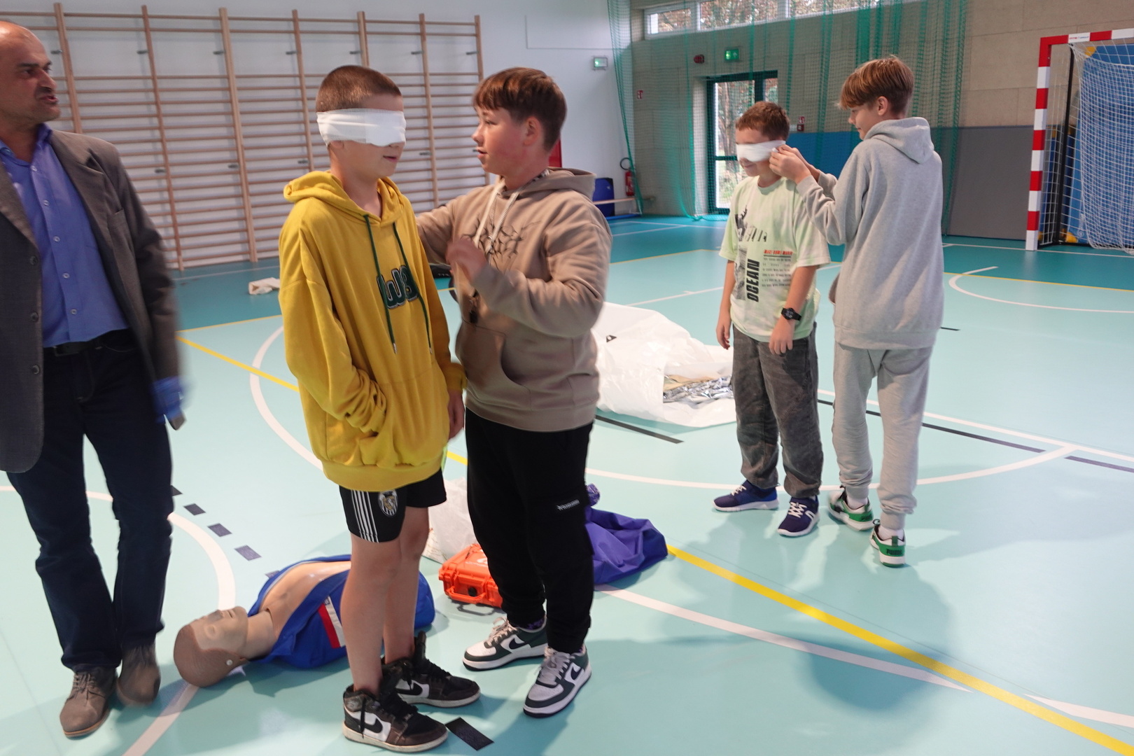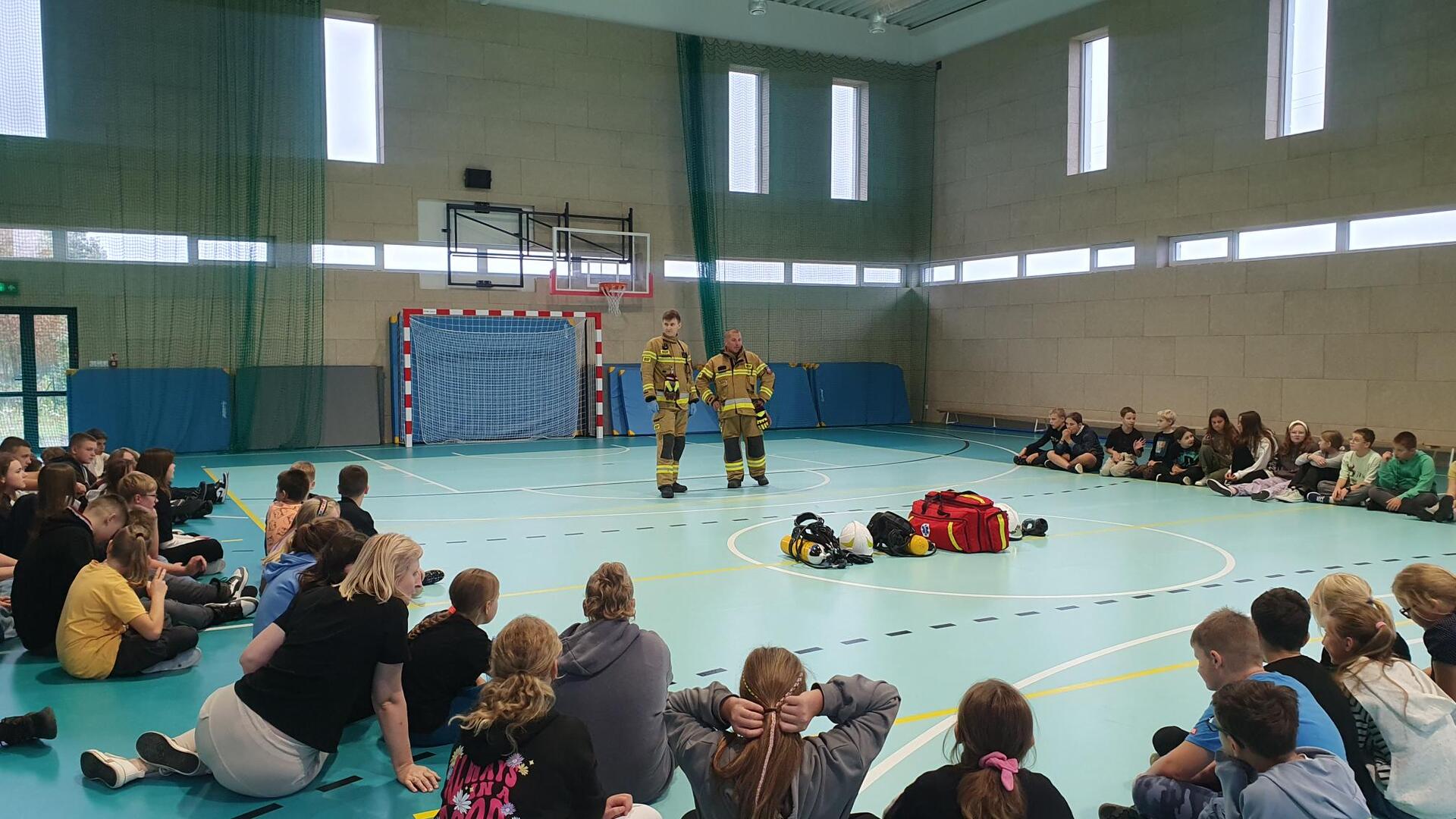 Zamiast brać udział w tradycyjnych lekcjach, pracowaliśmy metodą projektu. Wzięliśmy udział w warsztatach z pierwszej pomocy prowadzonych przez panią Martę Grządzielewską i panią Patrycję Schneider. Razem z panią Anną Górowską powtarzaliśmy zasady ruchu drogowego. Po alarmie próbnym uczestniczyliśmy w pokazie sprzętu strażackiego oraz prezentacji dotyczącej zasad bezpieczeństwa.