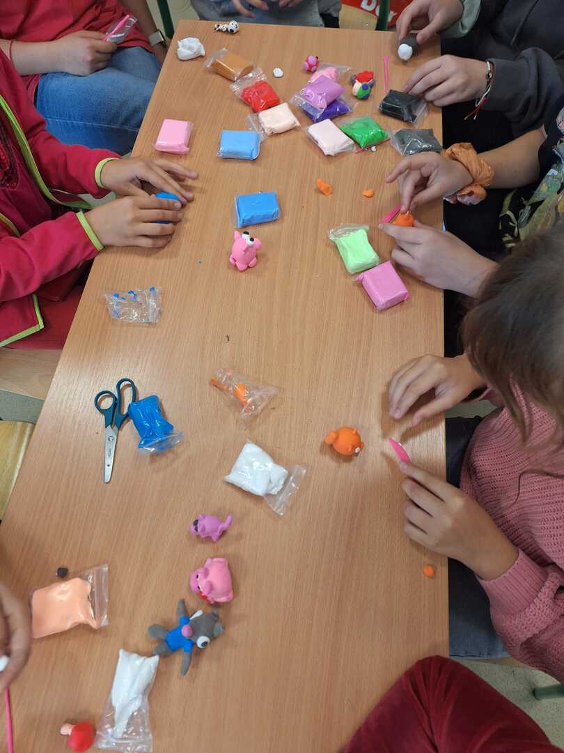 Na świetlicy zainaugurowano projekt Akademia Kreatywności Hey Clay. Uczniowie formowali z masy plastycznej rozmaite stworki.